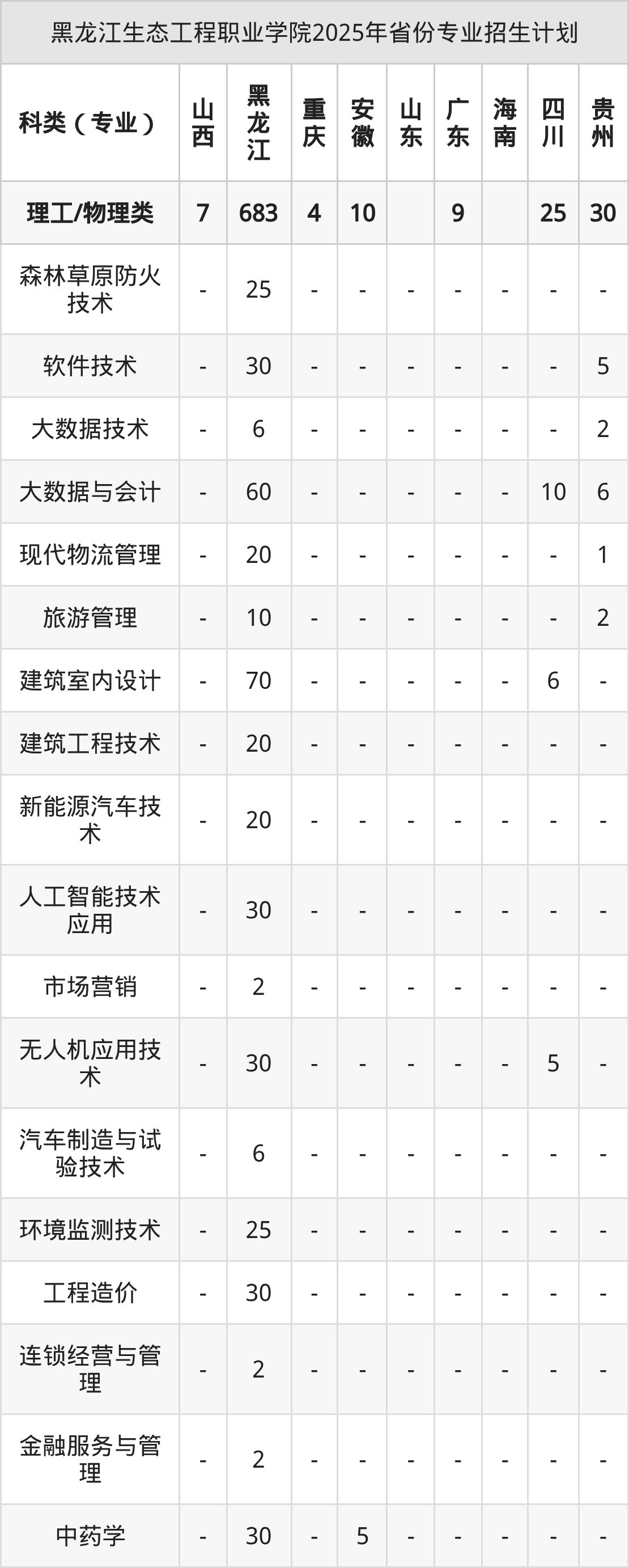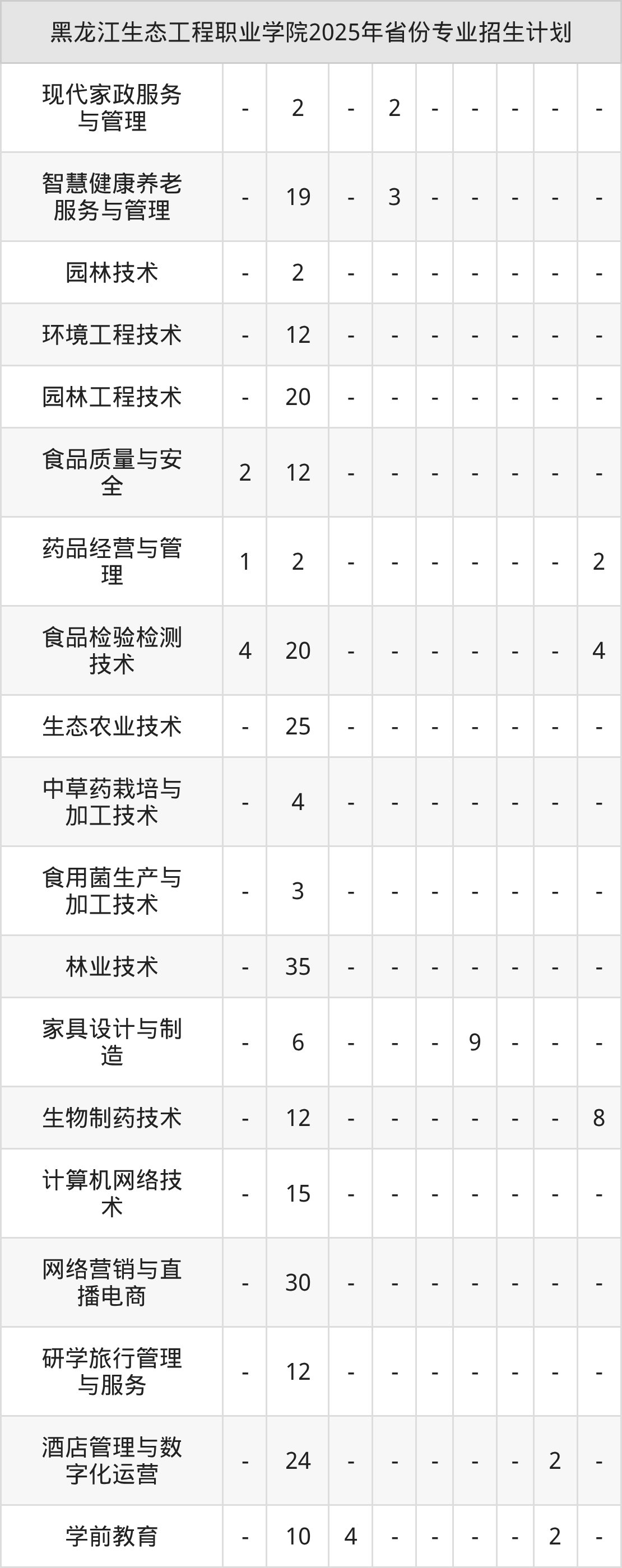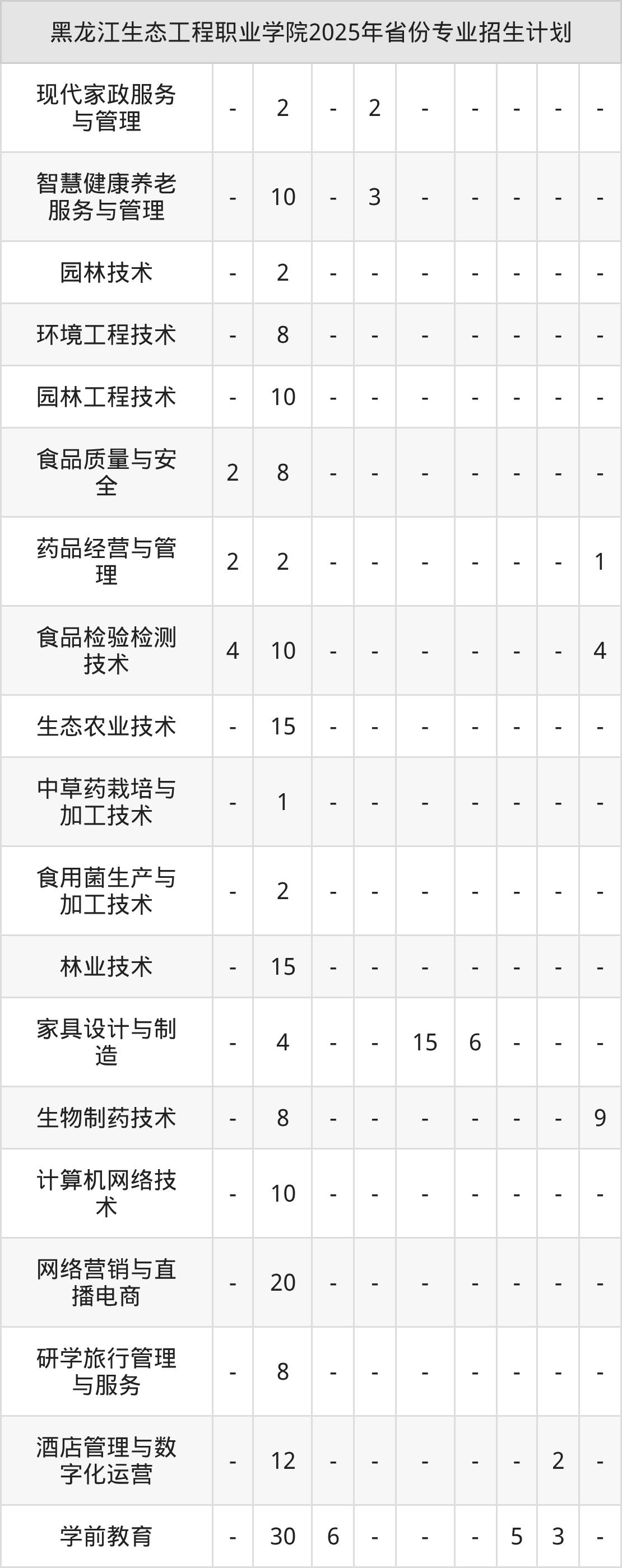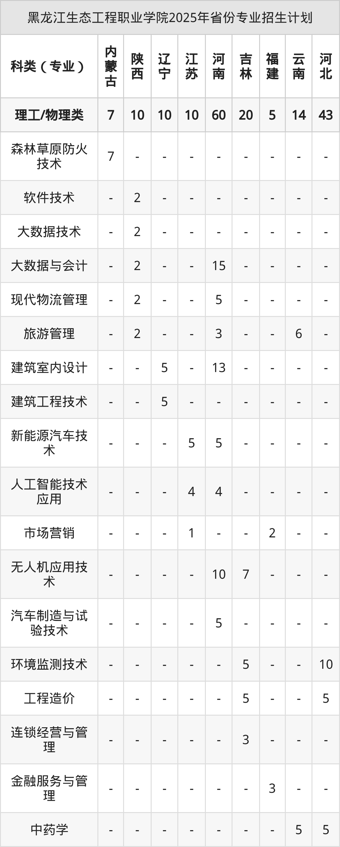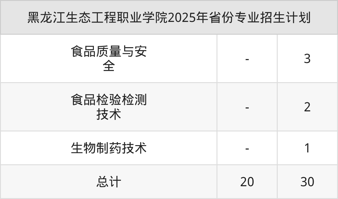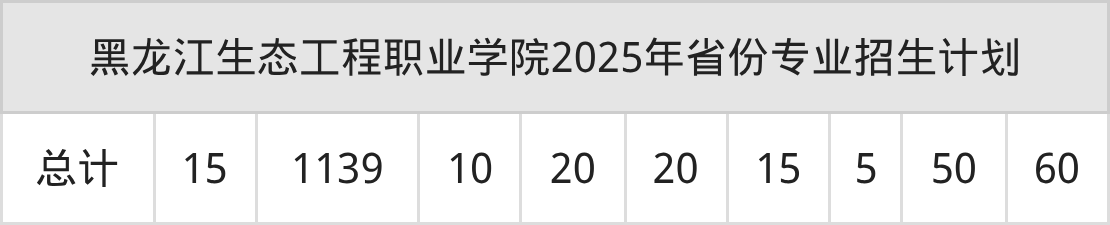 2026年黑龙江生态工程职业学院专科招生计划待公布,下面附上2025年数据,暂供参考: