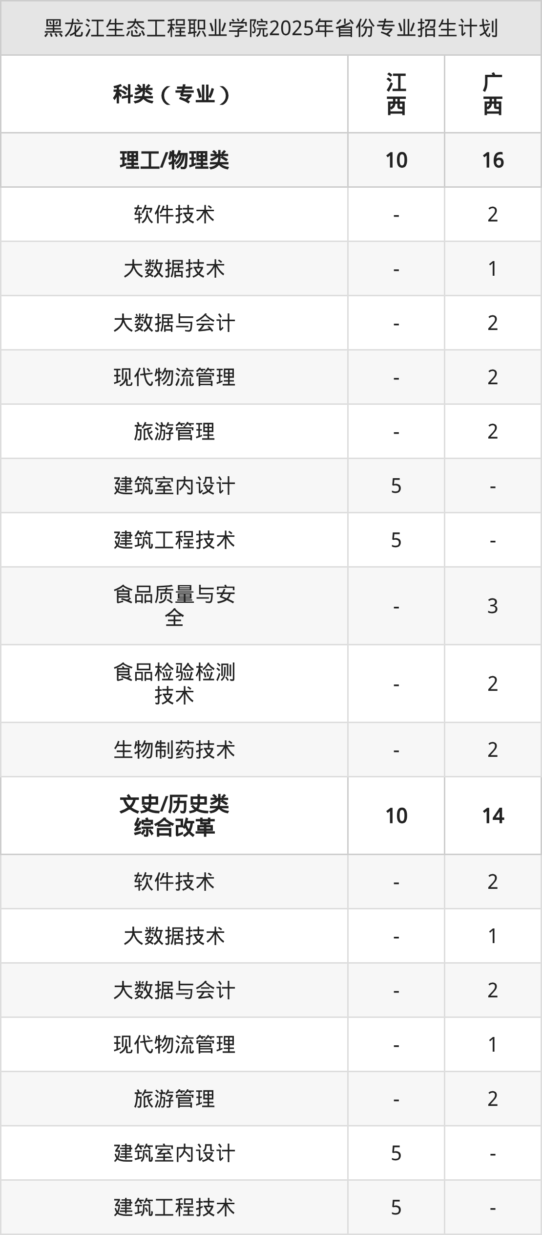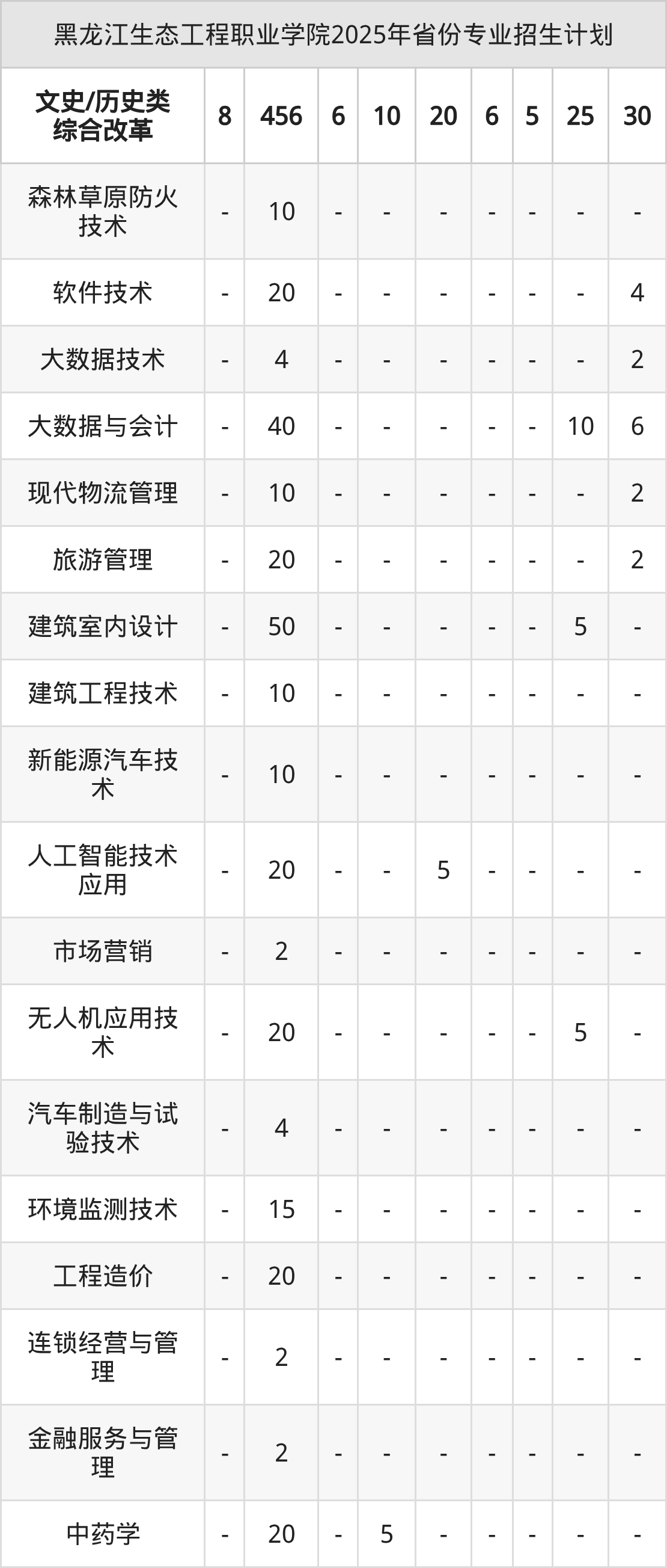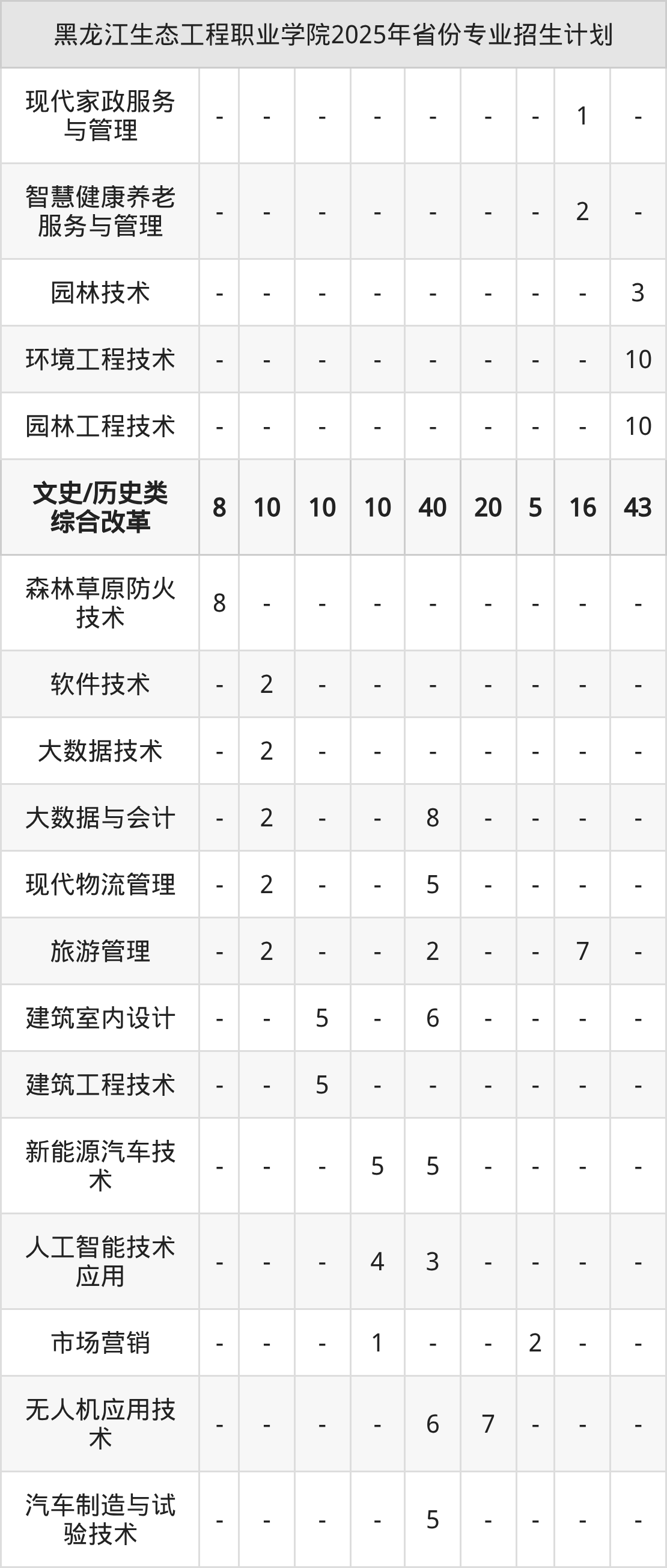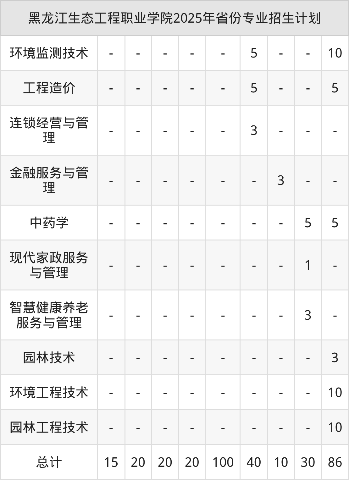 2026年黑龙江生态工程职业学院专科招生计划待公布,下面附上2025年数据,暂供参考: