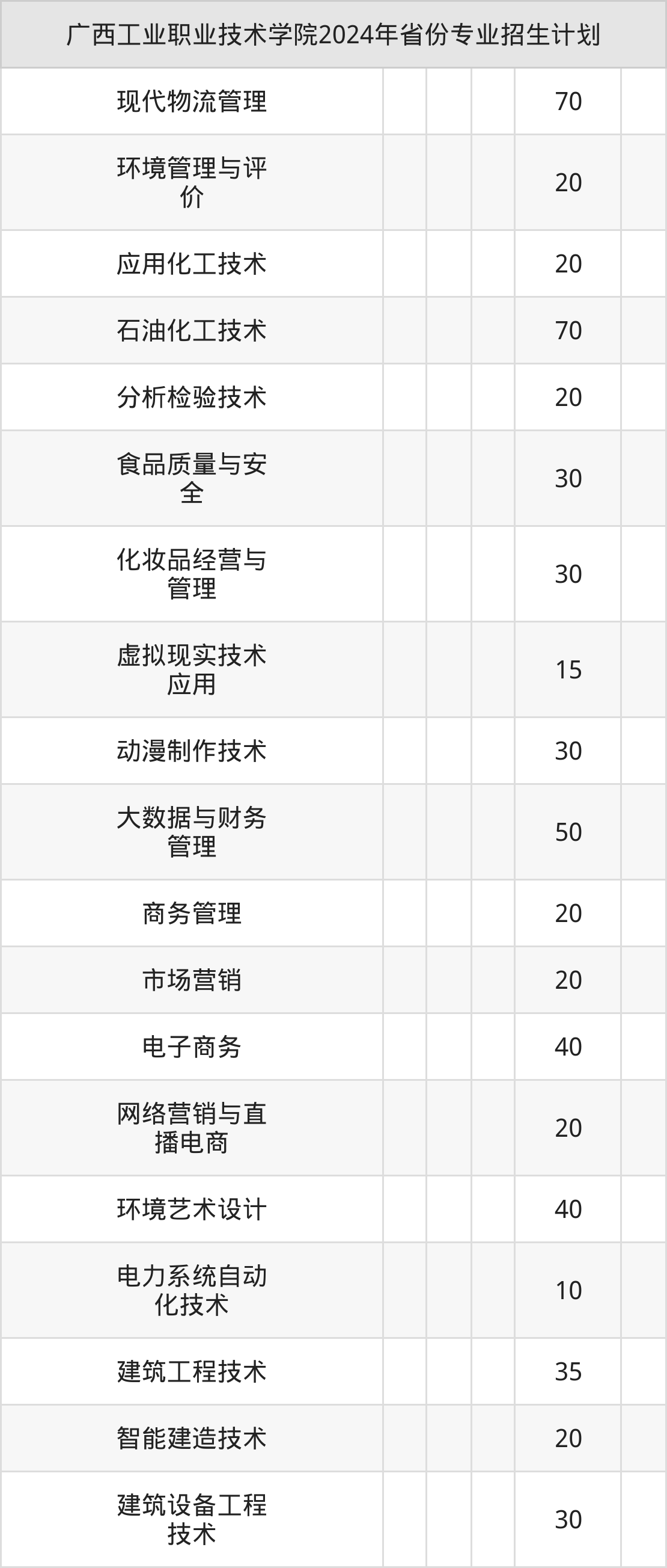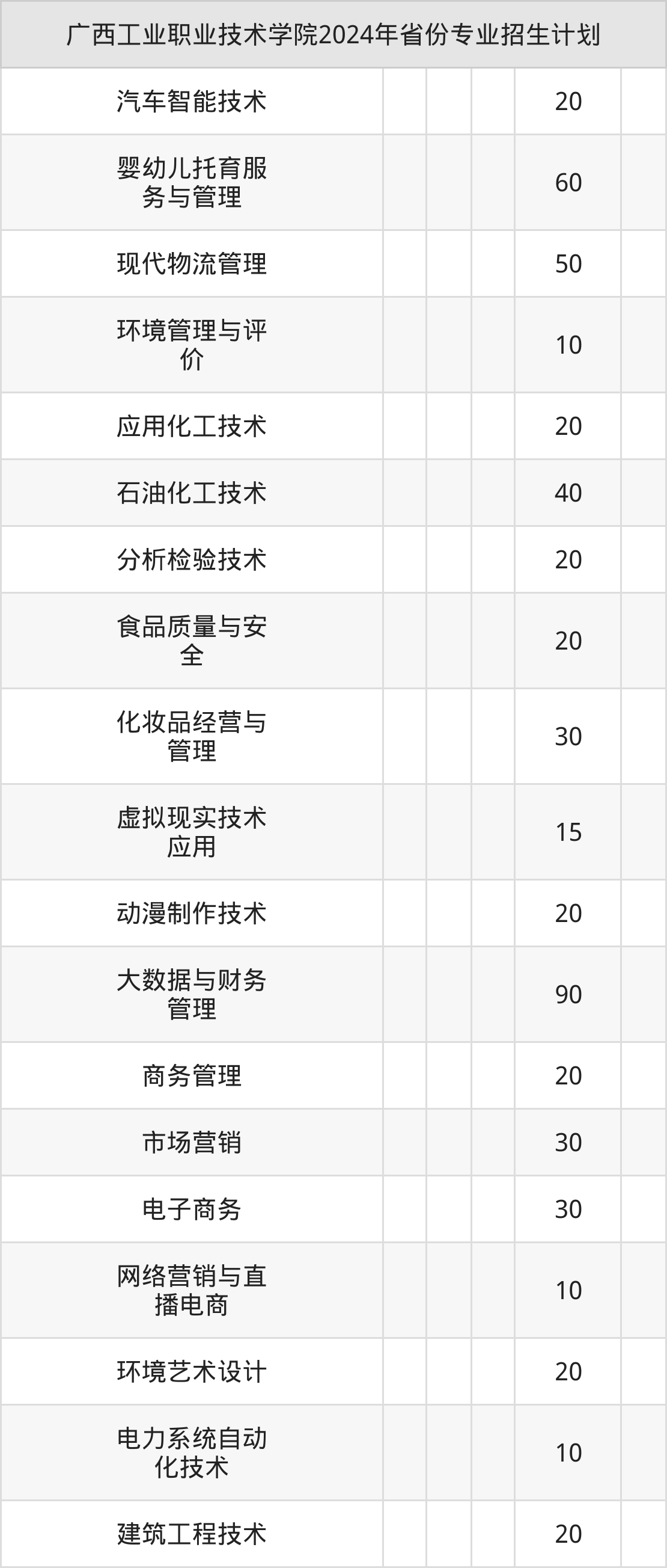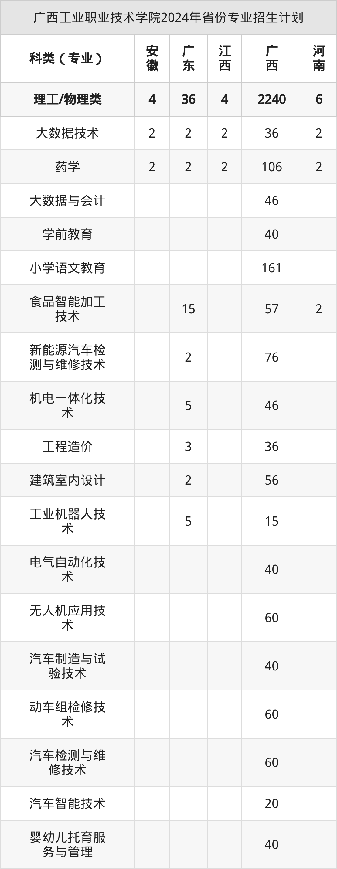 2025年广西工业职业技术学院专科招生计划待公布,下面附上2024年数据,暂供参考:
