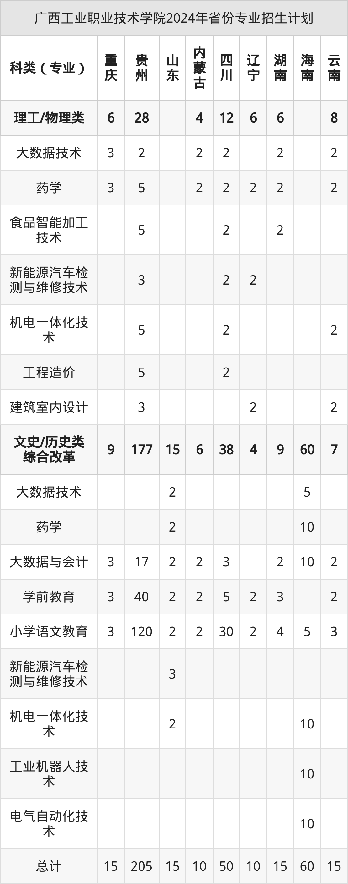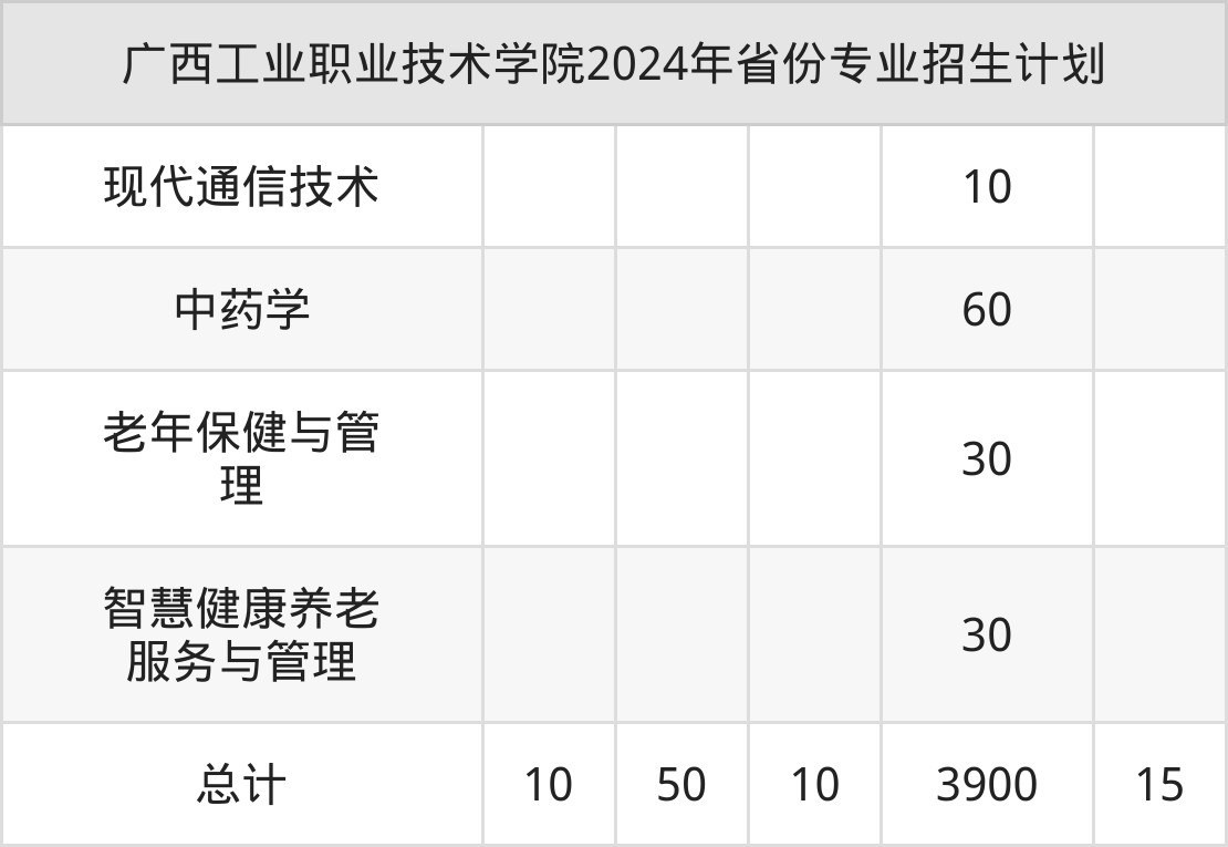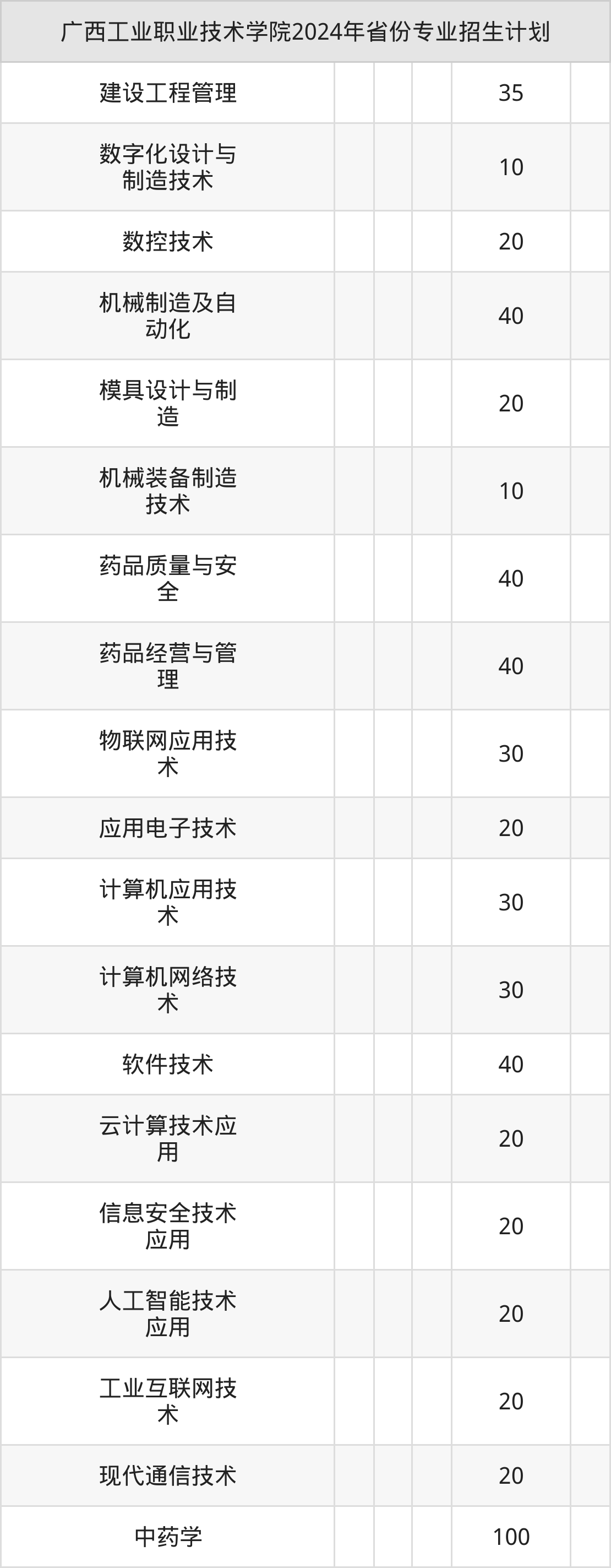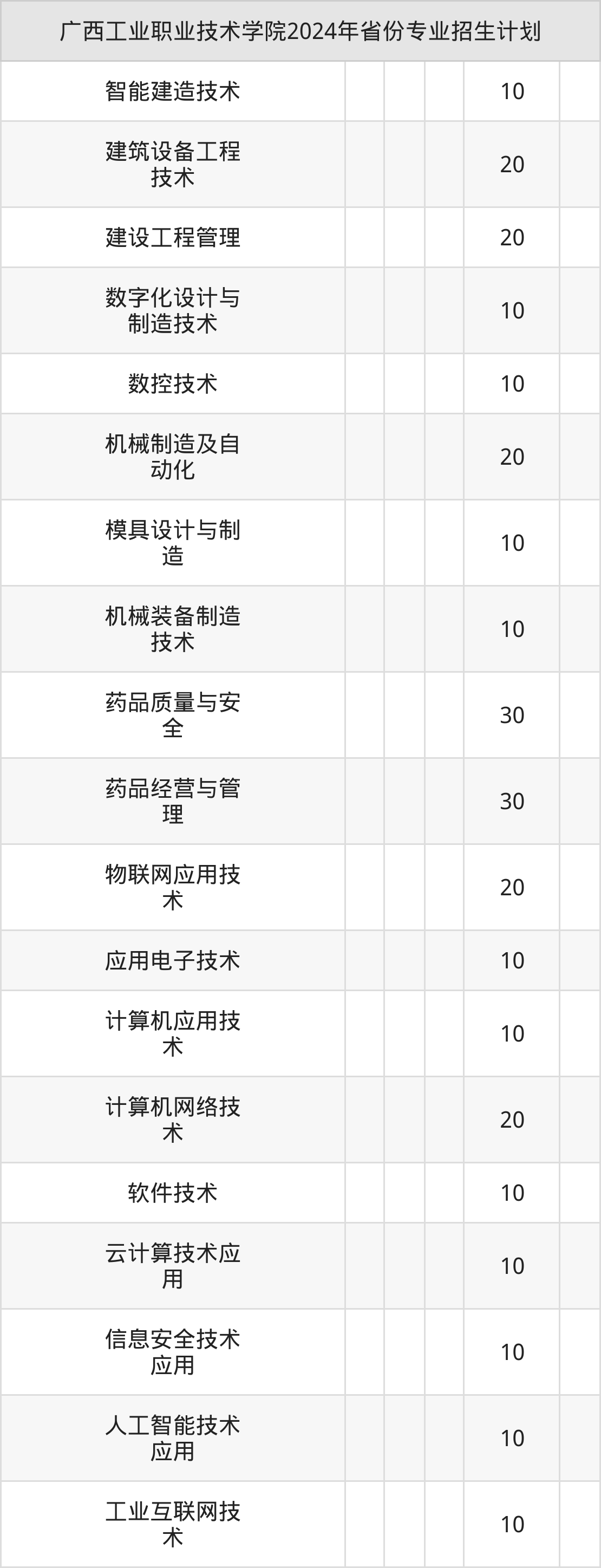 2025年广西工业职业技术学院专科招生计划待公布,下面附上2024年数据,暂供参考: