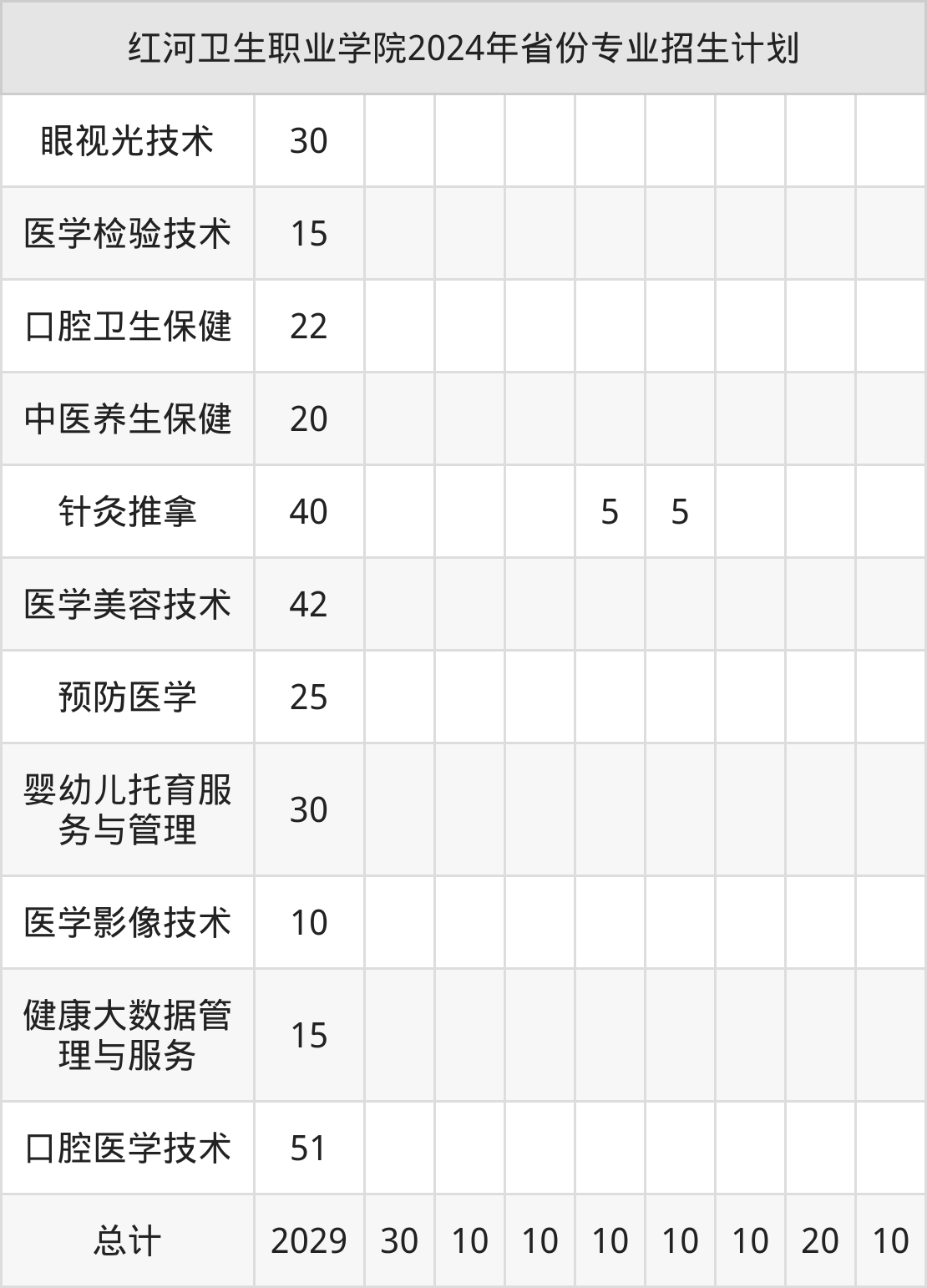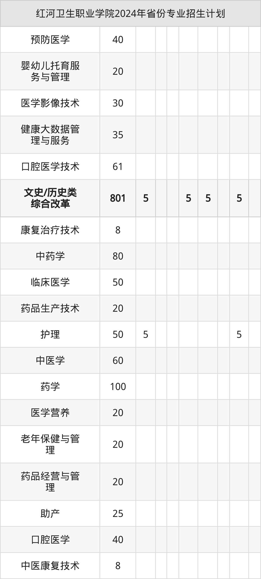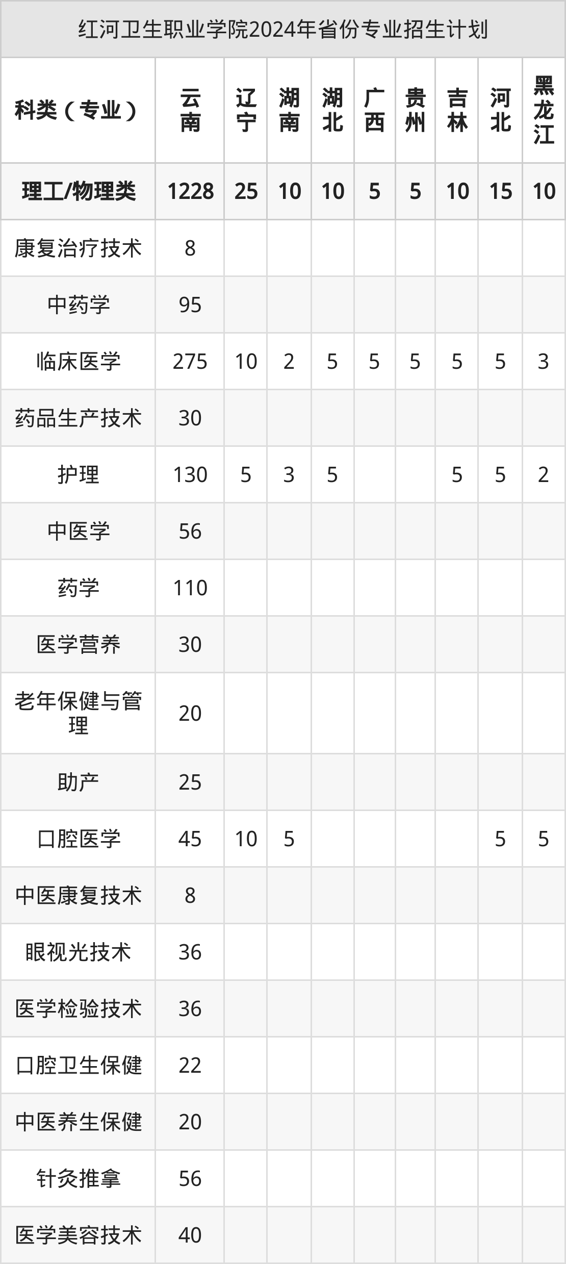 2025年红河卫生职业学院专科招生计划待公布,下面附上2024年数据,暂供参考: