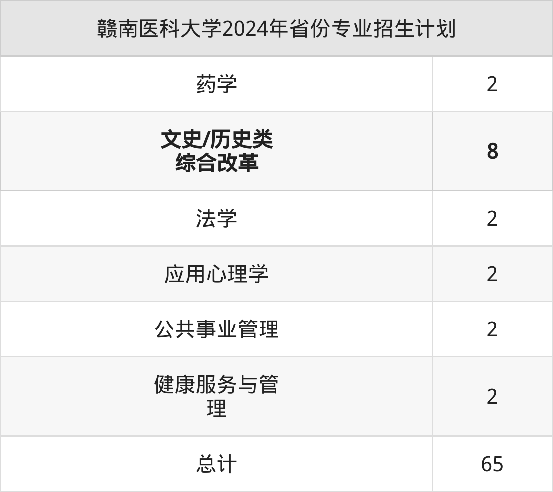 2025年赣南医科大学本科招生计划待公布,下面附上2024年数据,暂供参考: