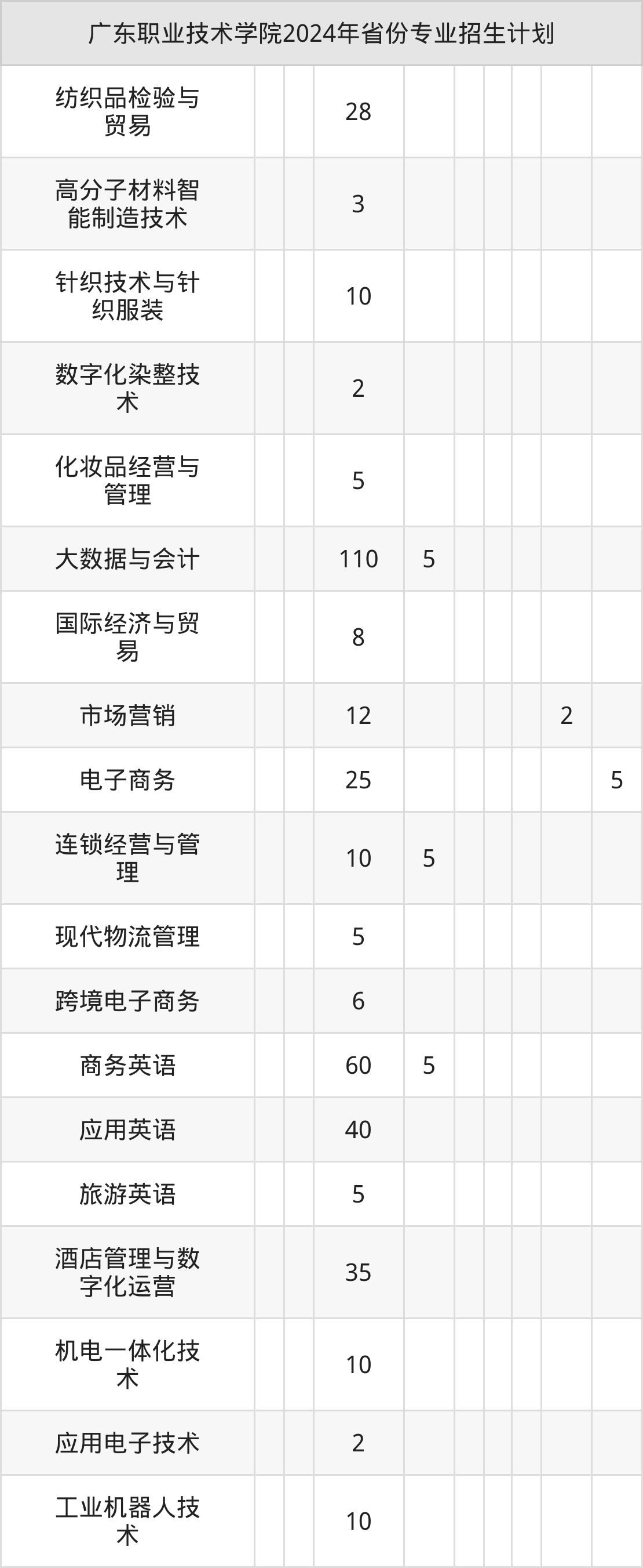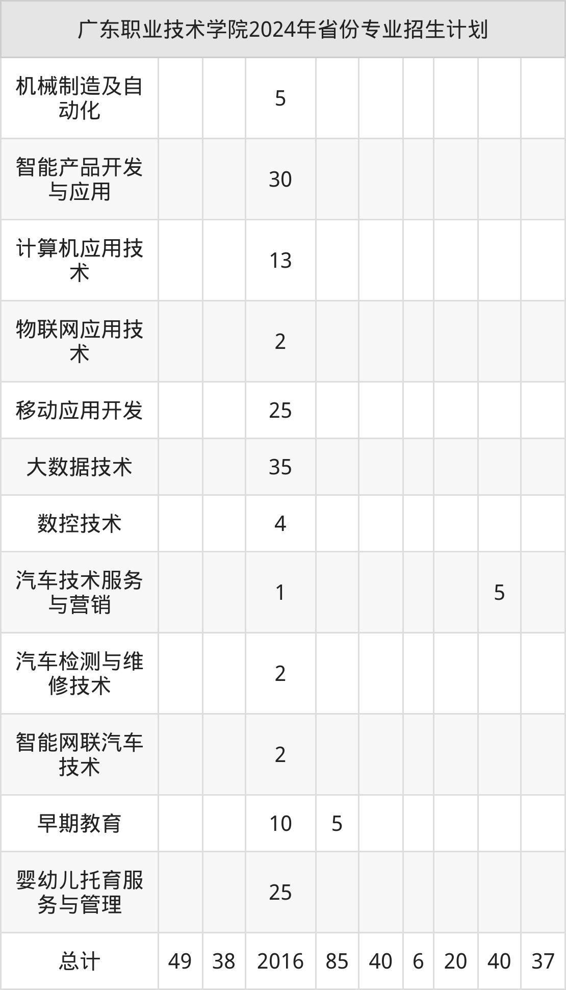 2025年广东职业技术学院专科招生计划待公布,下面附上2024年数据,暂供参考: