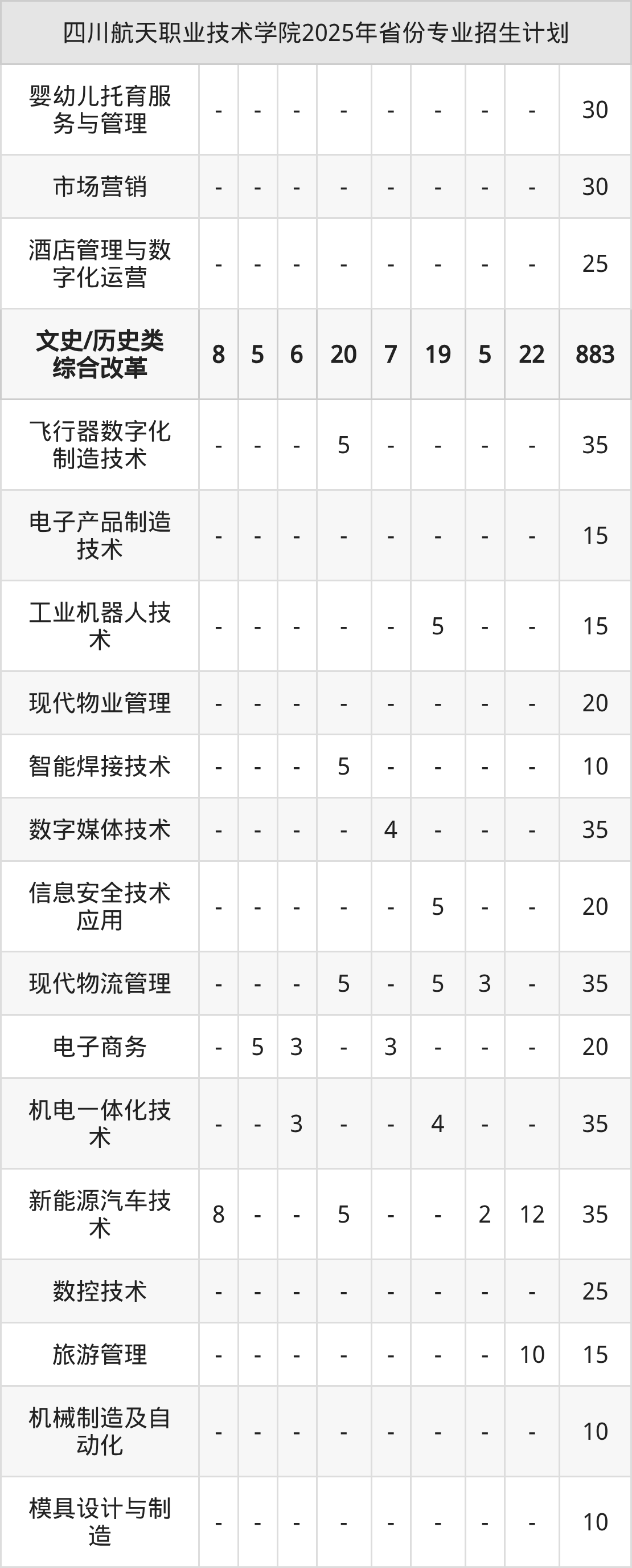 2026年四川航天职业技术学院专科招生计划待公布,下面附上2025年数据,暂供参考: