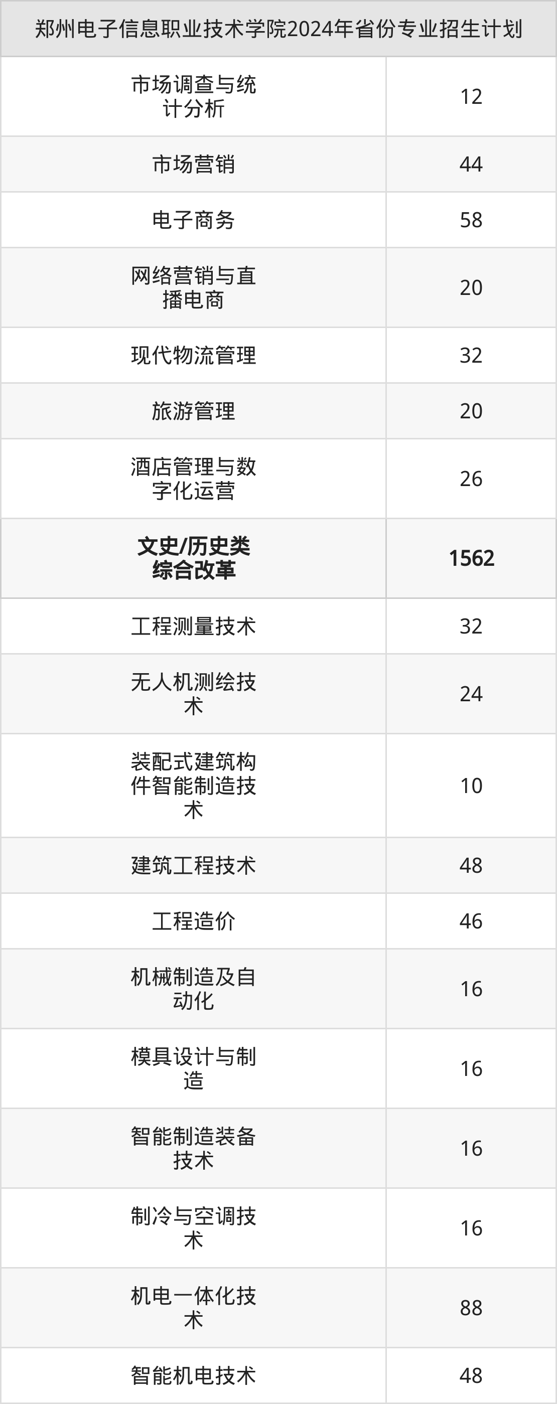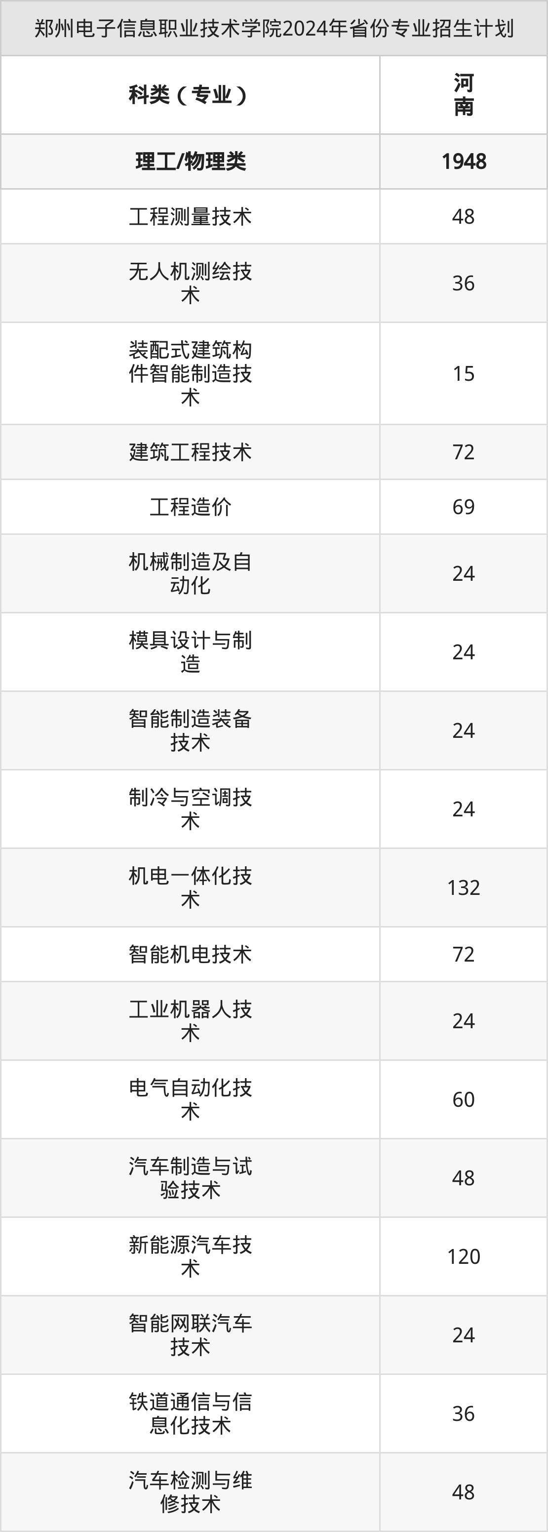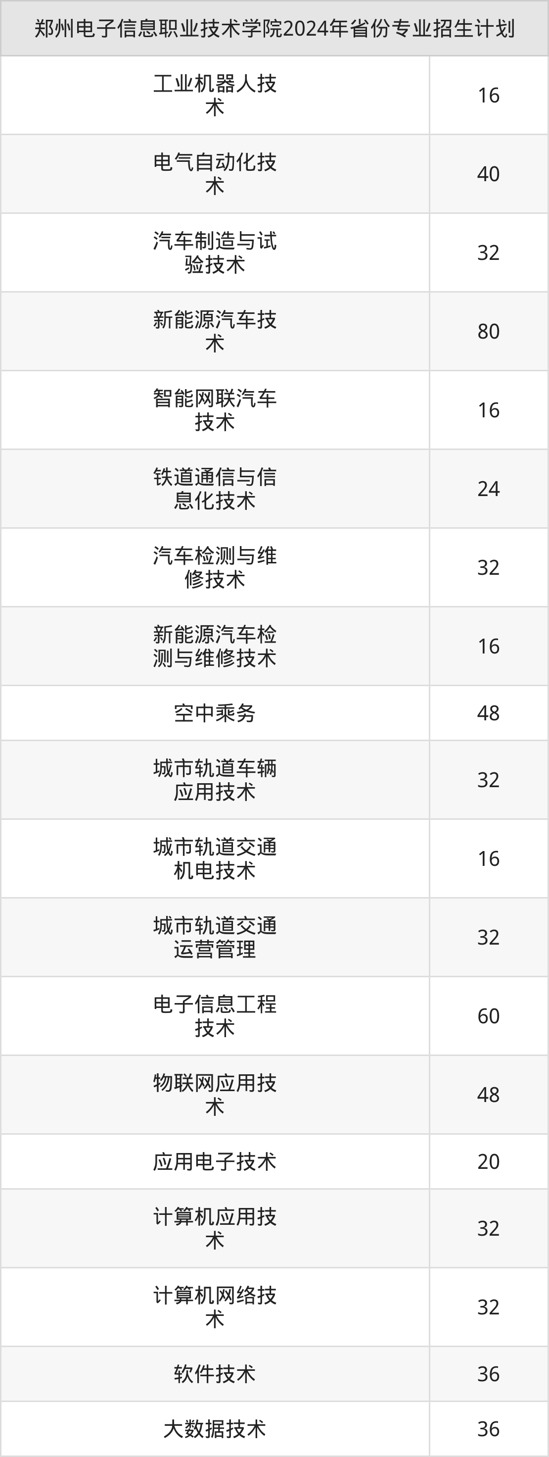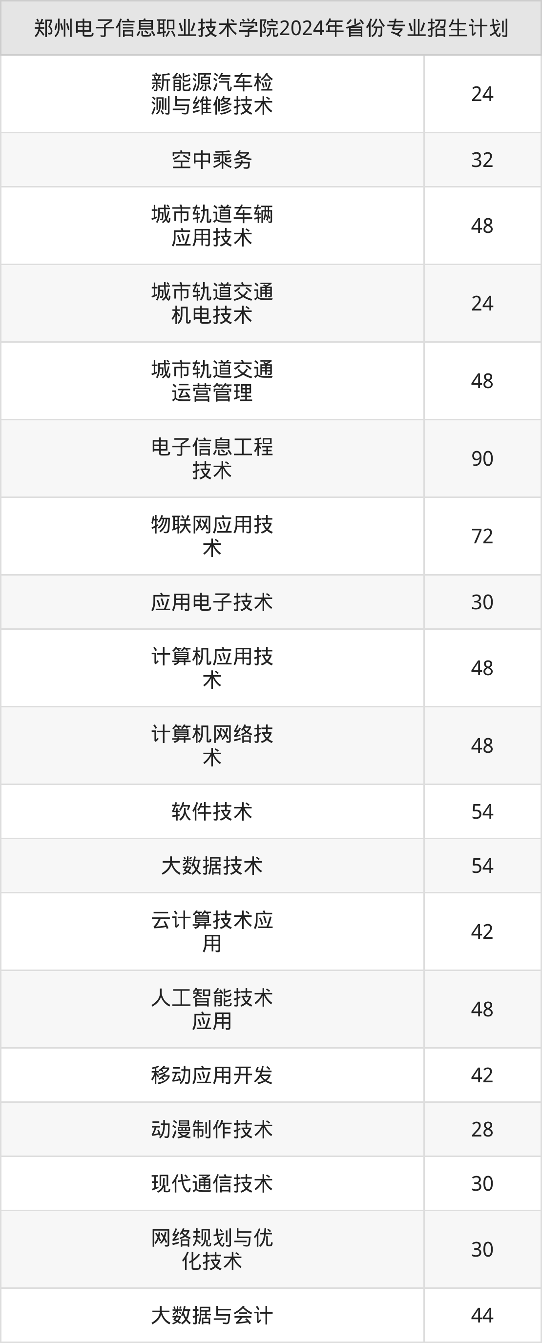 2025年郑州电子信息职业技术学院专科招生计划待公布,下面附上2024年数据,暂供参考: