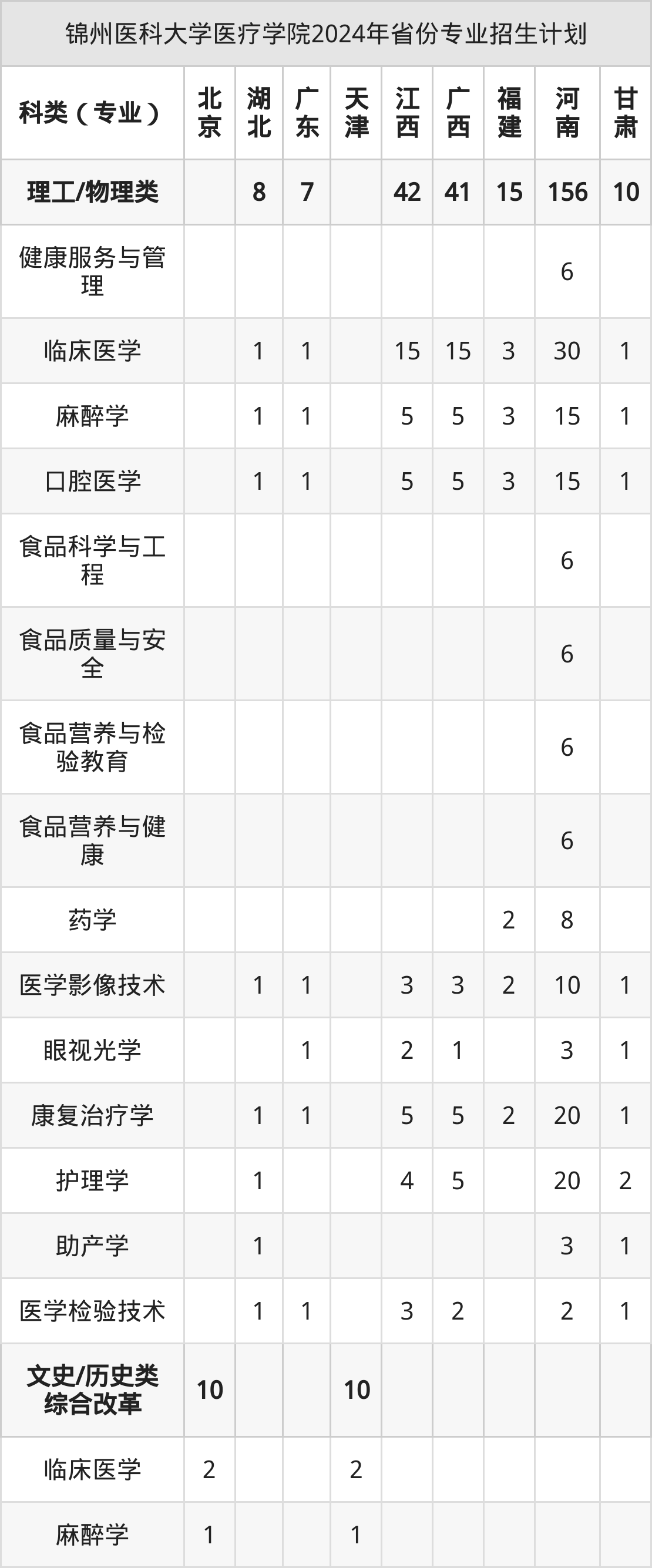 2025年锦州医科大学医疗学院本科招生计划待公布,下面附上2024年数据,暂供参考: