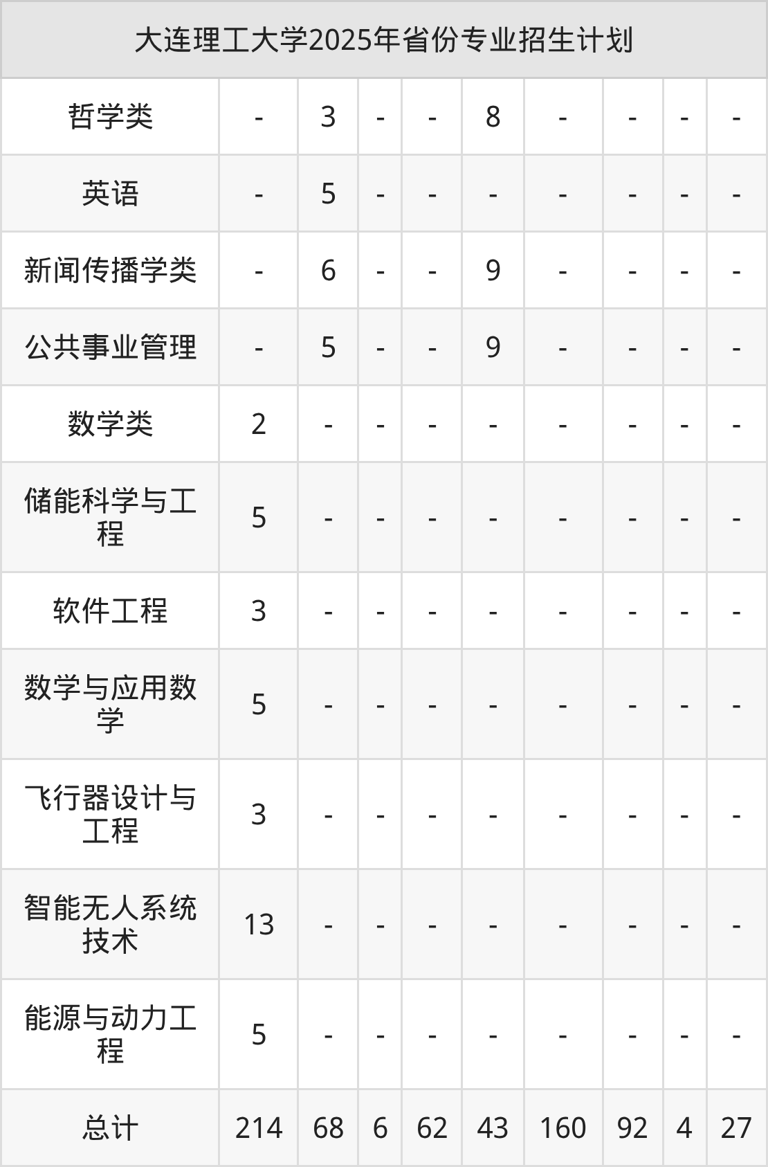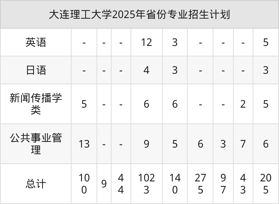 2025年大连理工大学计划招收本科生3966人,其中公共事业管理专业105人,数学类专业130人,智能分子工程专业30人,预科班专业8人,工程力学专业191人等。