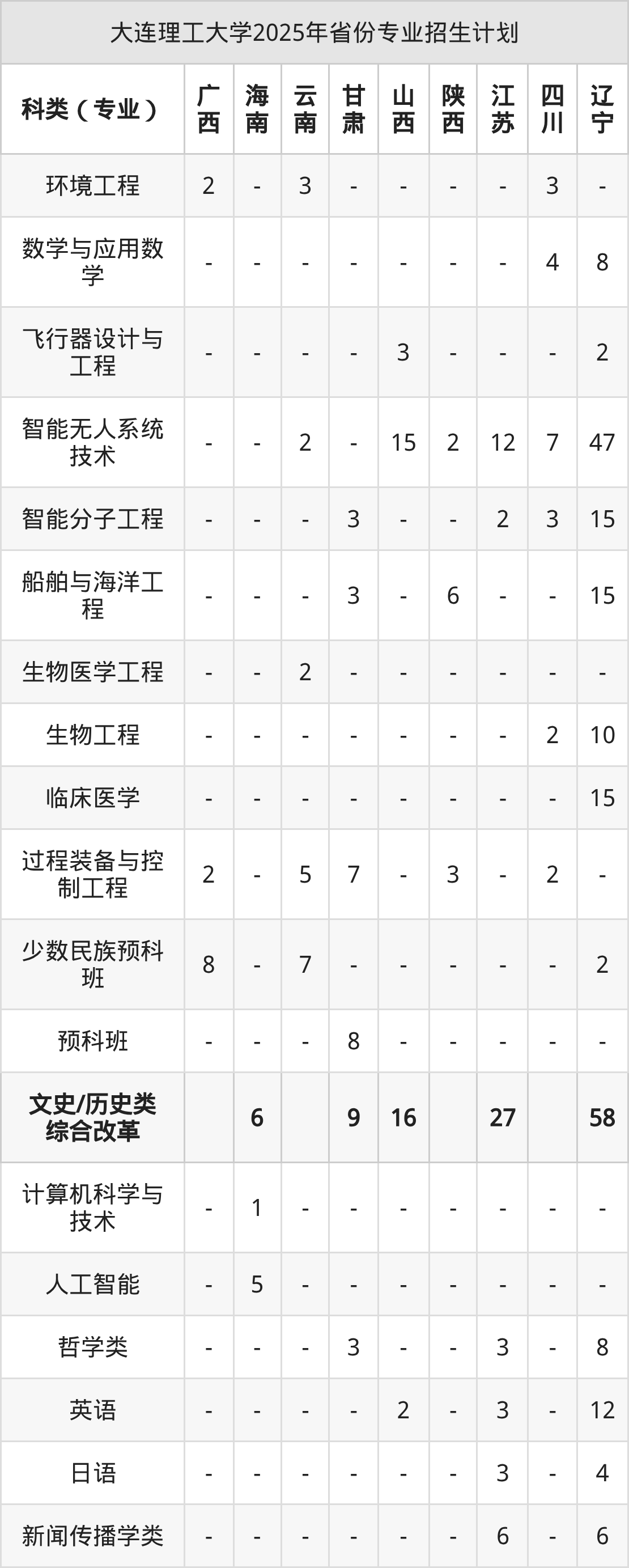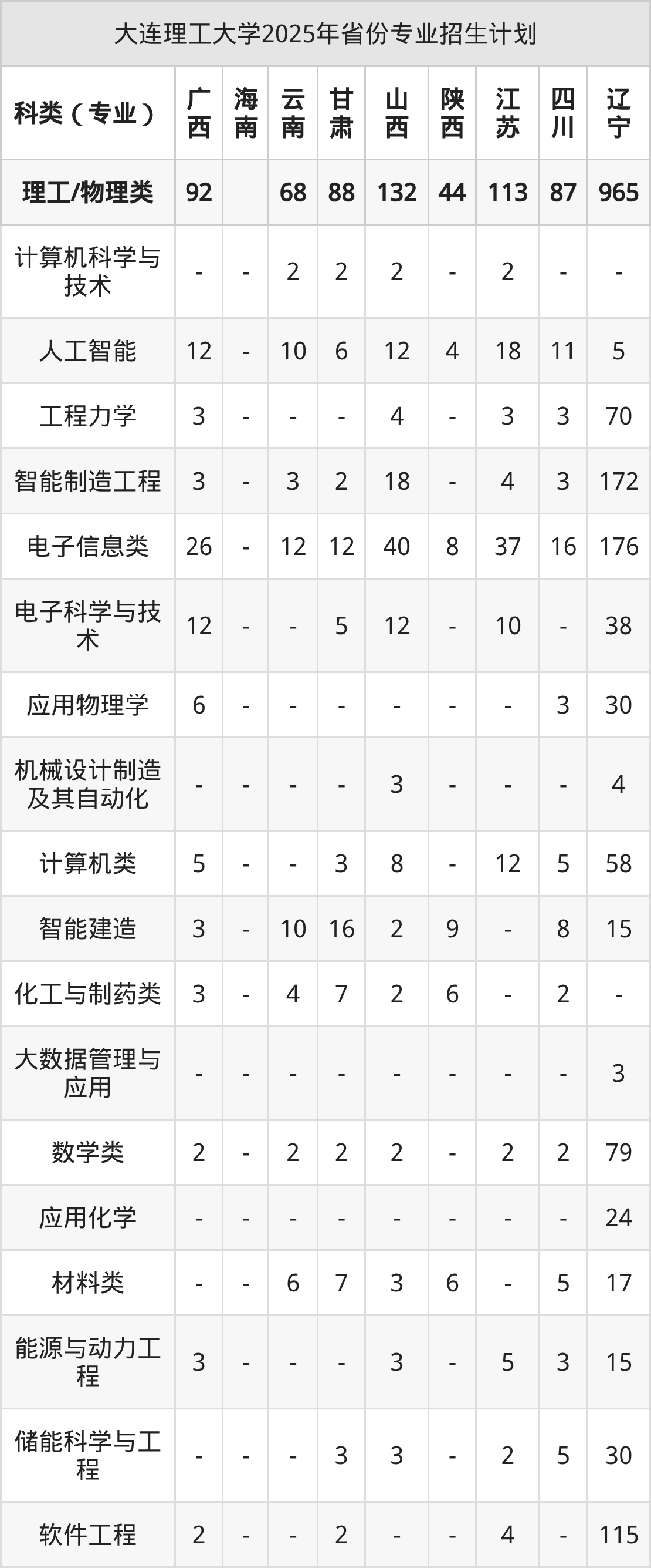 2026年大连理工大学本科招生计划待公布,下面附上2025年数据,暂供参考: