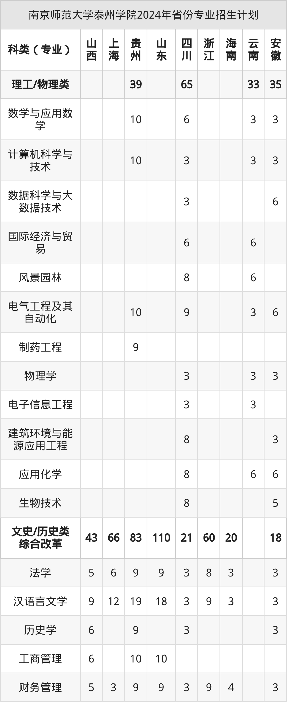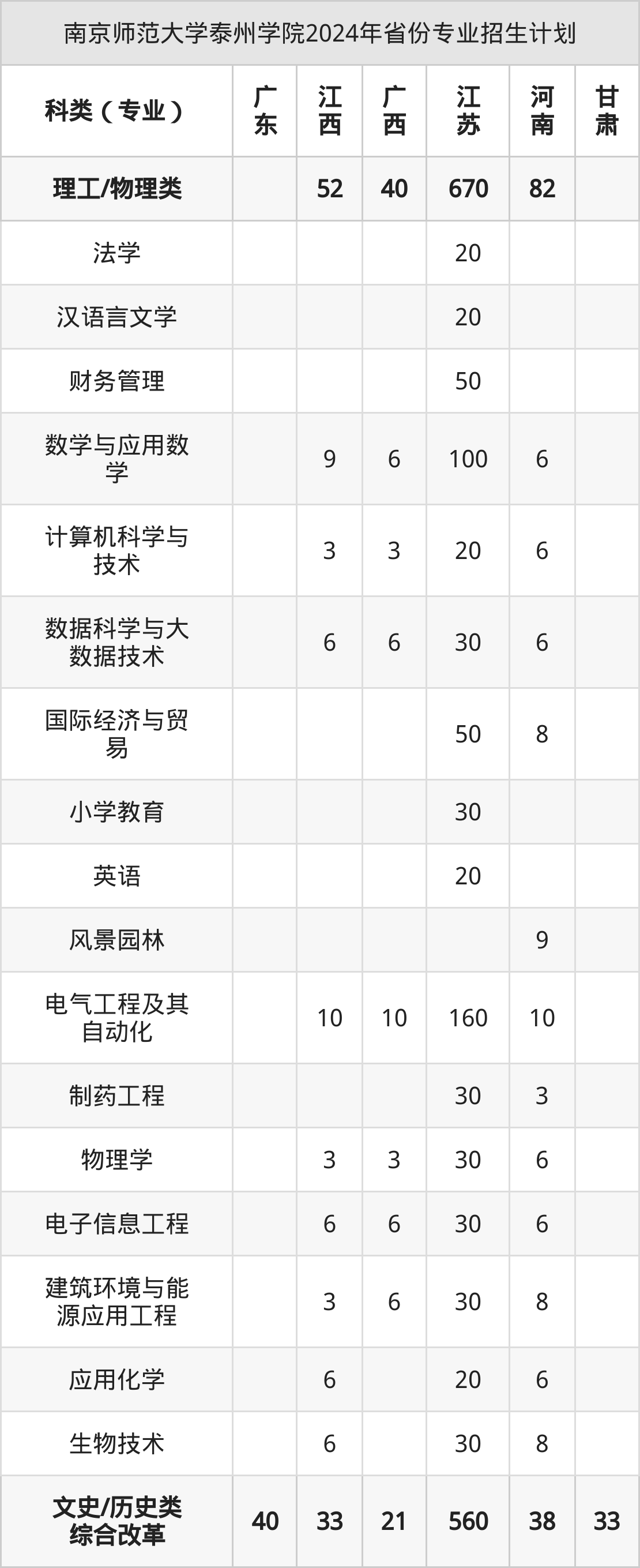 2025年南京师范大学泰州学院本科招生计划待公布,下面附上2024年数据,暂供参考:
