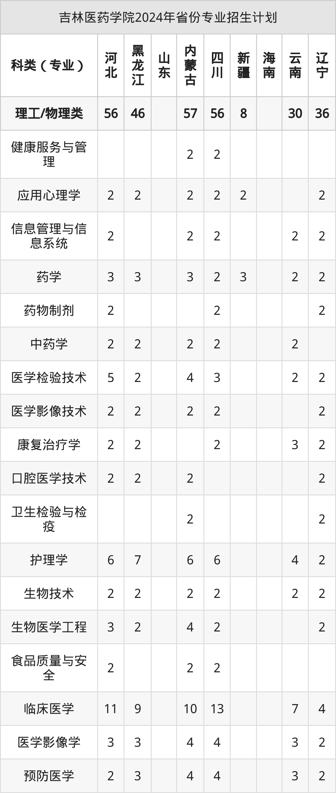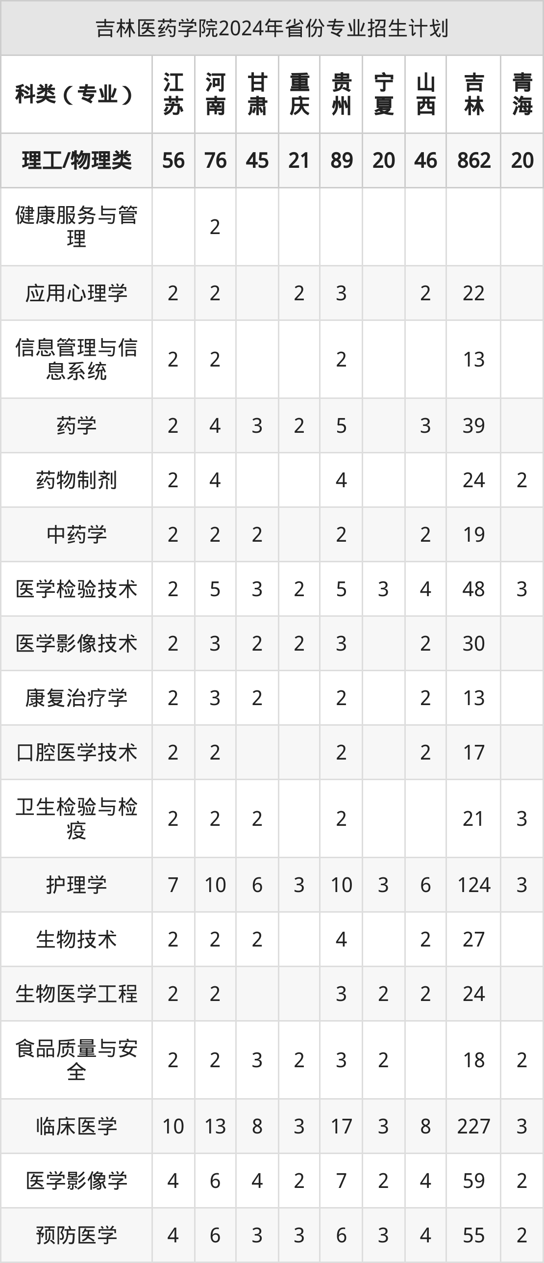 2025年吉林医药学院本科招生计划待公布,下面附上2024年数据,暂供参考: