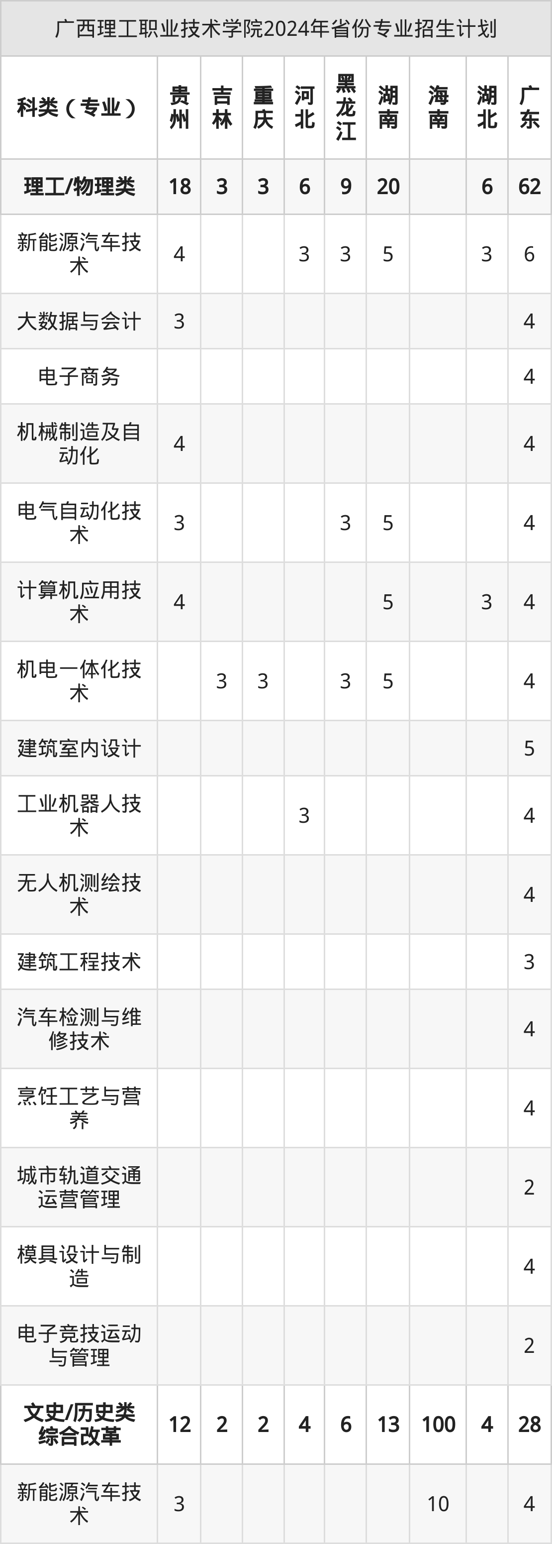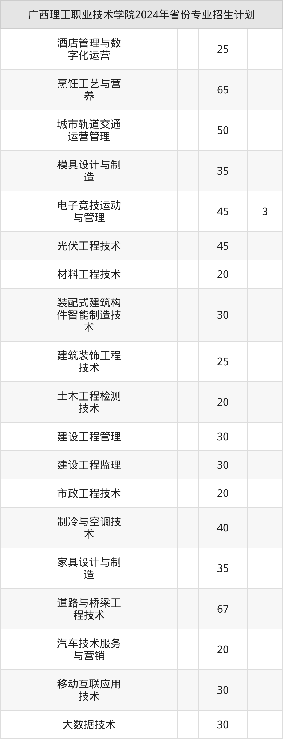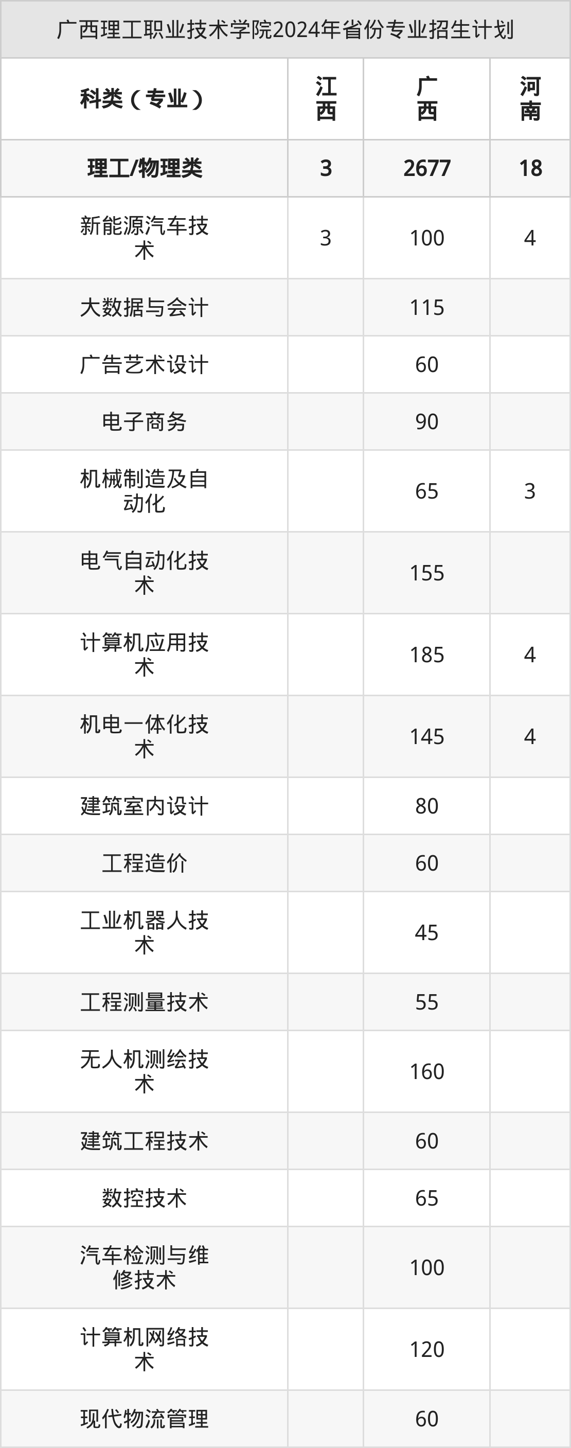 2025年广西理工职业技术学院专科招生计划待公布,下面附上2024年数据,暂供参考:
