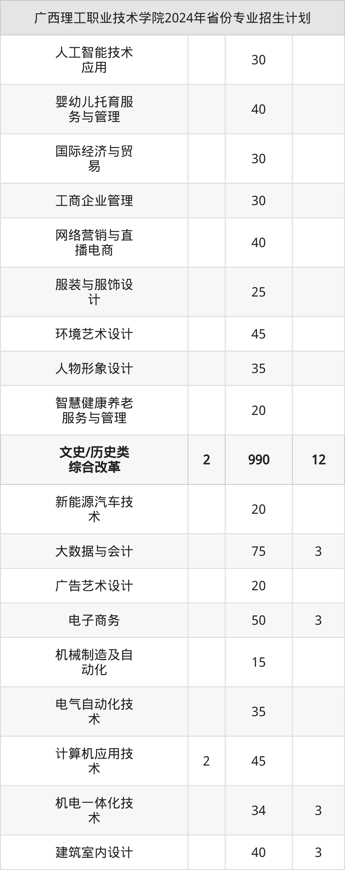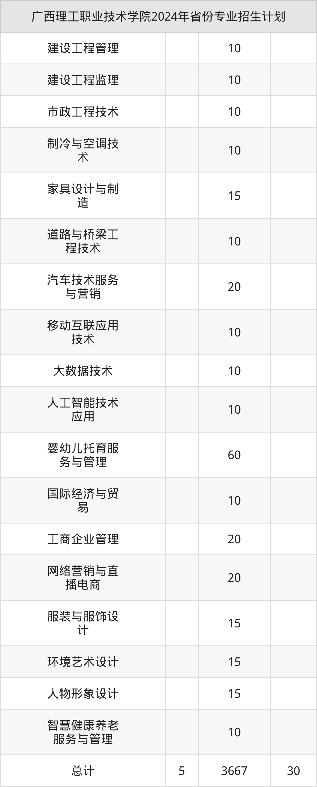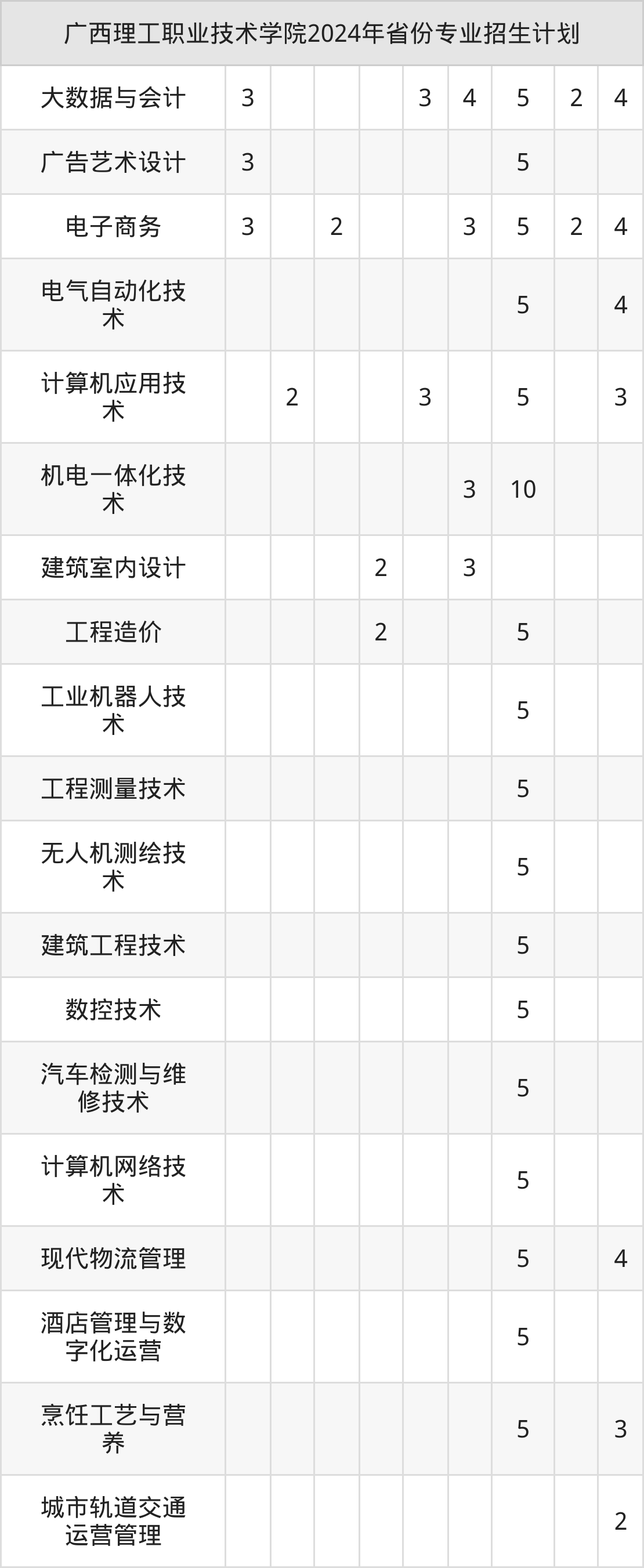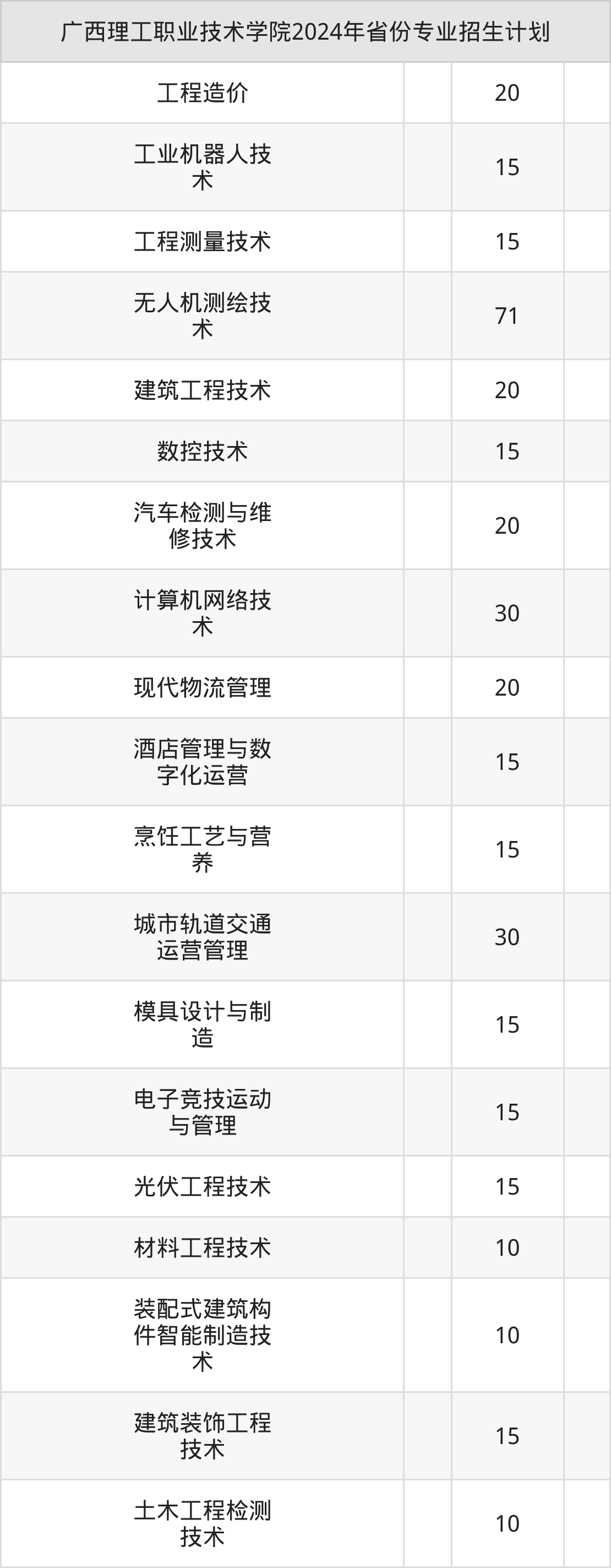 2025年广西理工职业技术学院专科招生计划待公布,下面附上2024年数据,暂供参考: