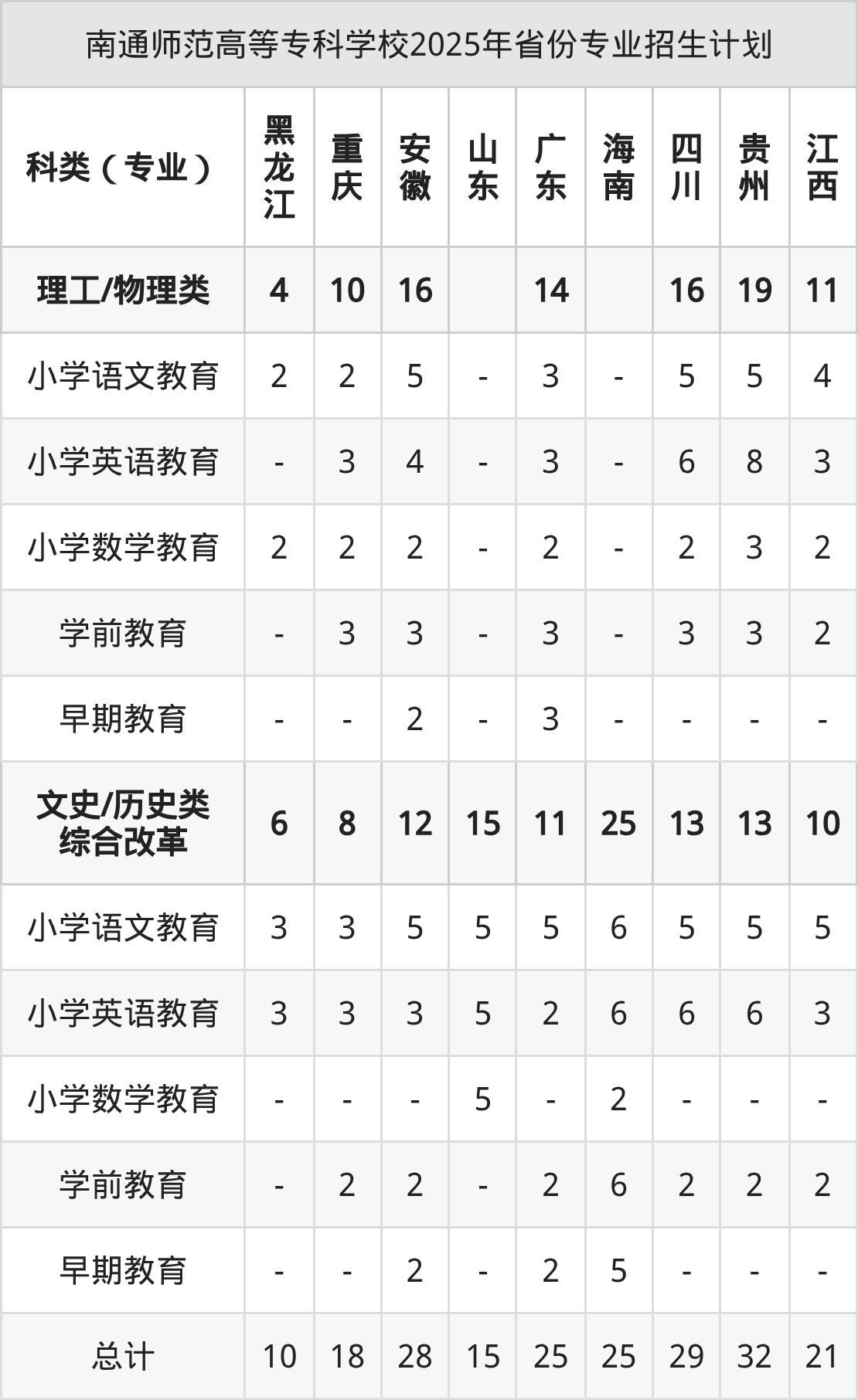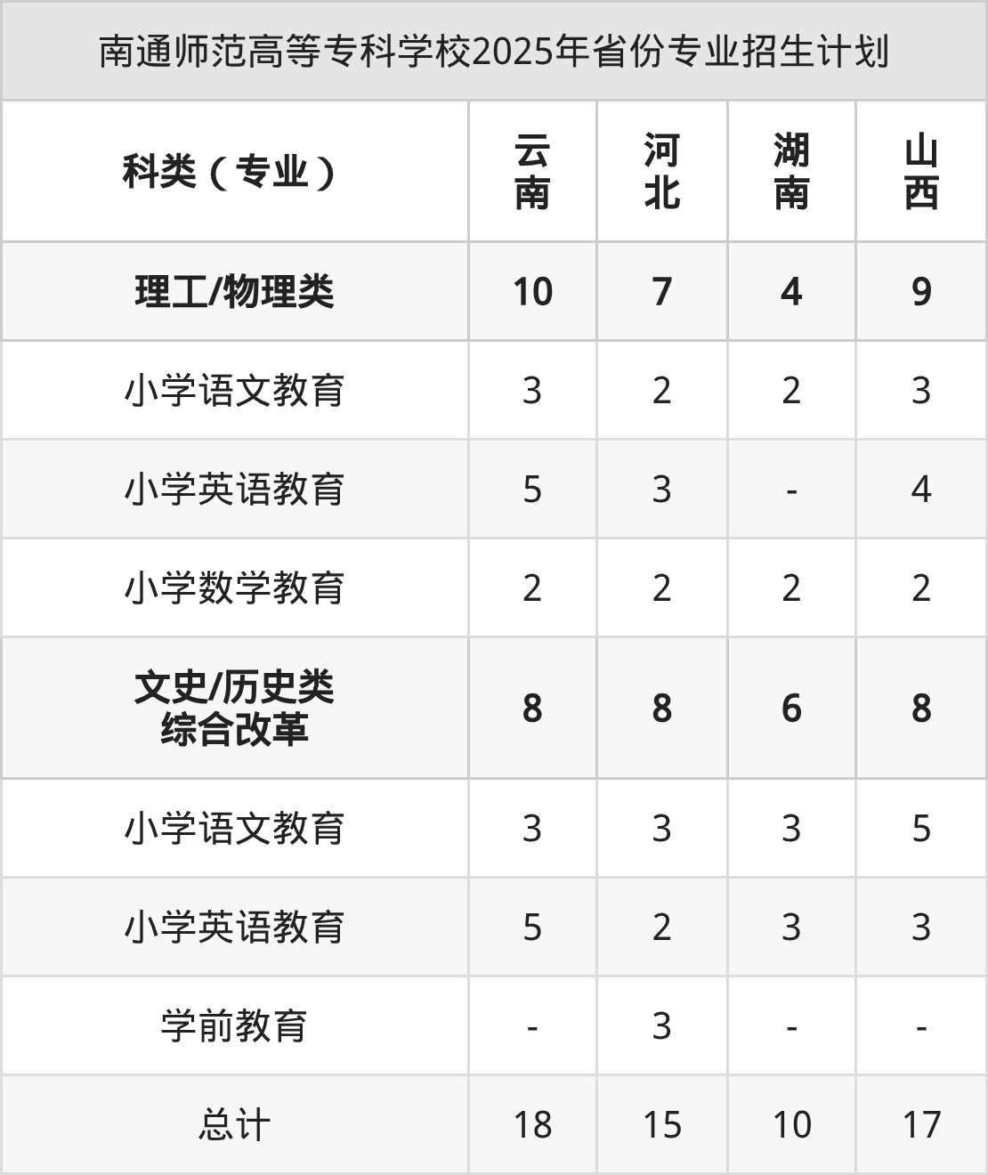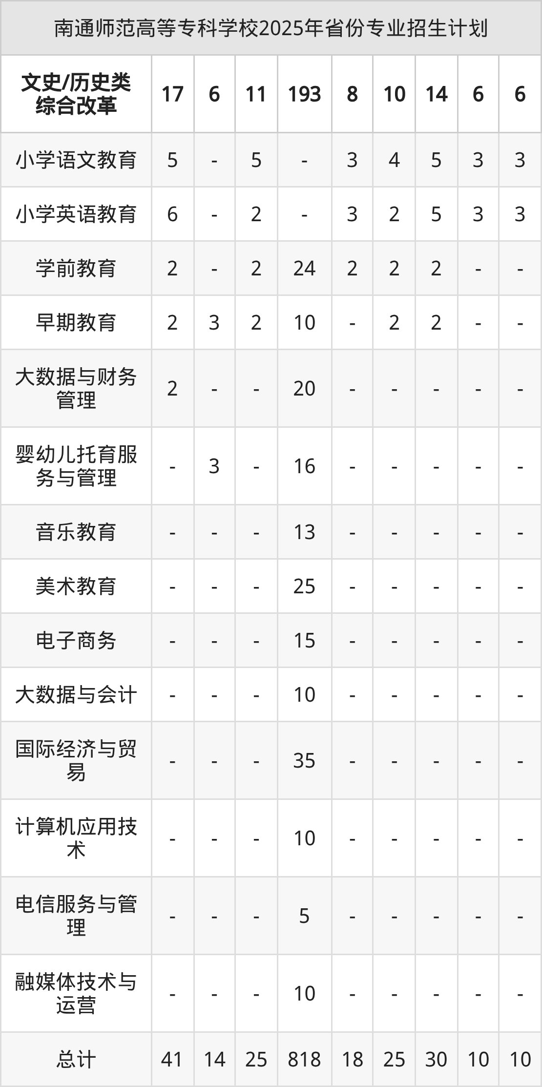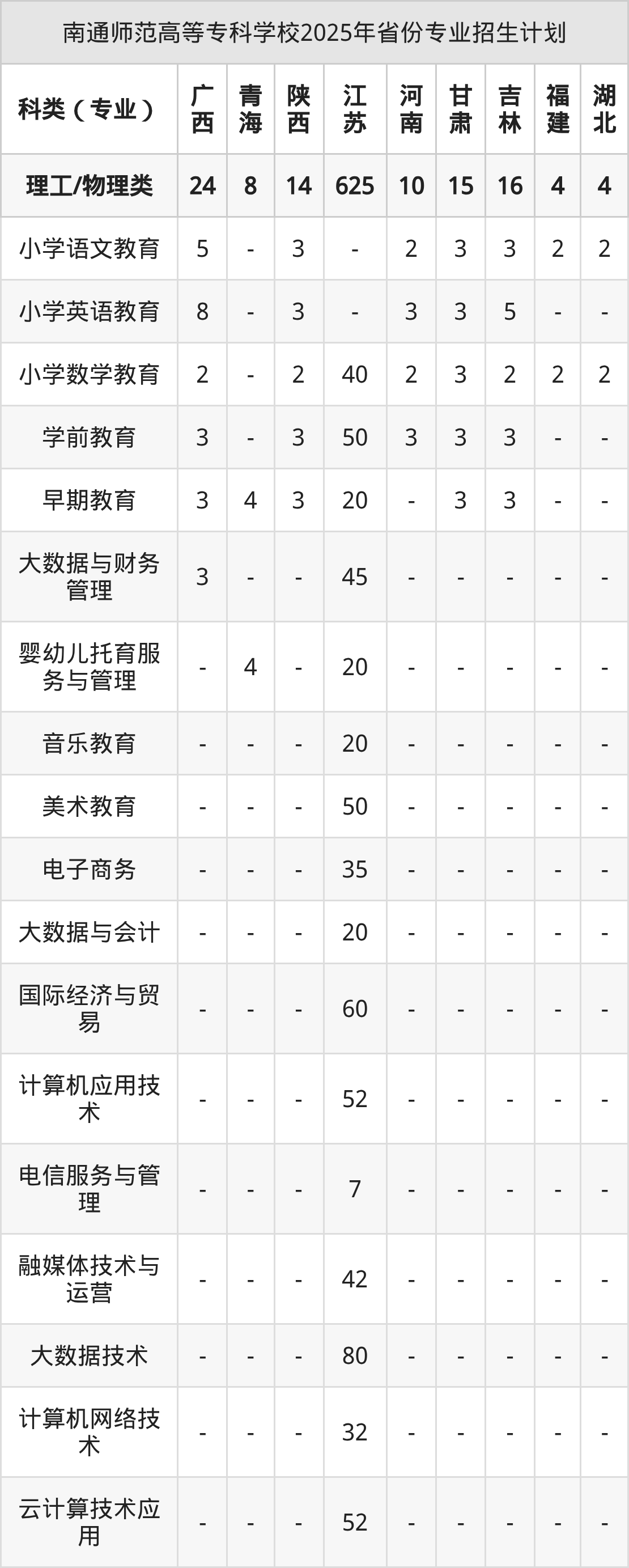 2026年南通师范高等专科学校专科招生计划待公布,下面附上2025年数据,暂供参考: