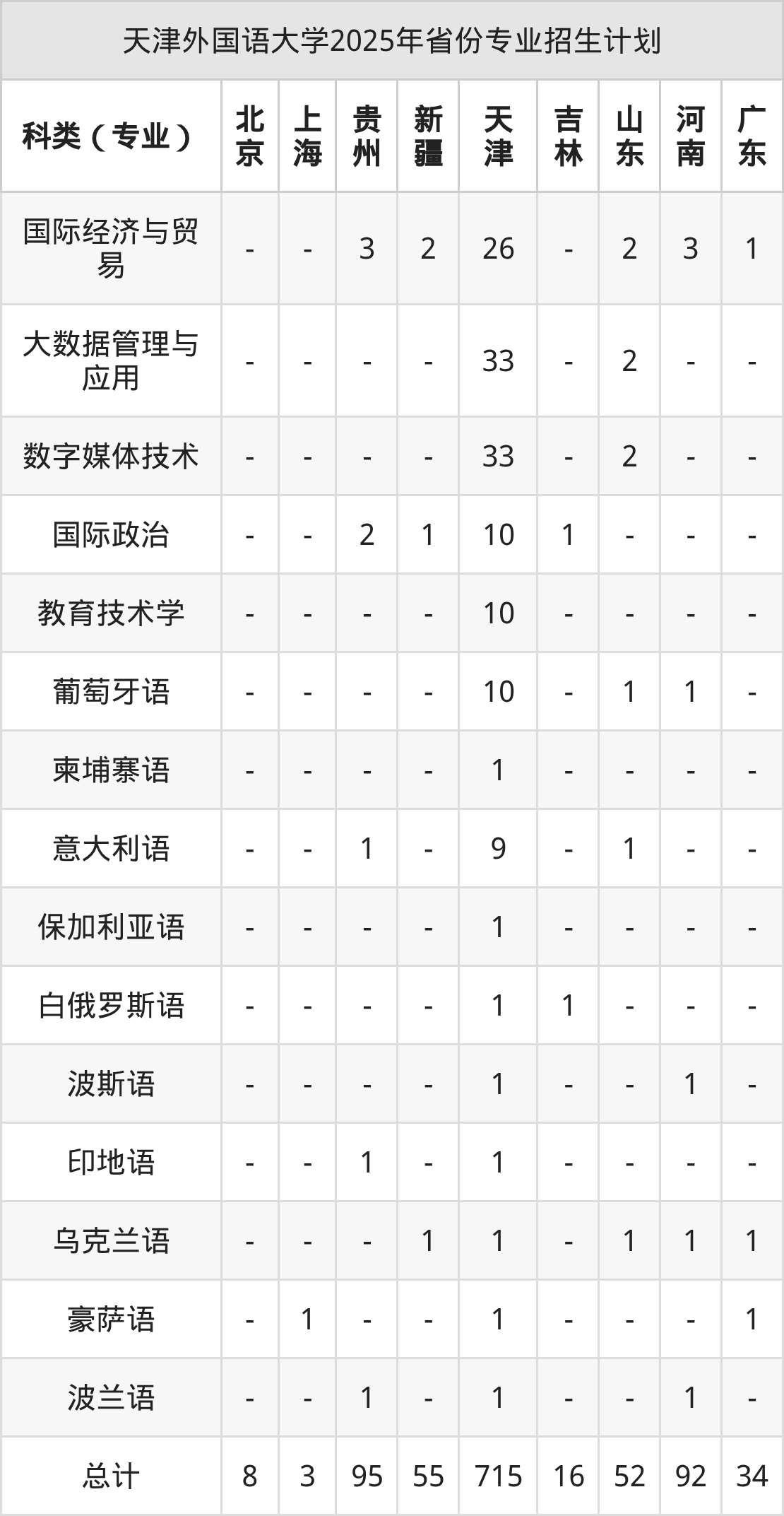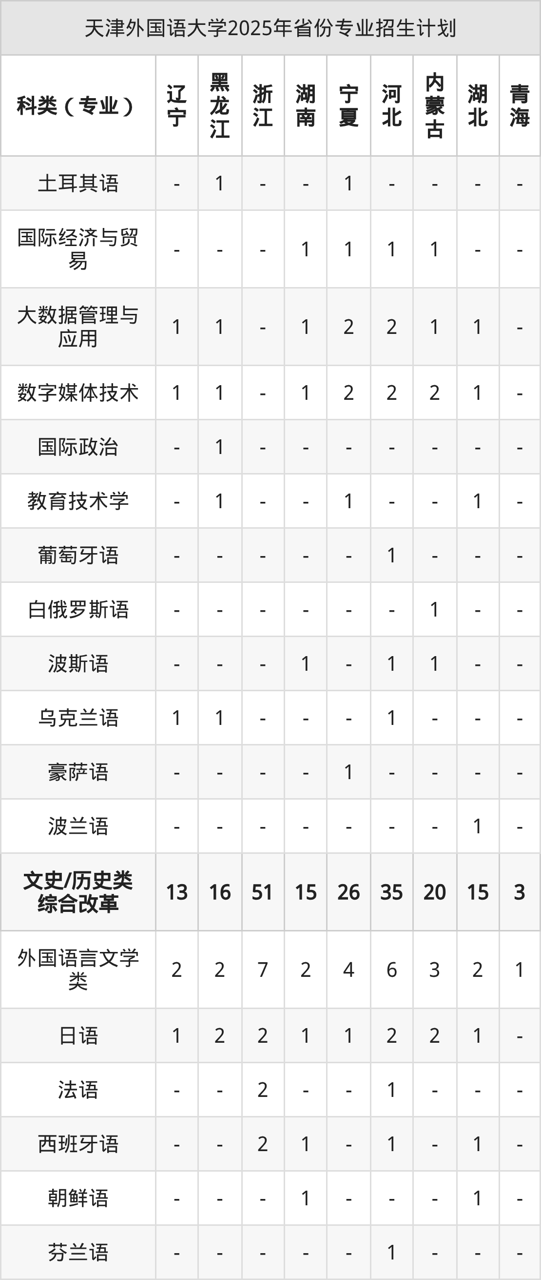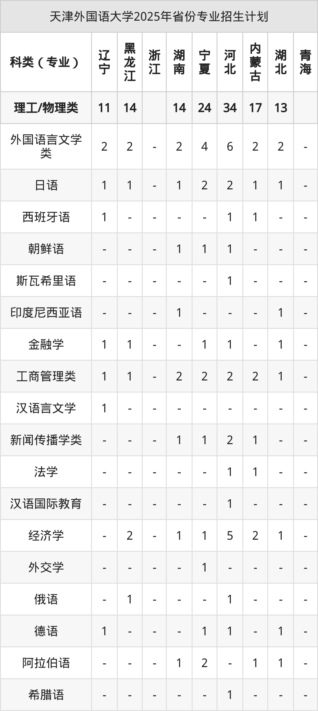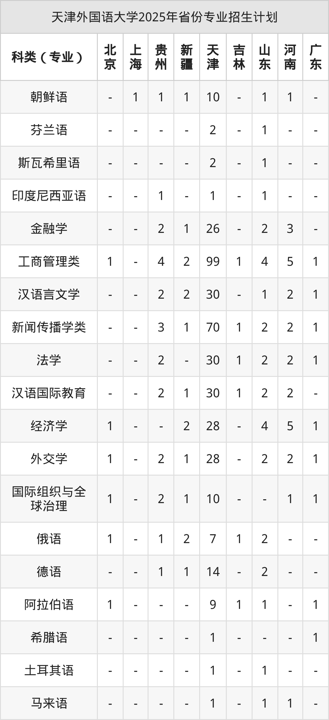 2026年天津外国语大学本科招生计划待公布,下面附上2025年数据,暂供参考: