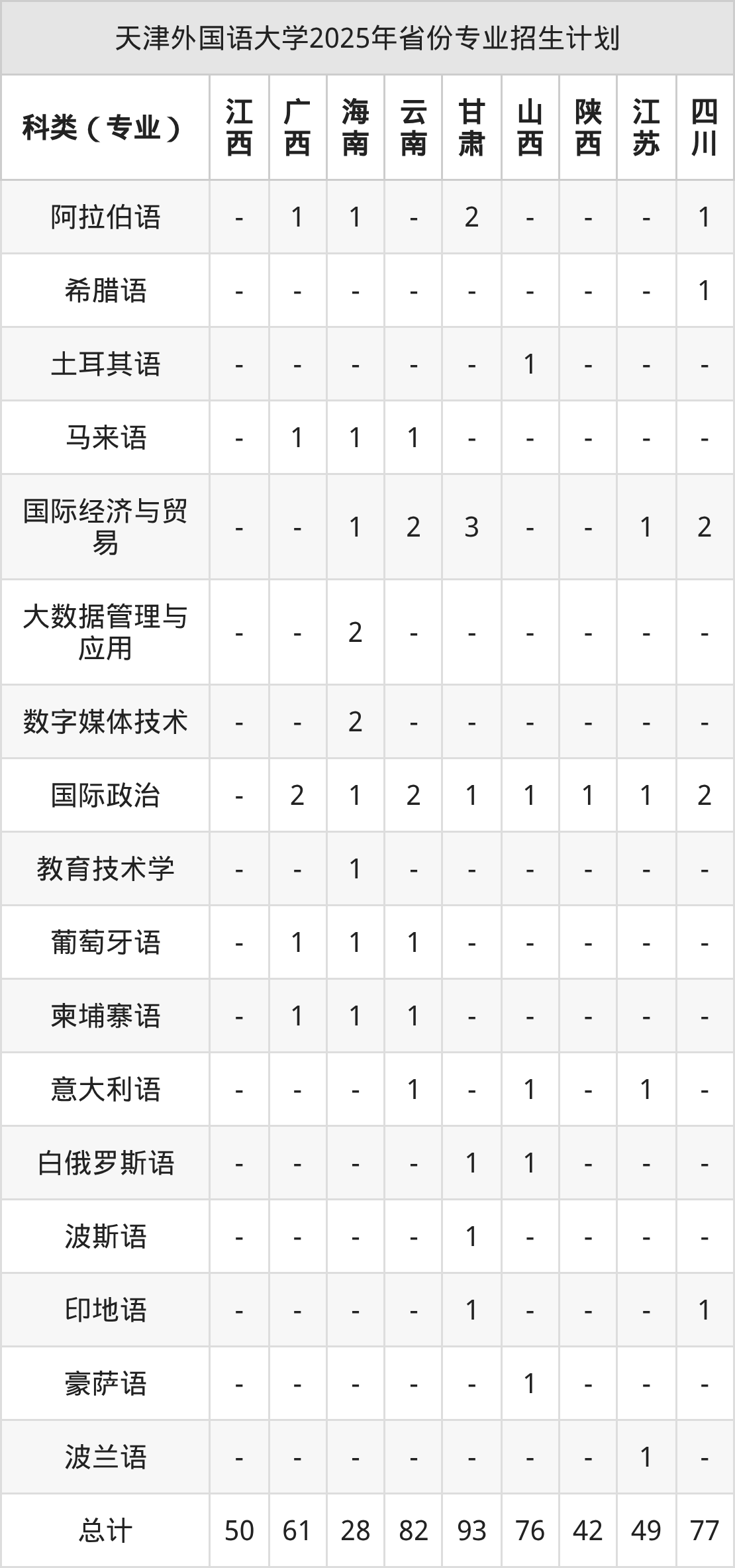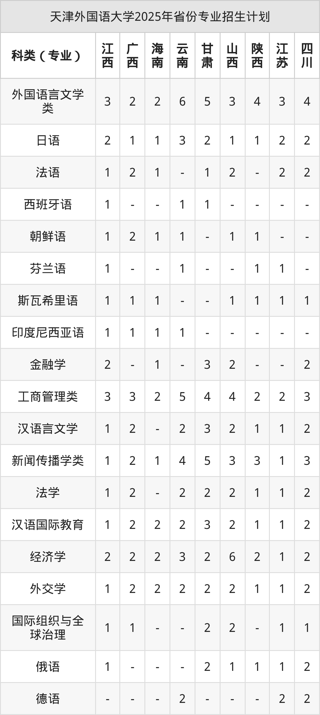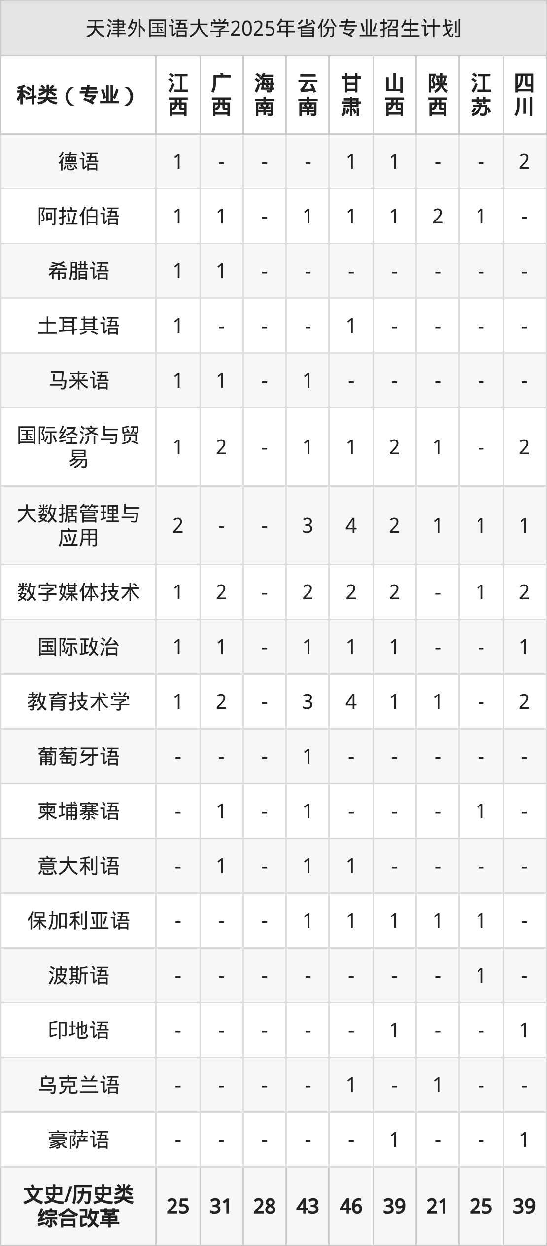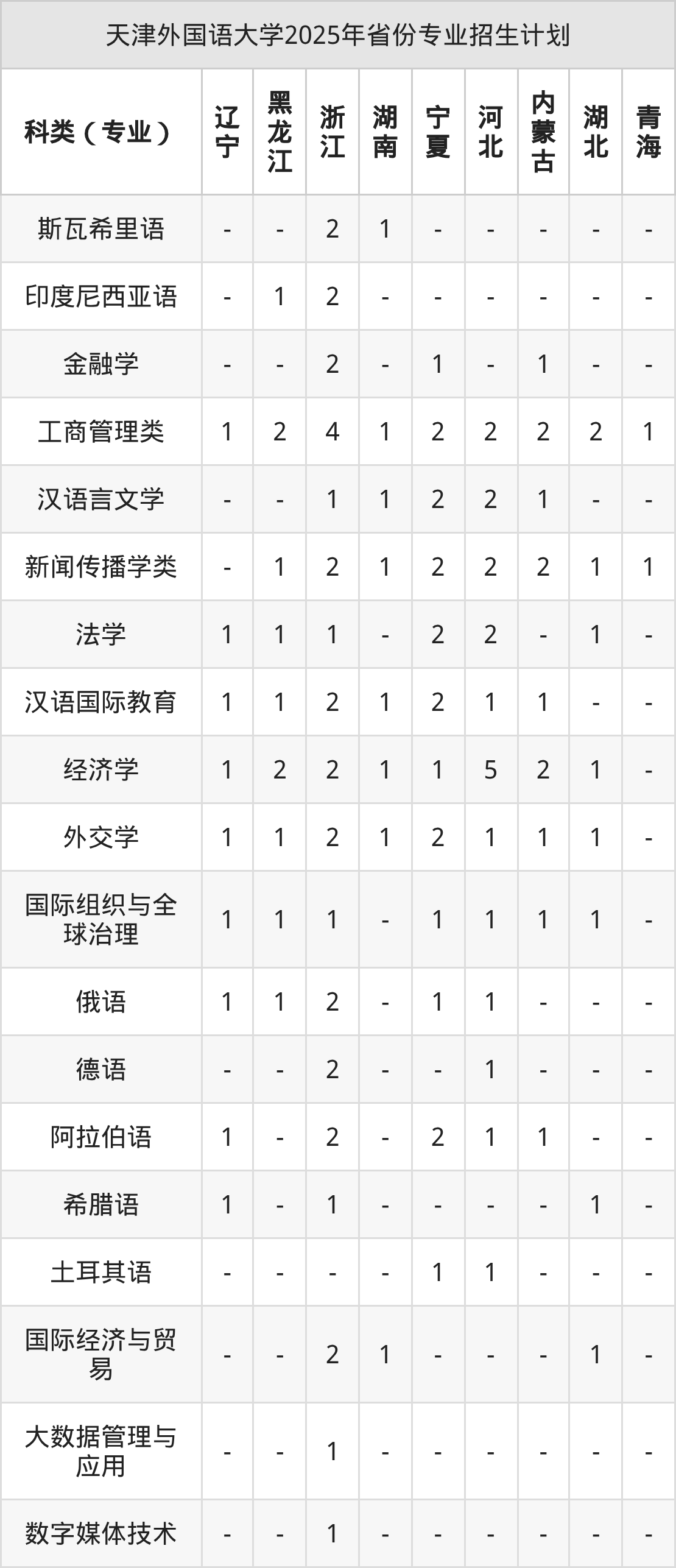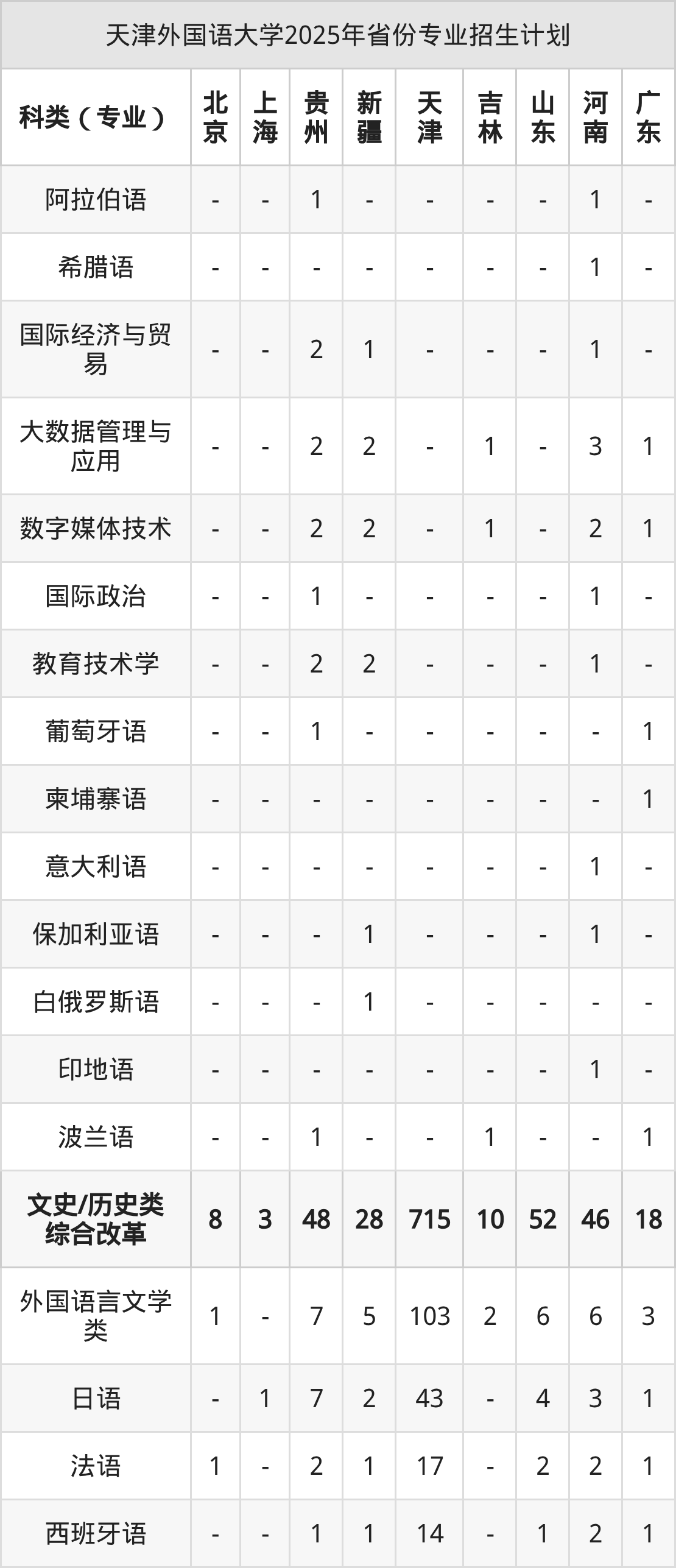2026年天津外国语大学本科招生计划待公布,下面附上2025年数据,暂供参考:
