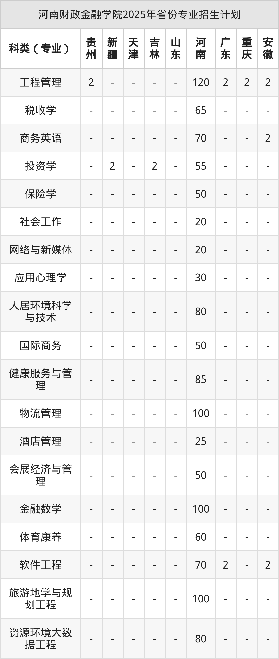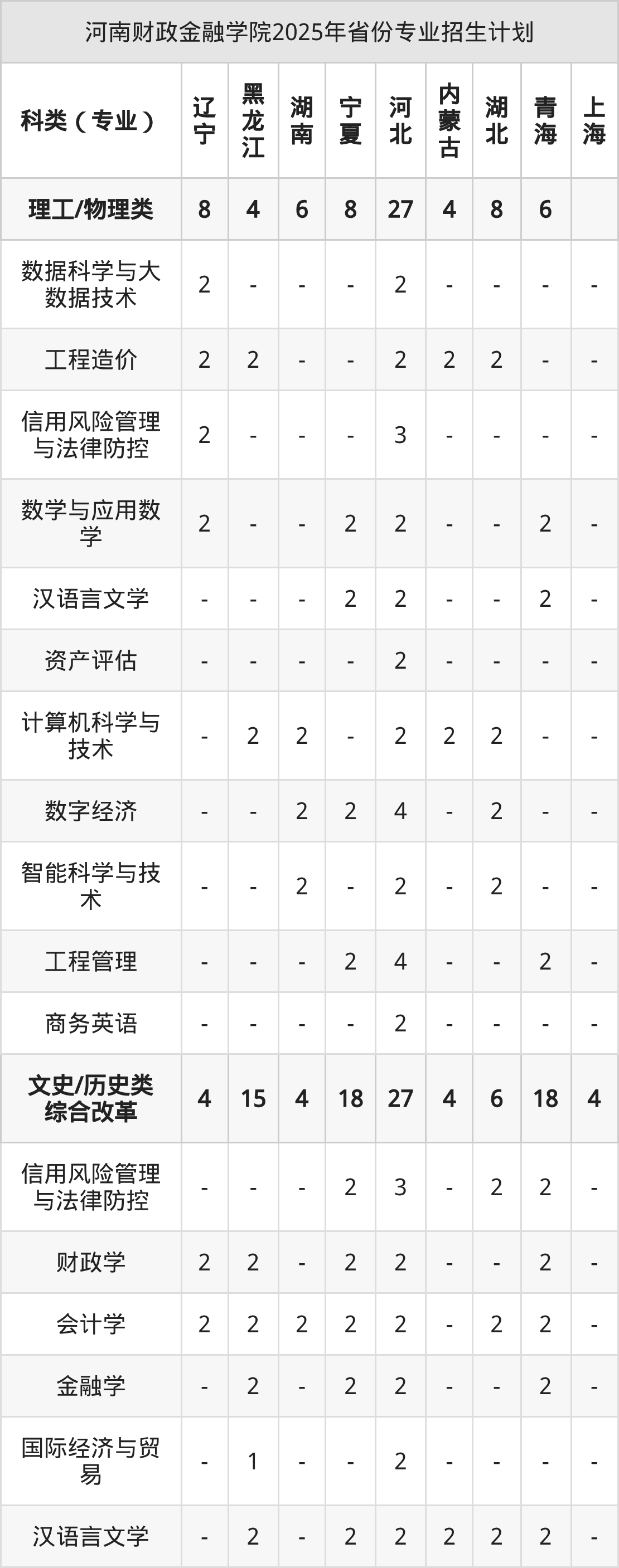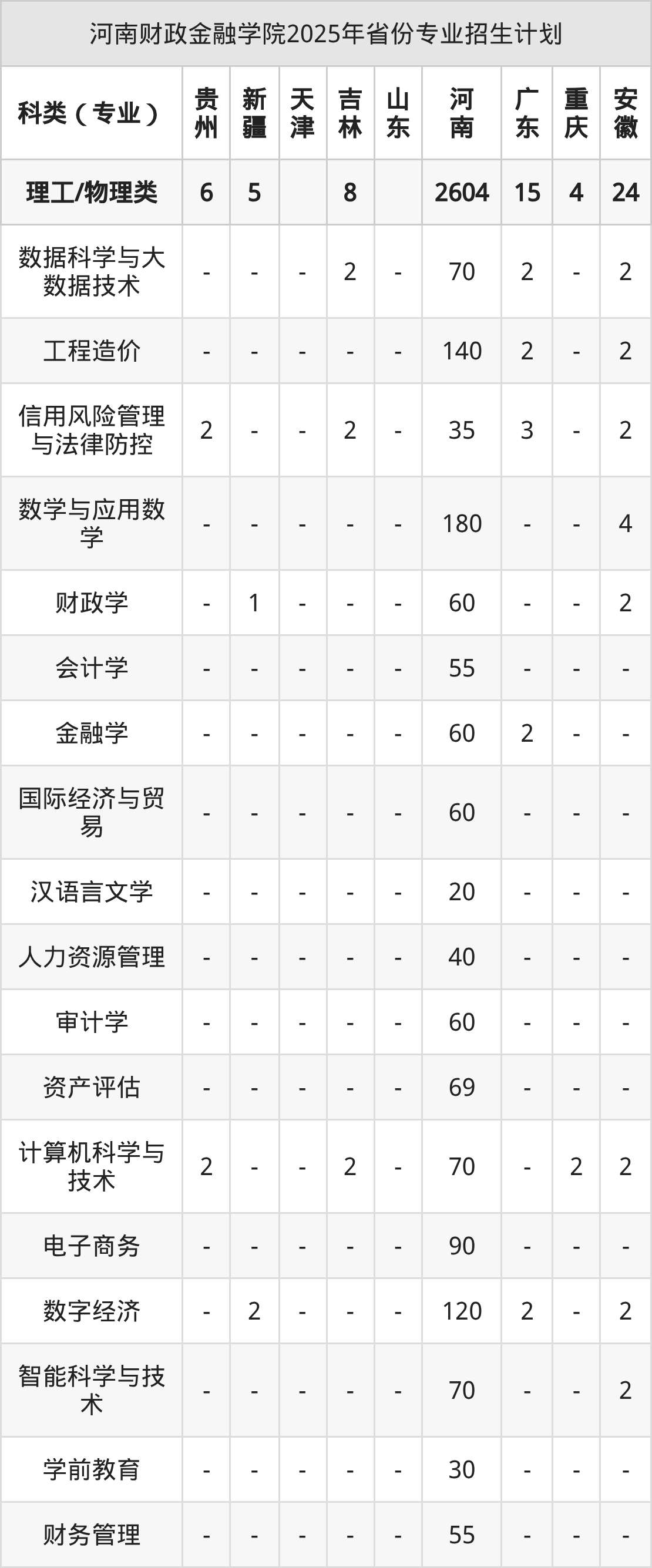 2026年河南财政金融学院本科招生计划待公布,下面附上2025年数据,暂供参考: