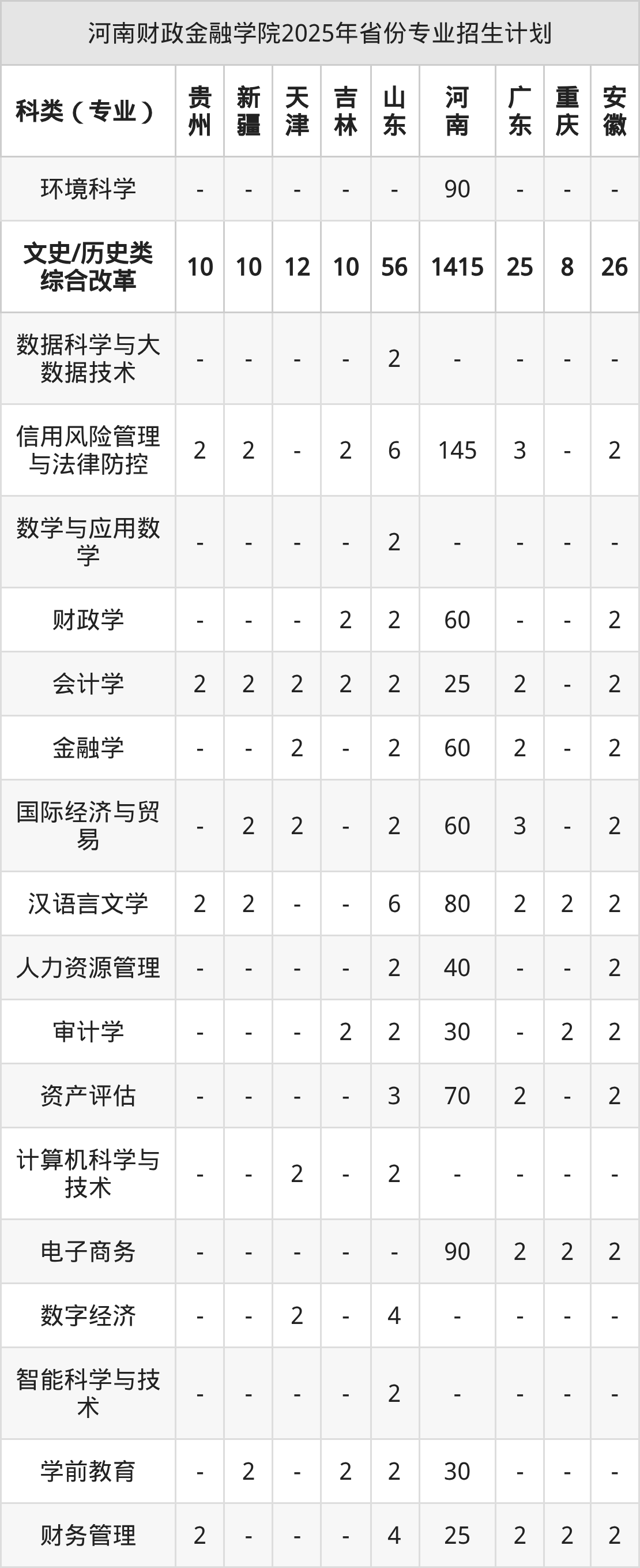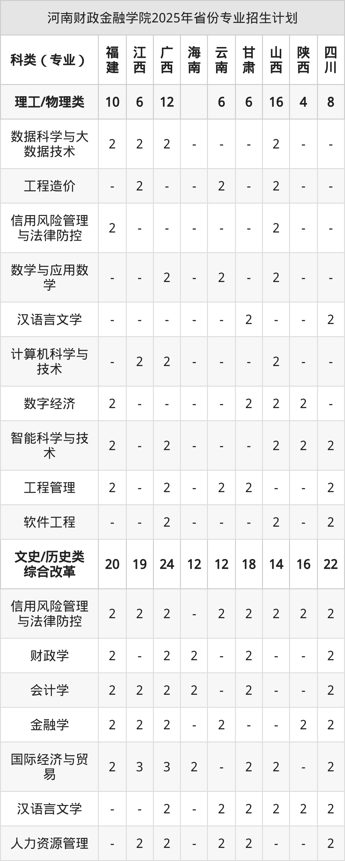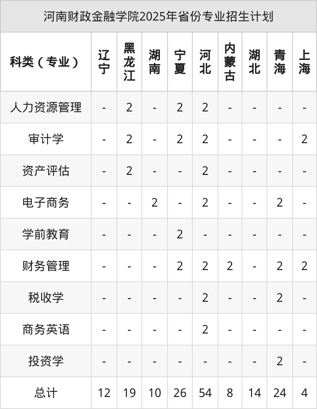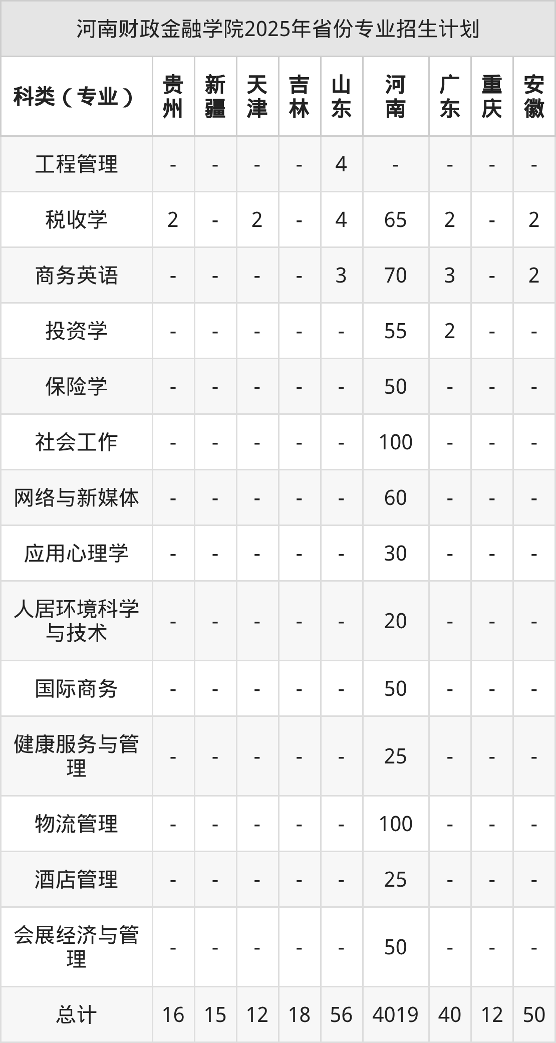 2026年河南财政金融学院本科招生计划待公布,下面附上2025年数据,暂供参考: