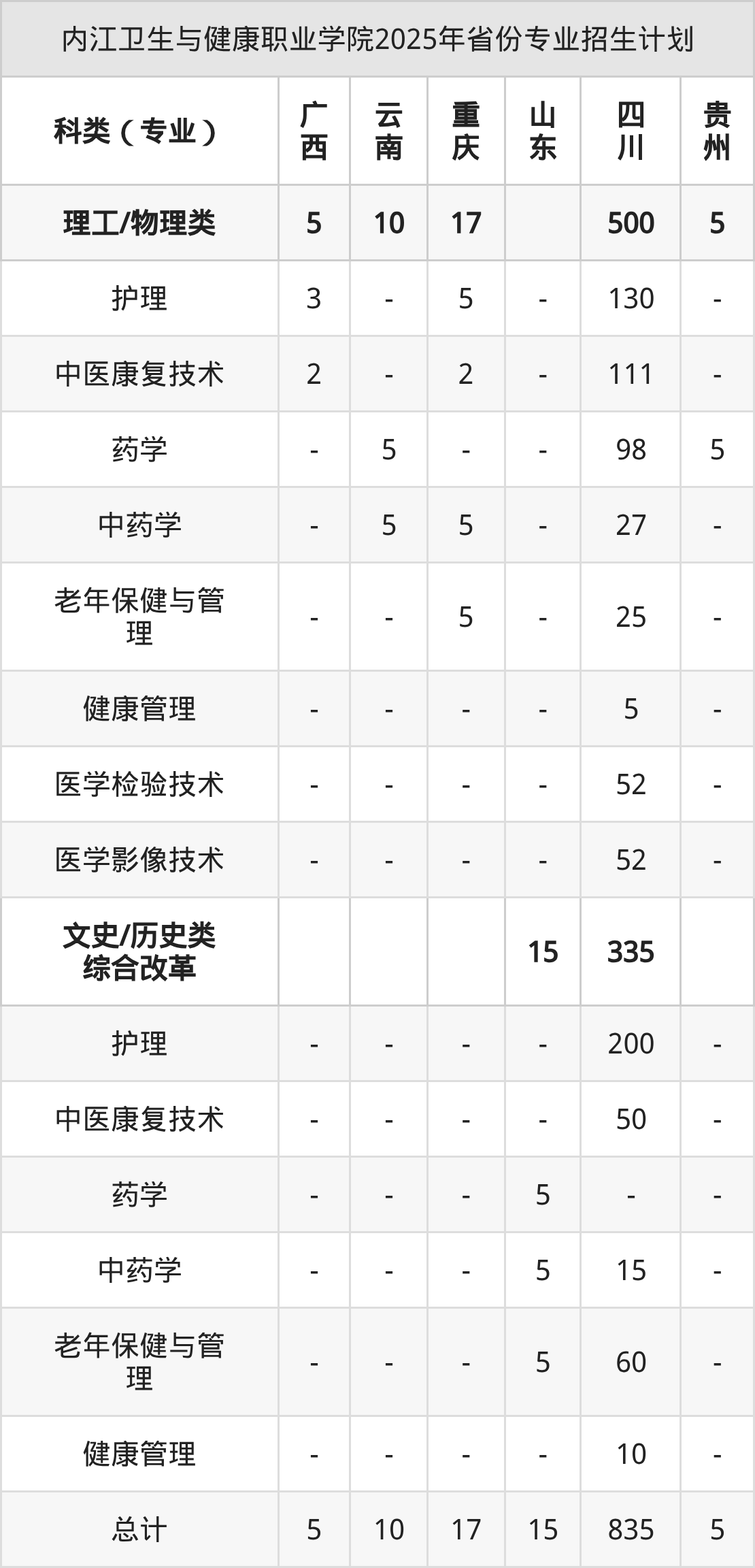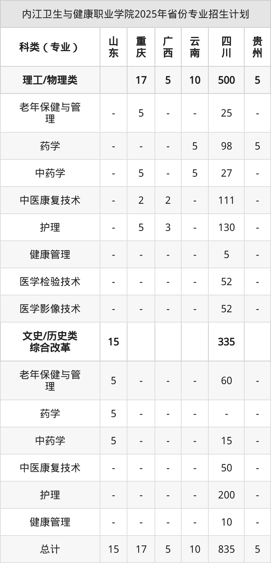 2026年内江卫生与健康职业学院专科招生计划待公布,下面附上2025年数据,暂供参考: