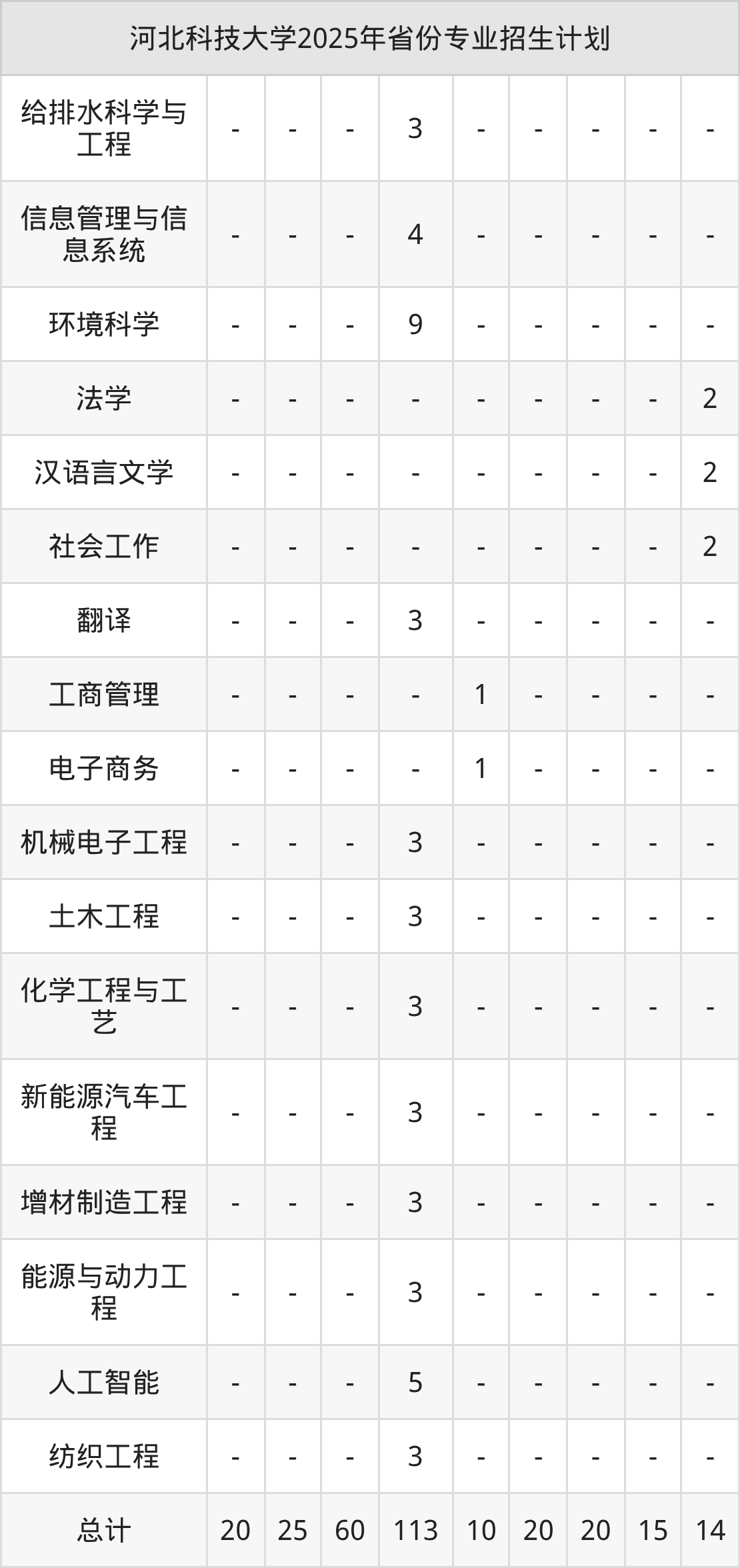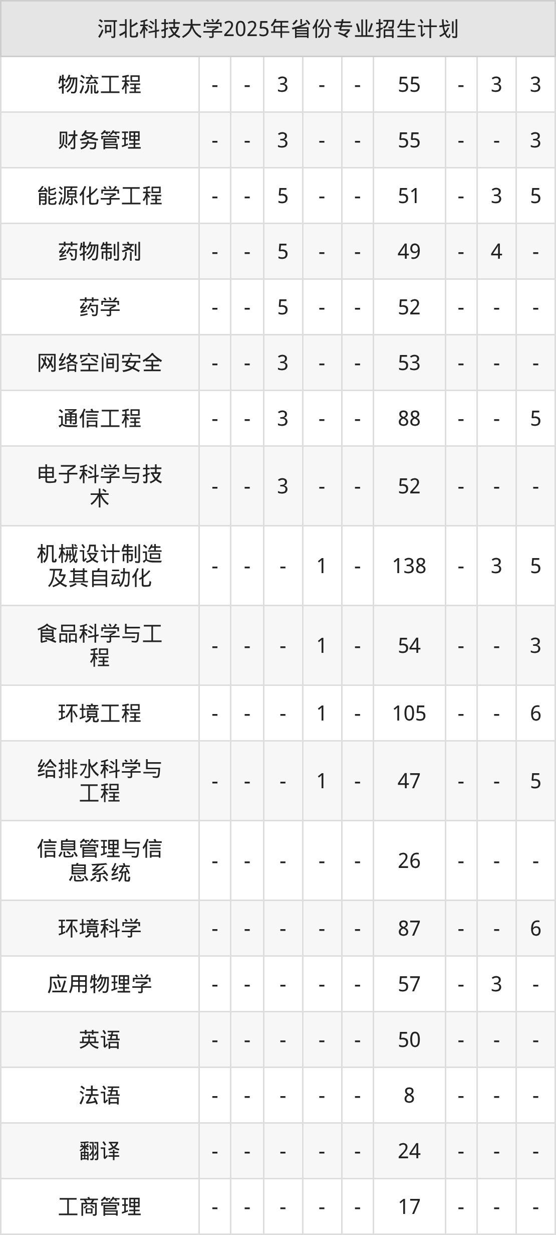 2026年河北科技大学本科招生计划待公布,下面附上2025年数据,暂供参考: