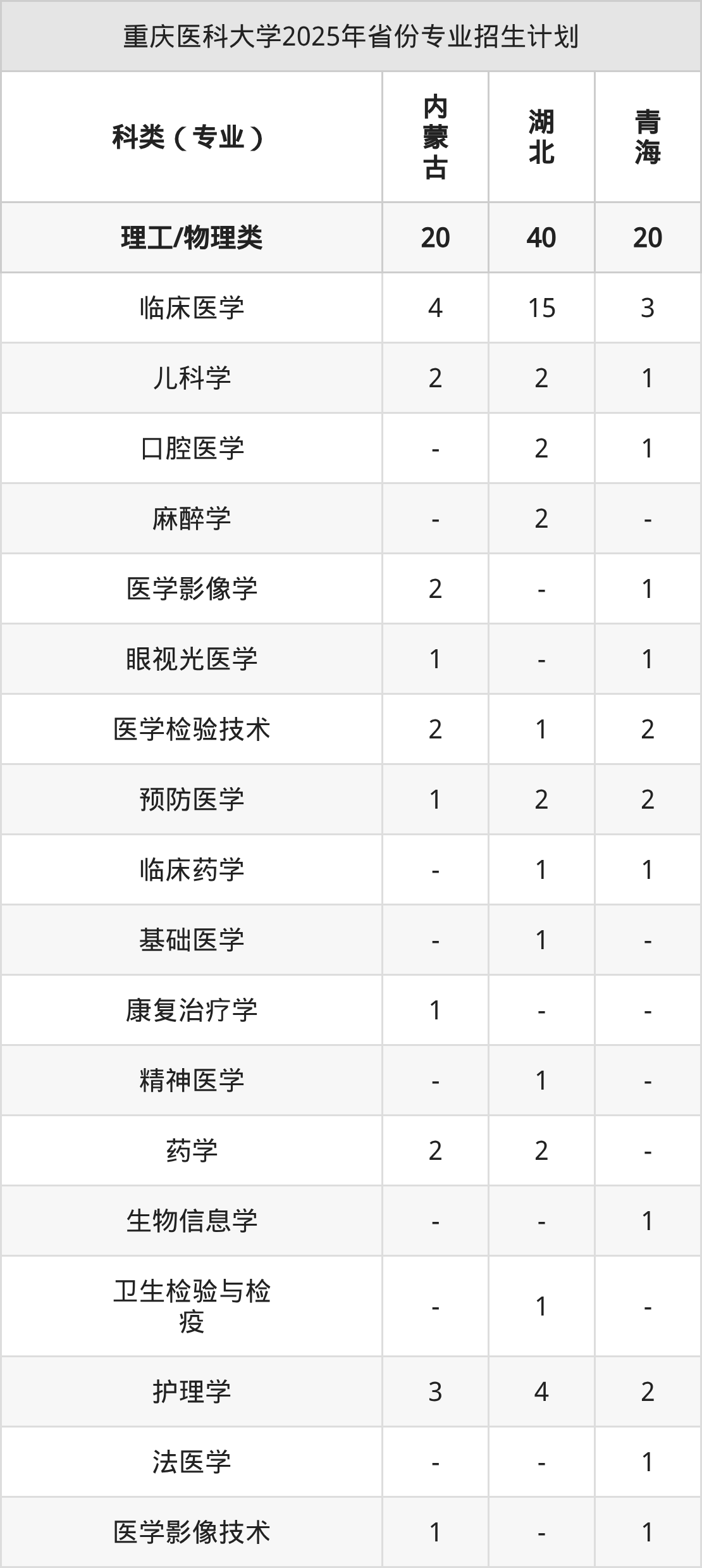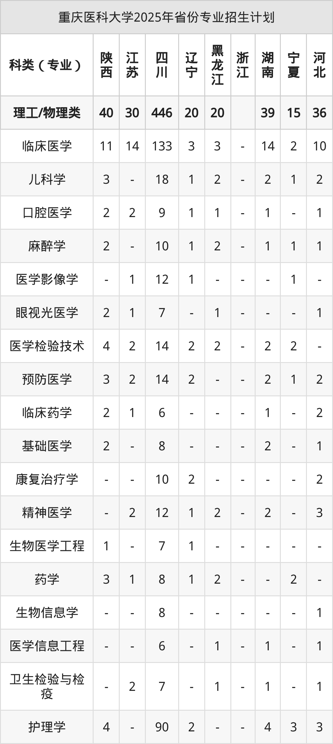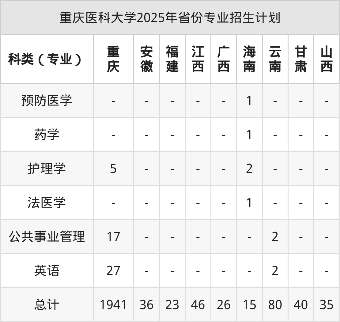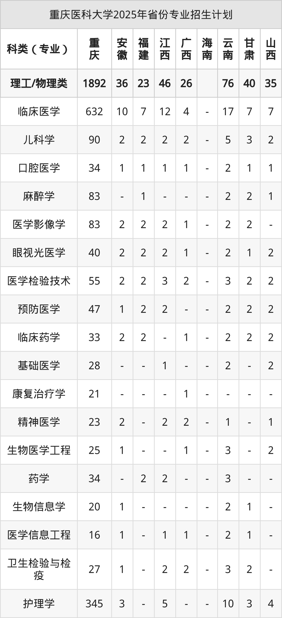 2026年重庆医科大学本科招生计划待公布,下面附上2025年数据,暂供参考: