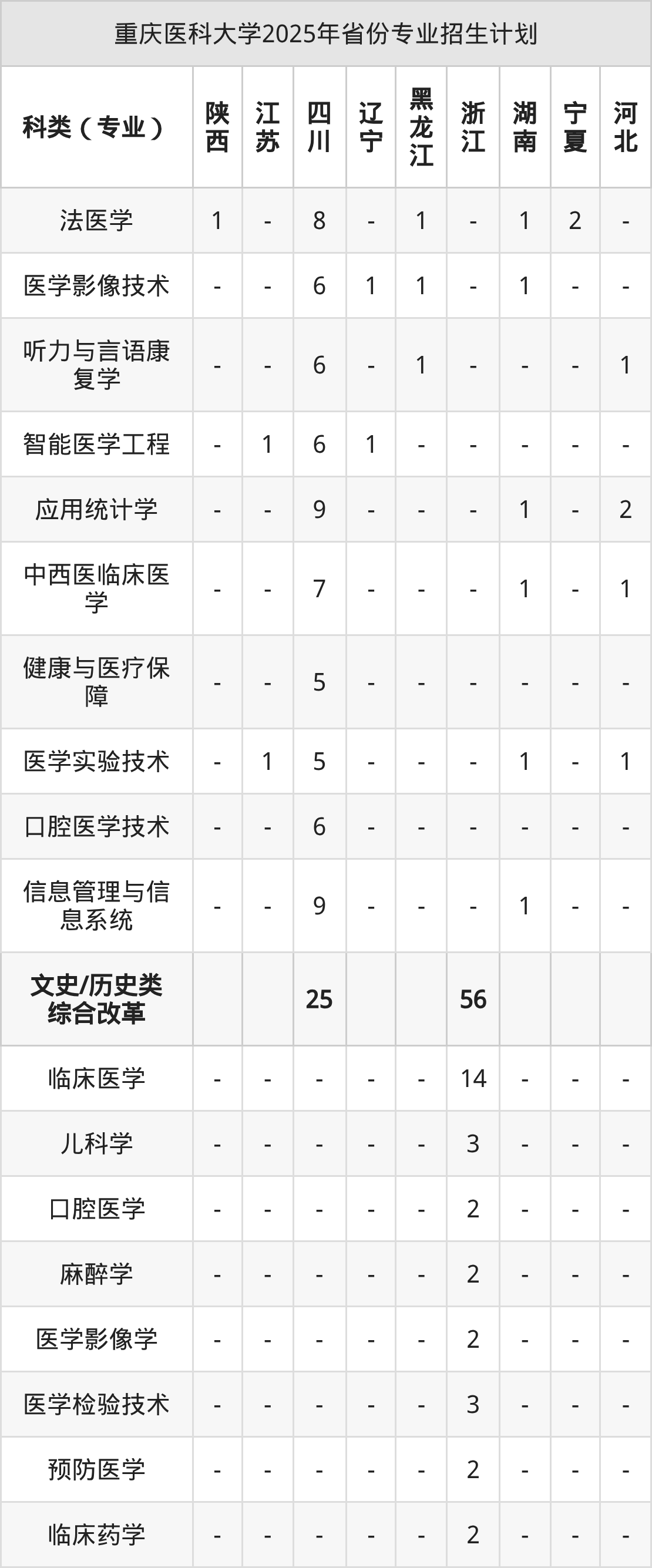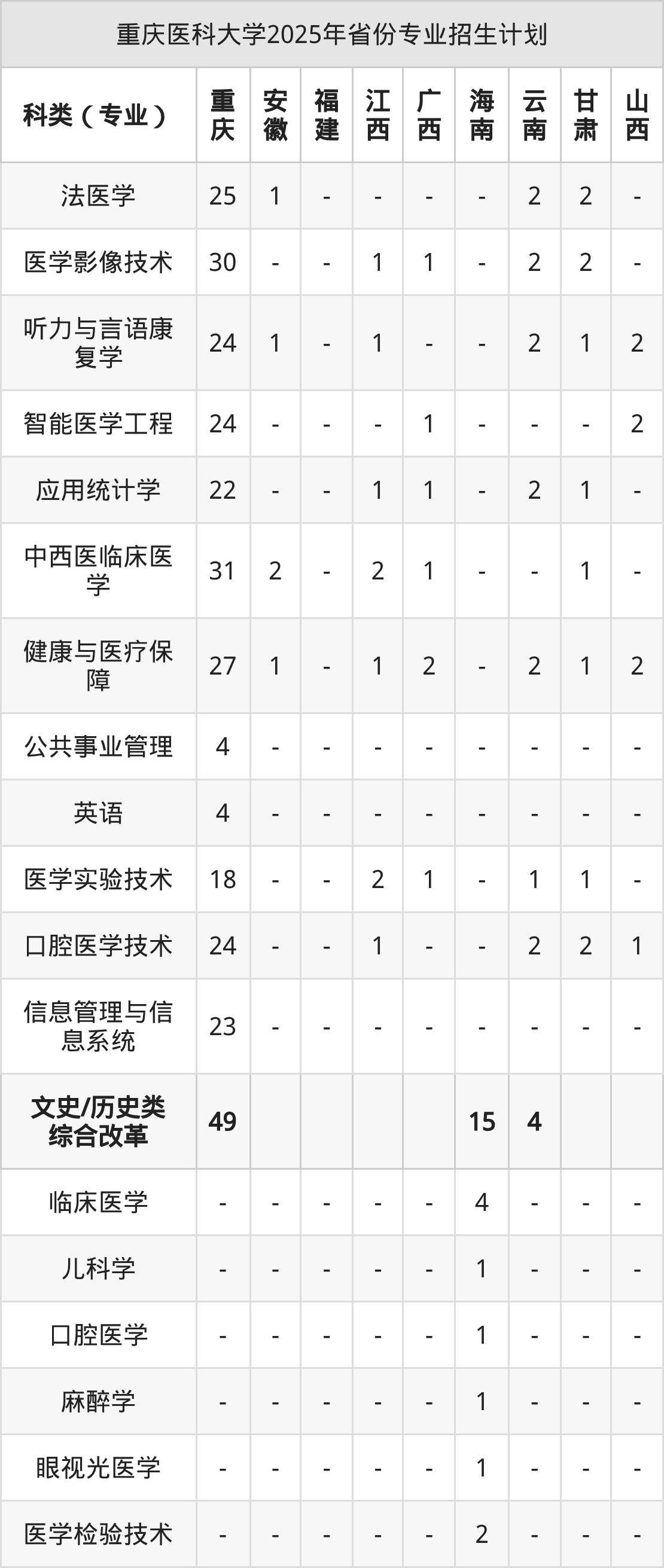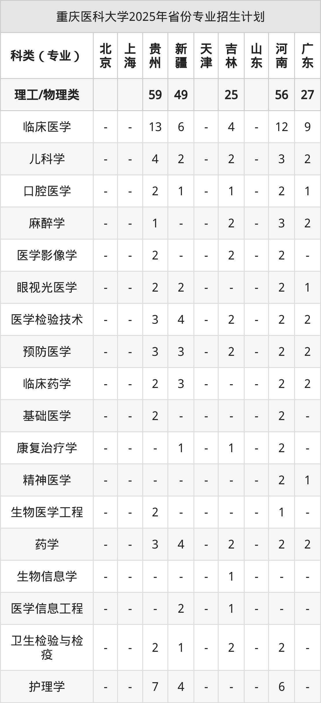 2026年重庆医科大学本科招生计划待公布,下面附上2025年数据,暂供参考: