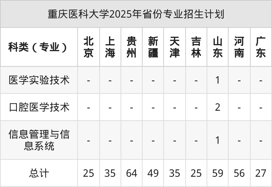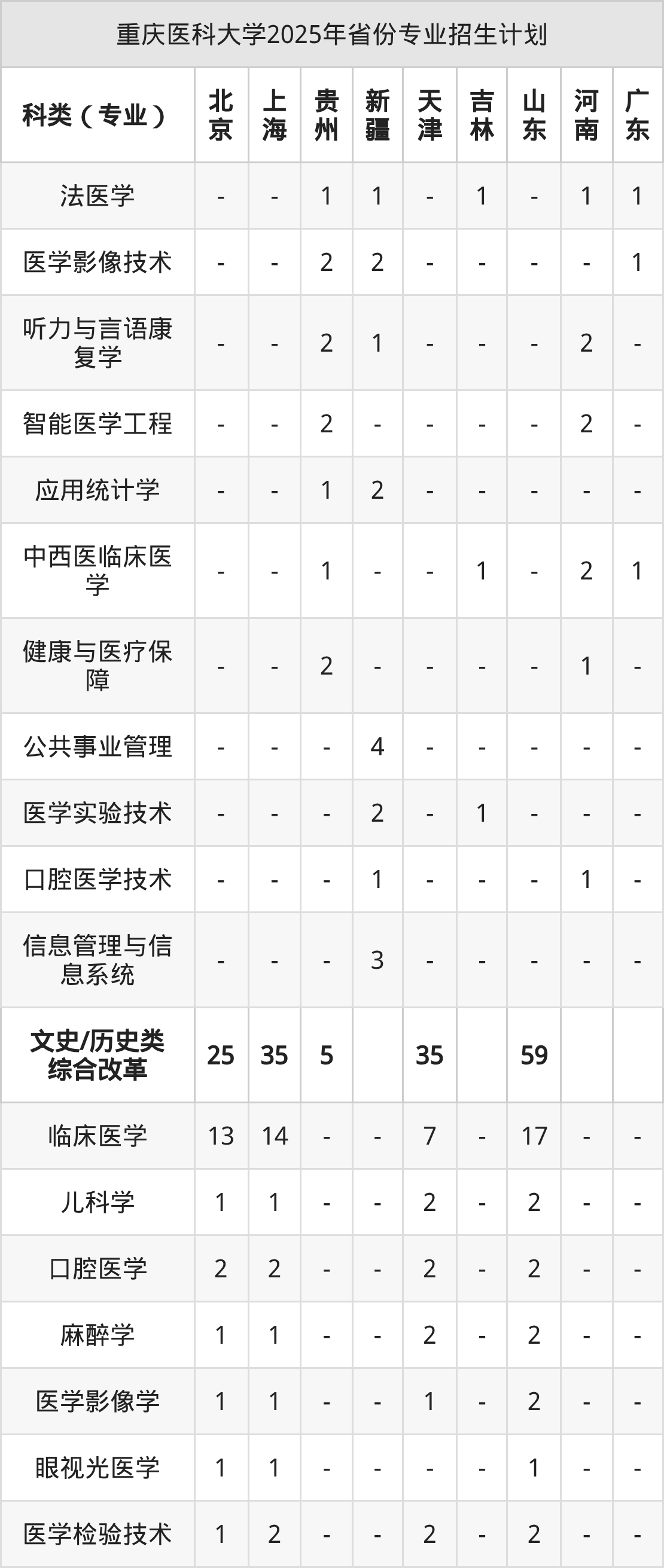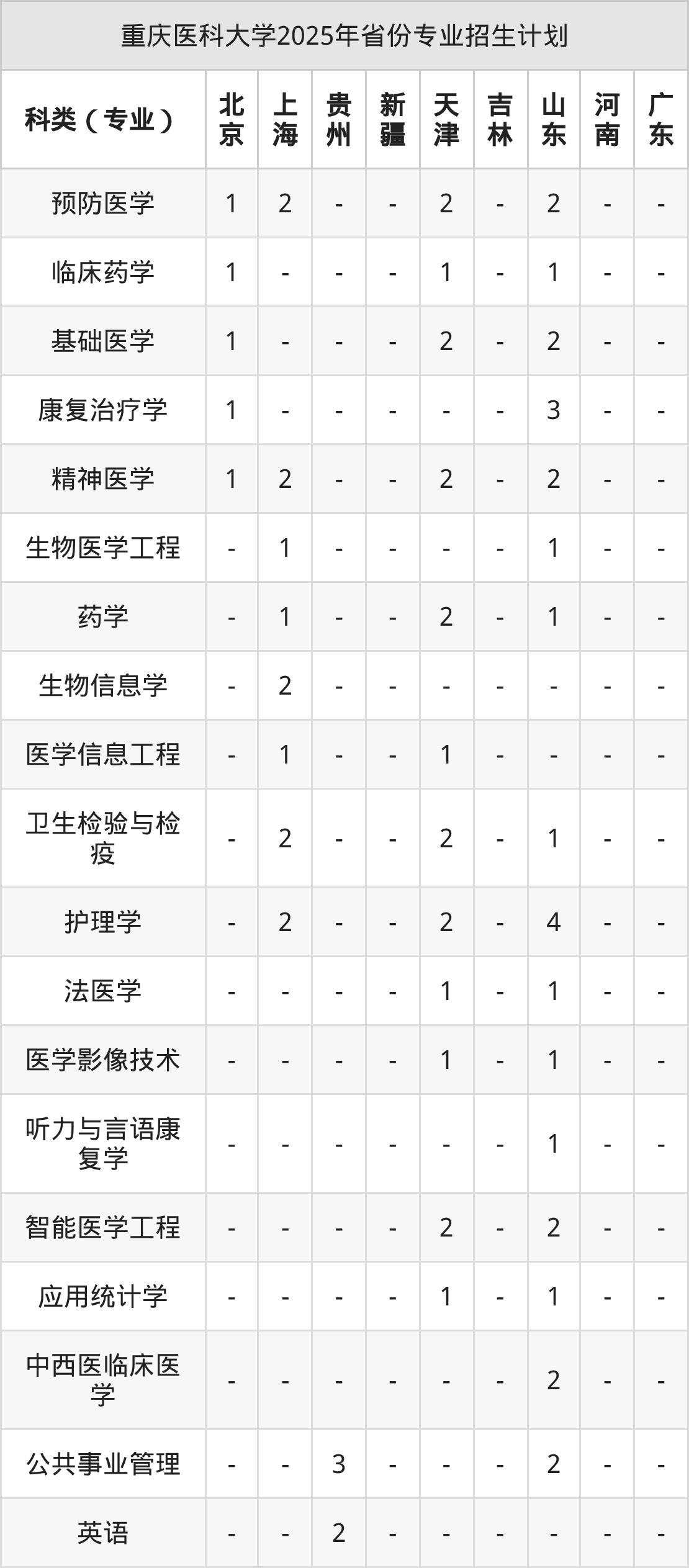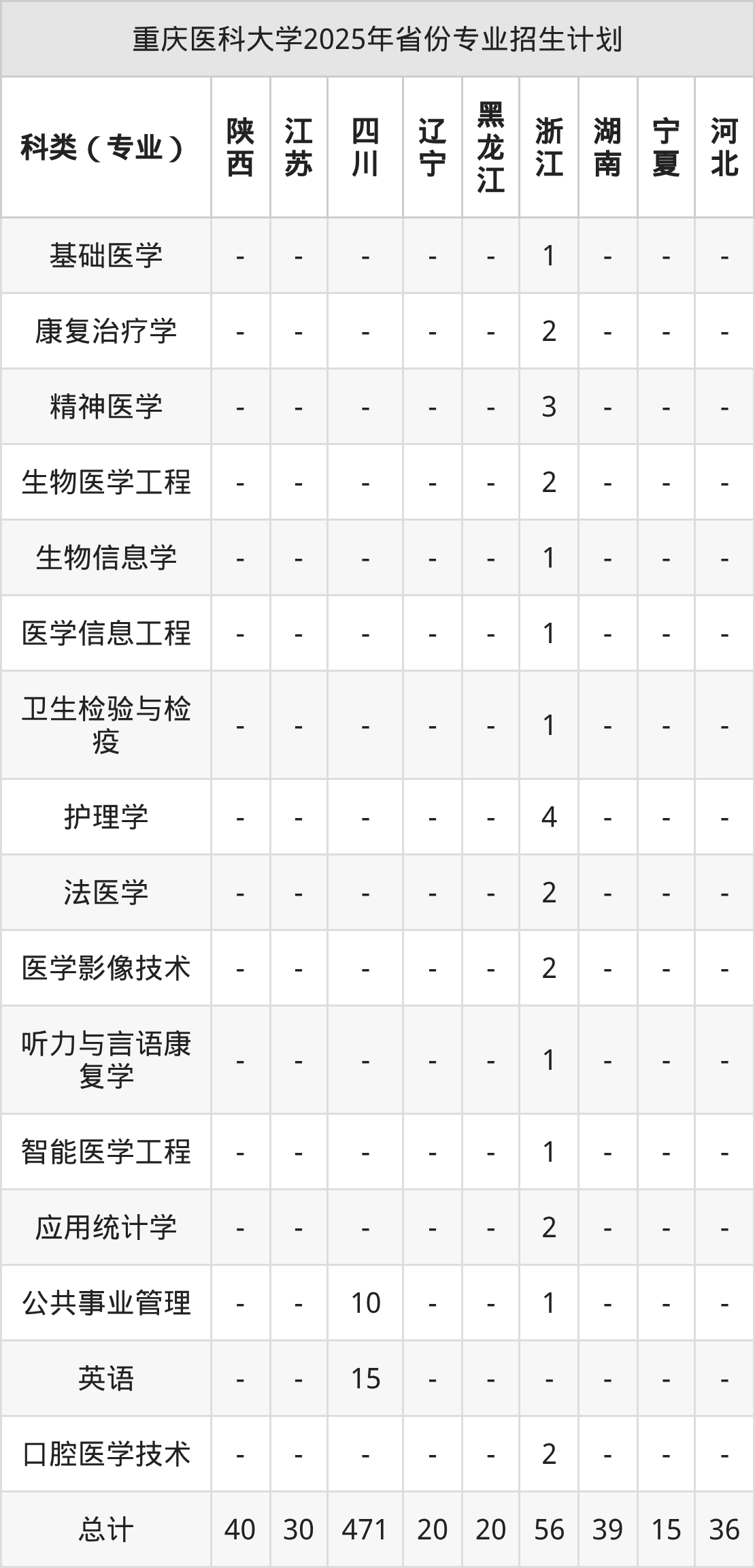 2026年重庆医科大学本科招生计划待公布,下面附上2025年数据,暂供参考: