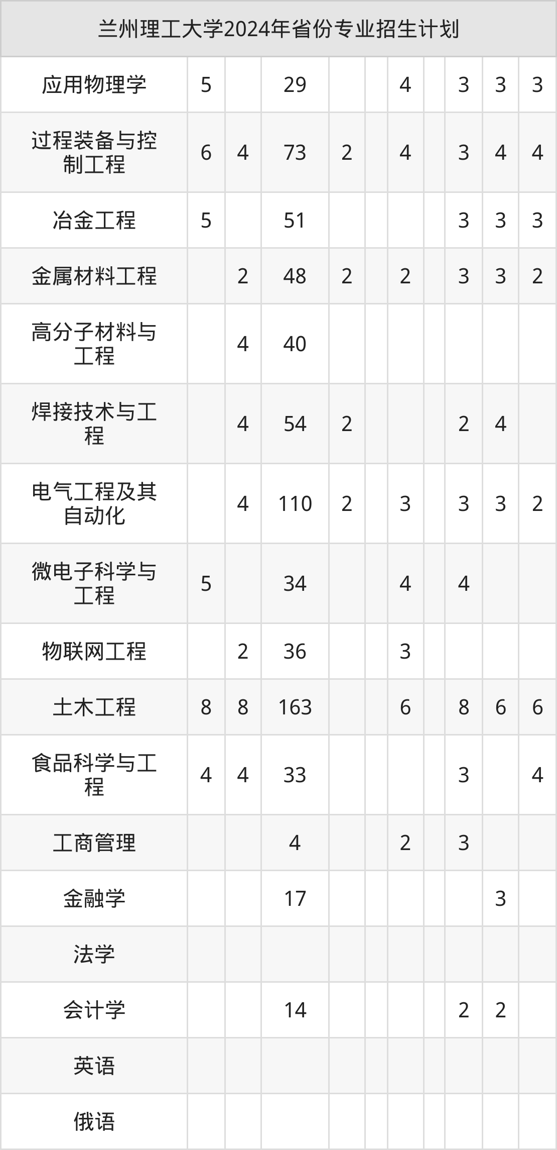 2025年兰州理工大学本科招生计划待公布,下面附上2024年数据,暂供参考: