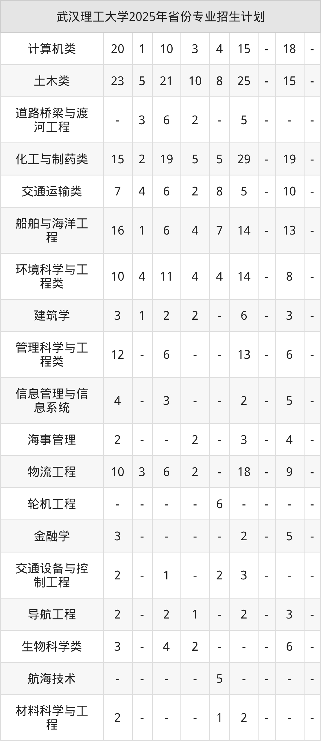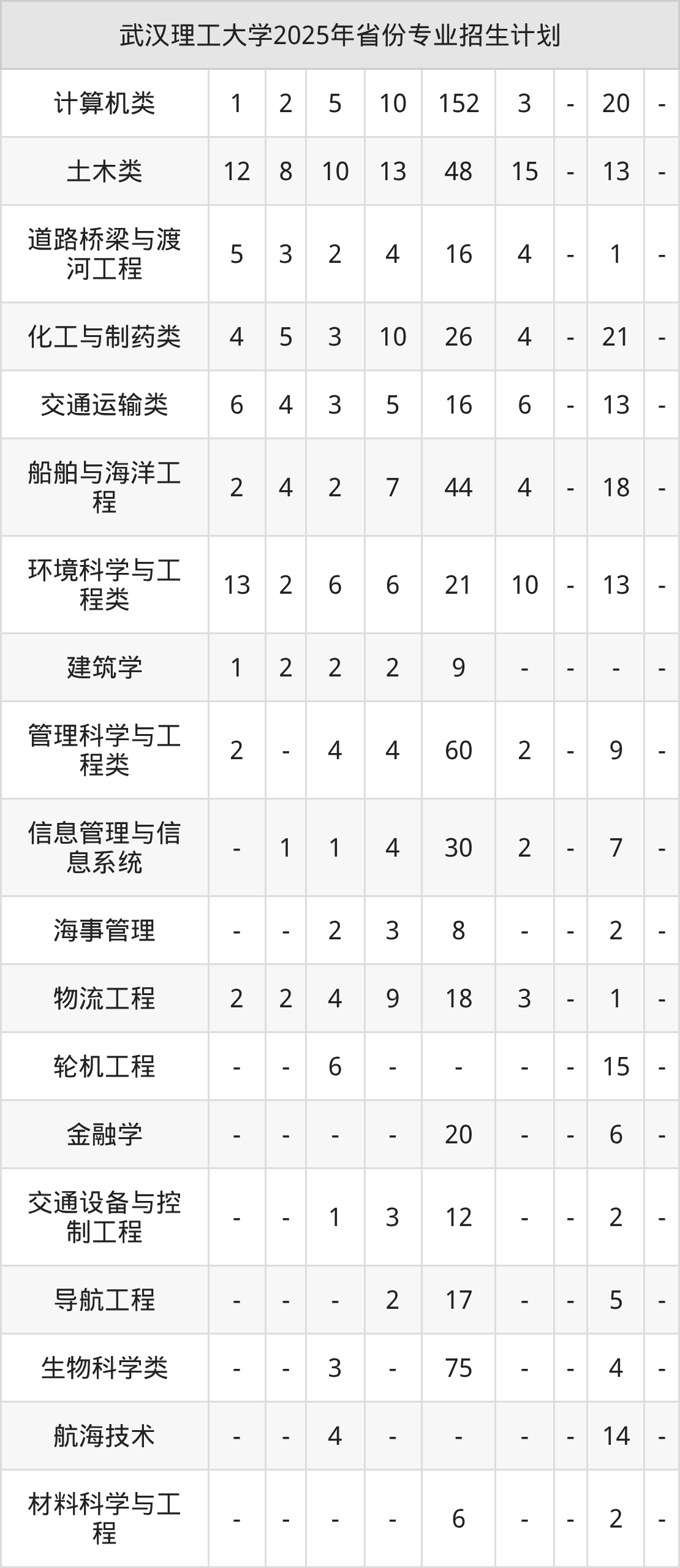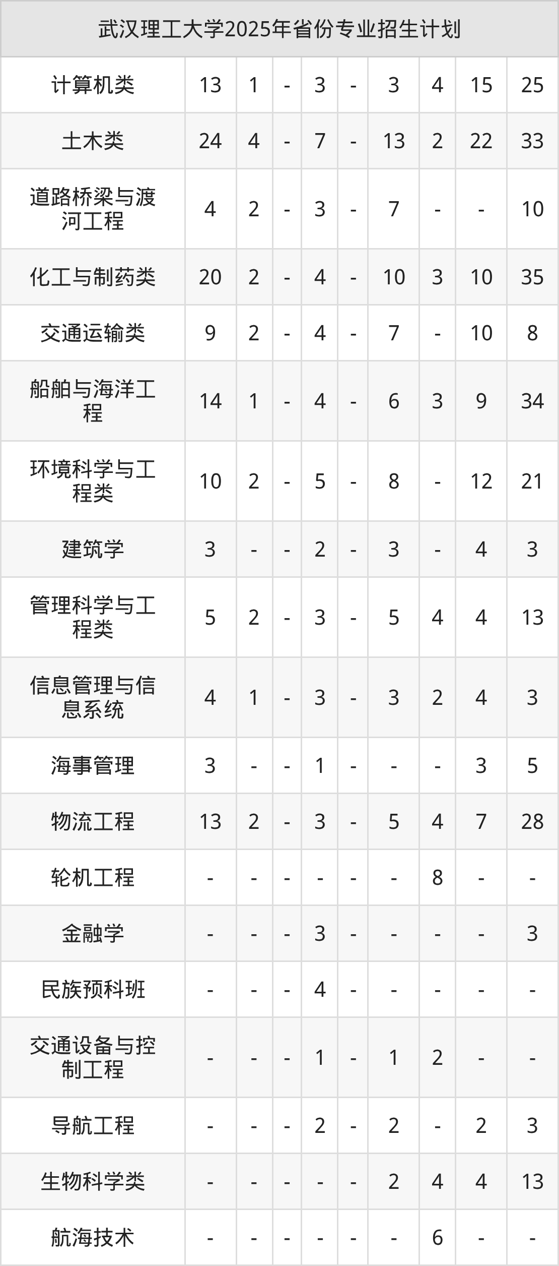 2026年武汉理工大学本科招生计划待公布,下面附上2025年数据,暂供参考: