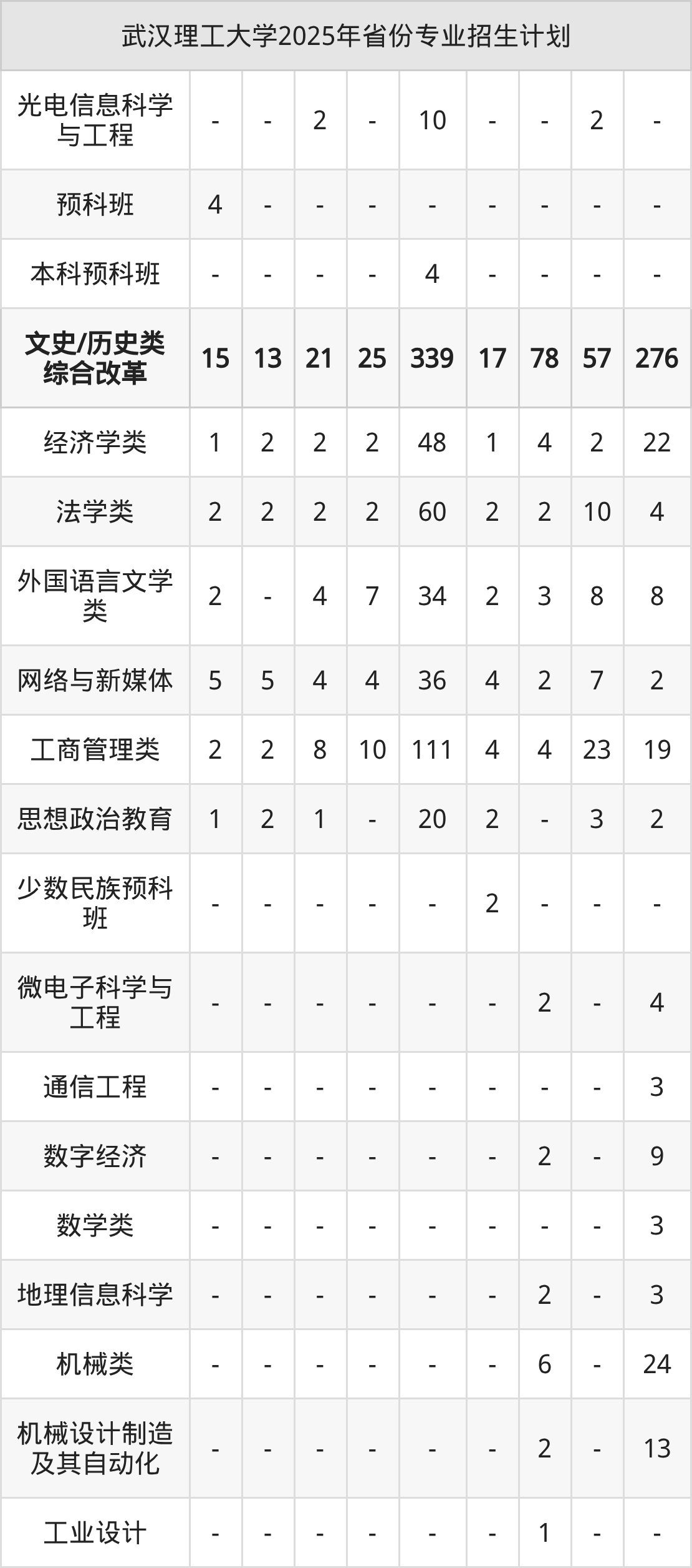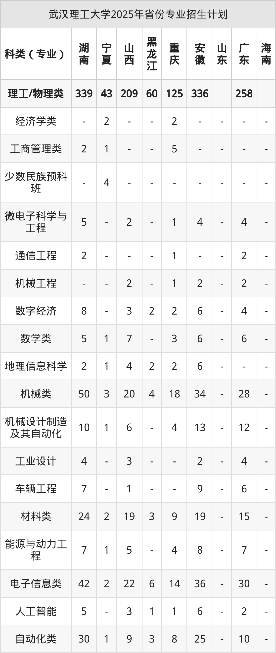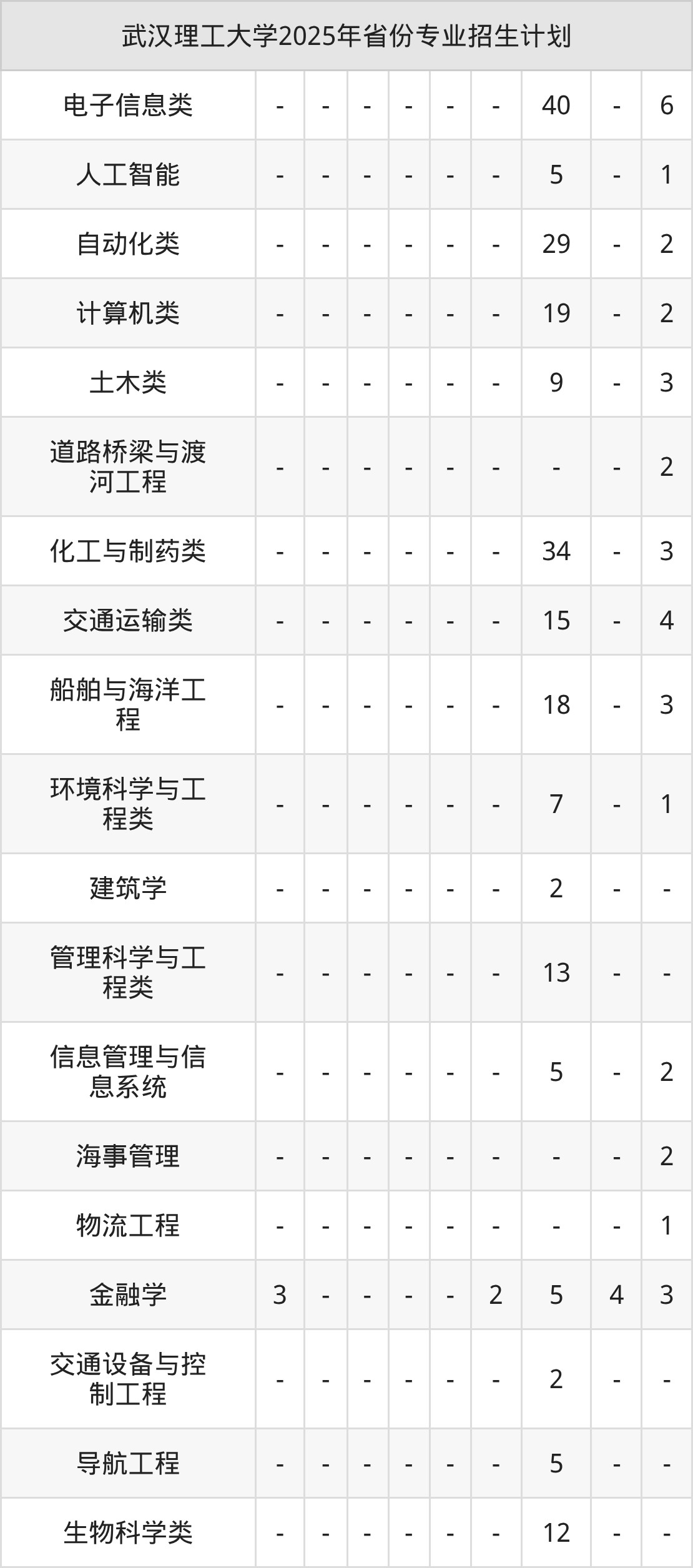 2026年武汉理工大学本科招生计划待公布,下面附上2025年数据,暂供参考: