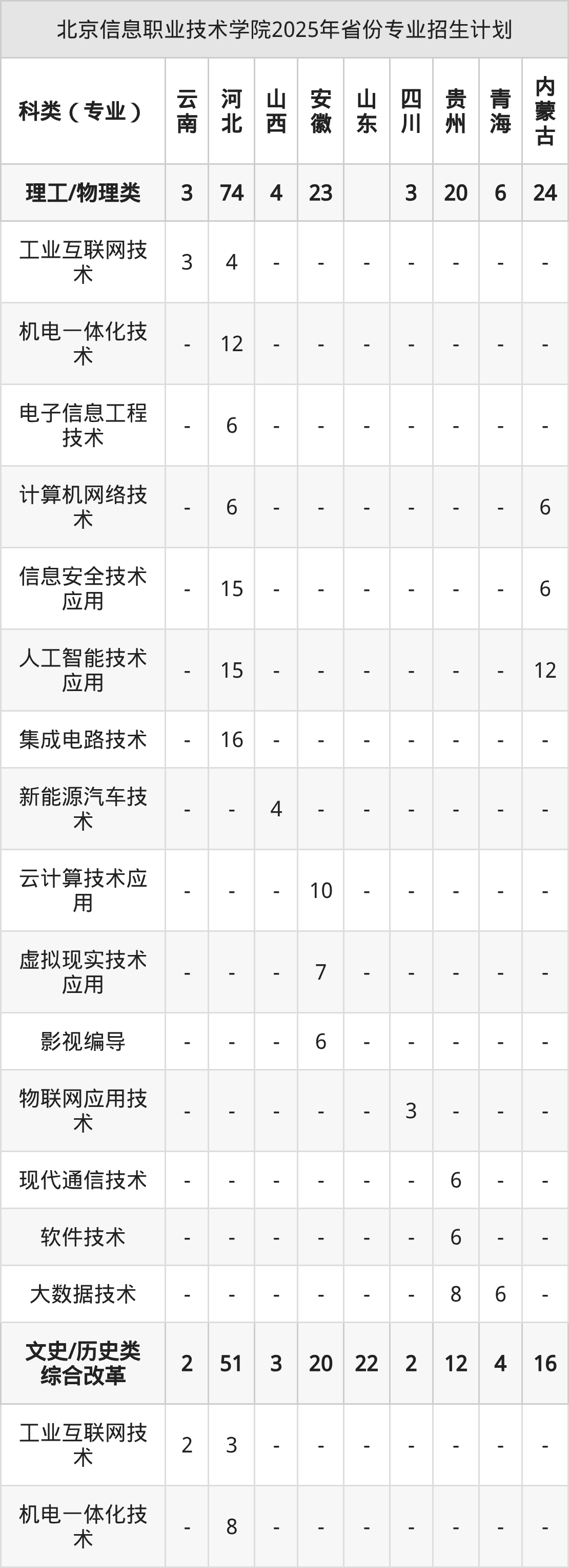 2026年北京信息职业技术学院专科招生计划待公布,下面附上2025年数据,暂供参考: