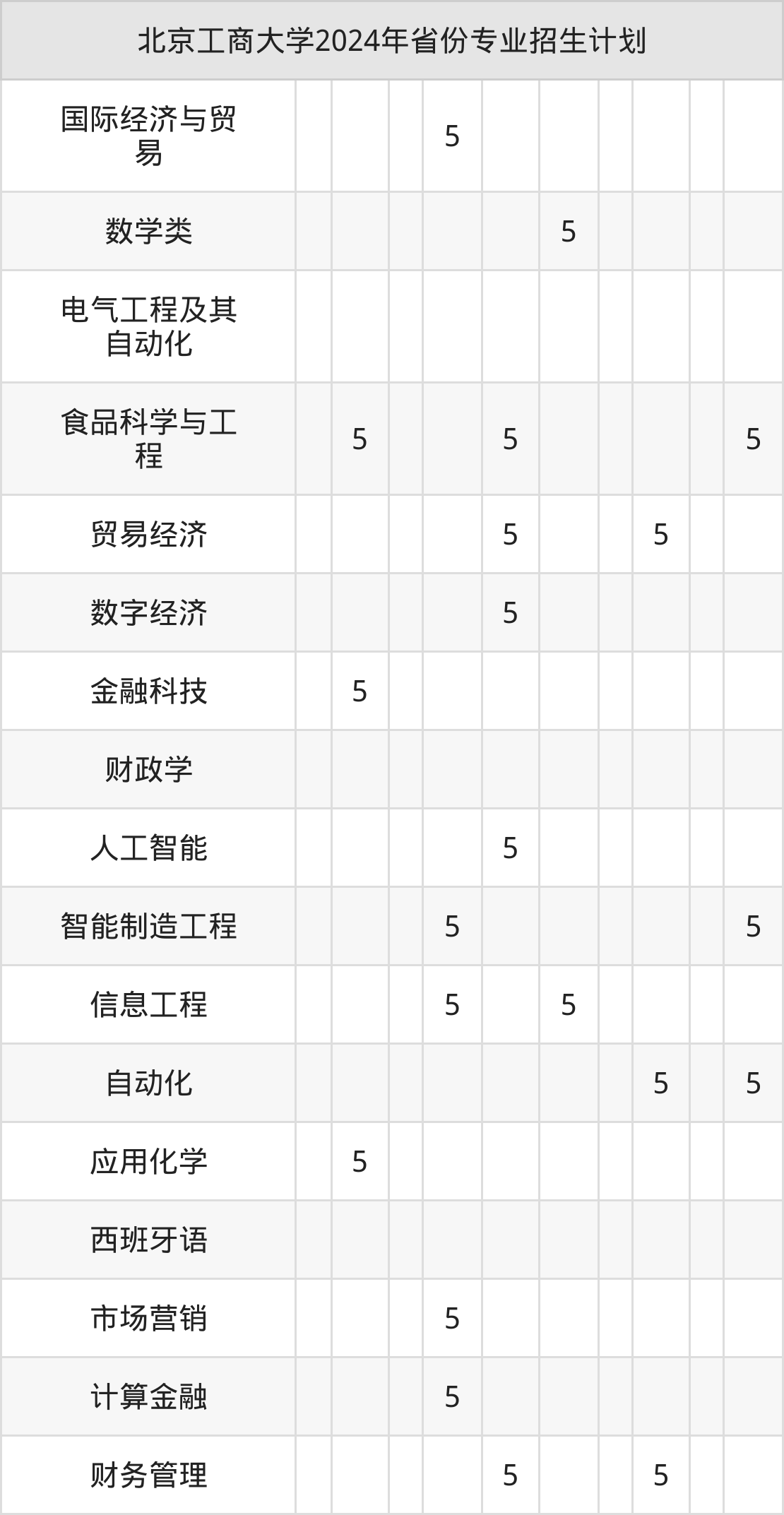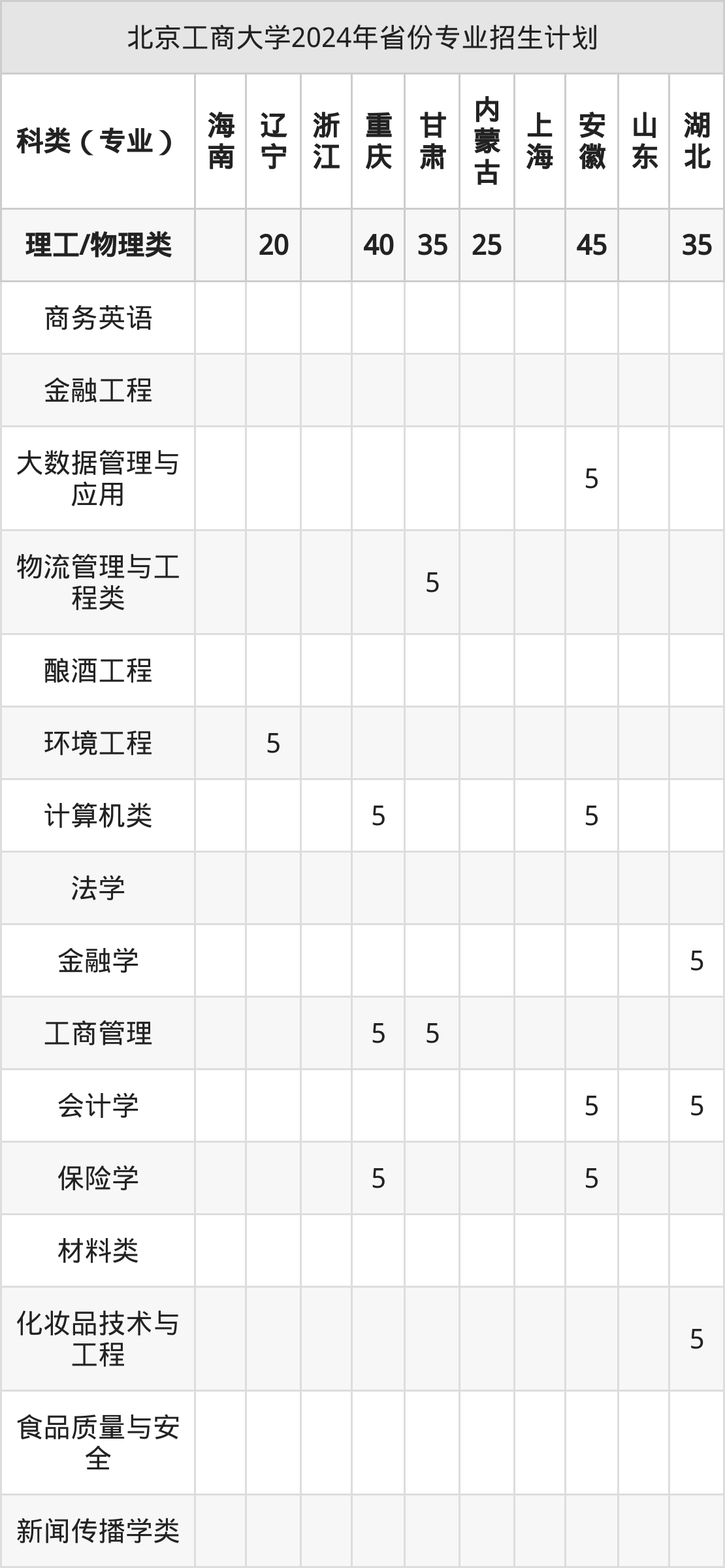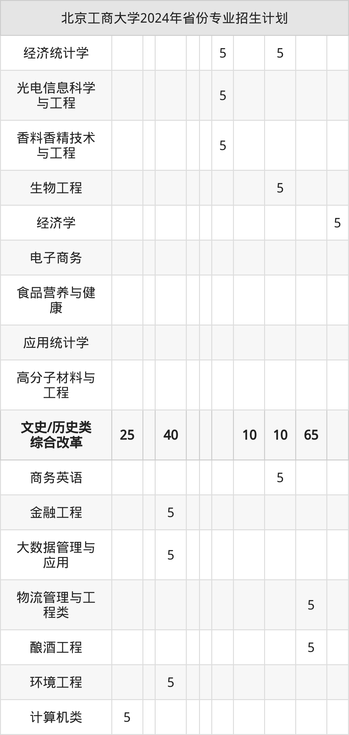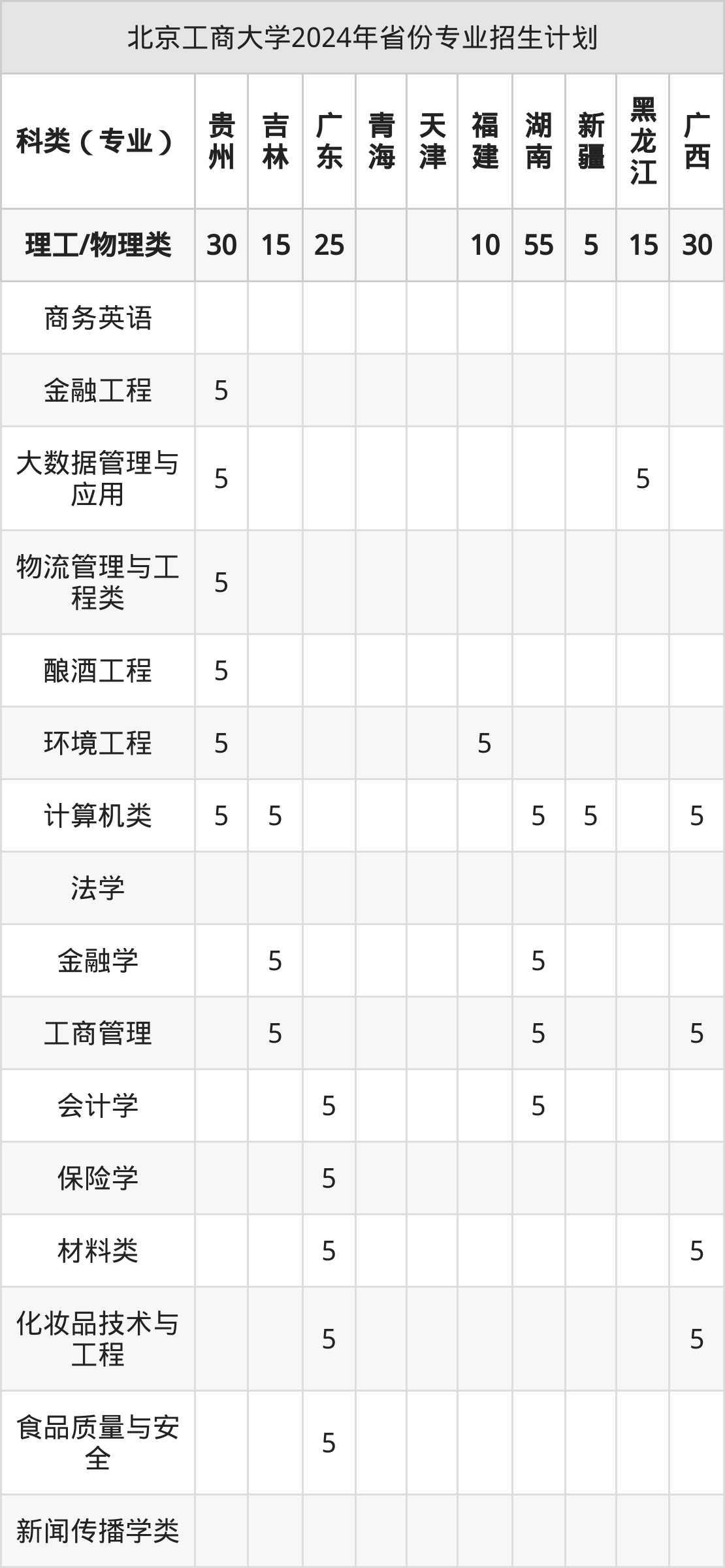 2025年北京工商大学本科招生计划待公布,下面附上2024年数据,暂供参考: