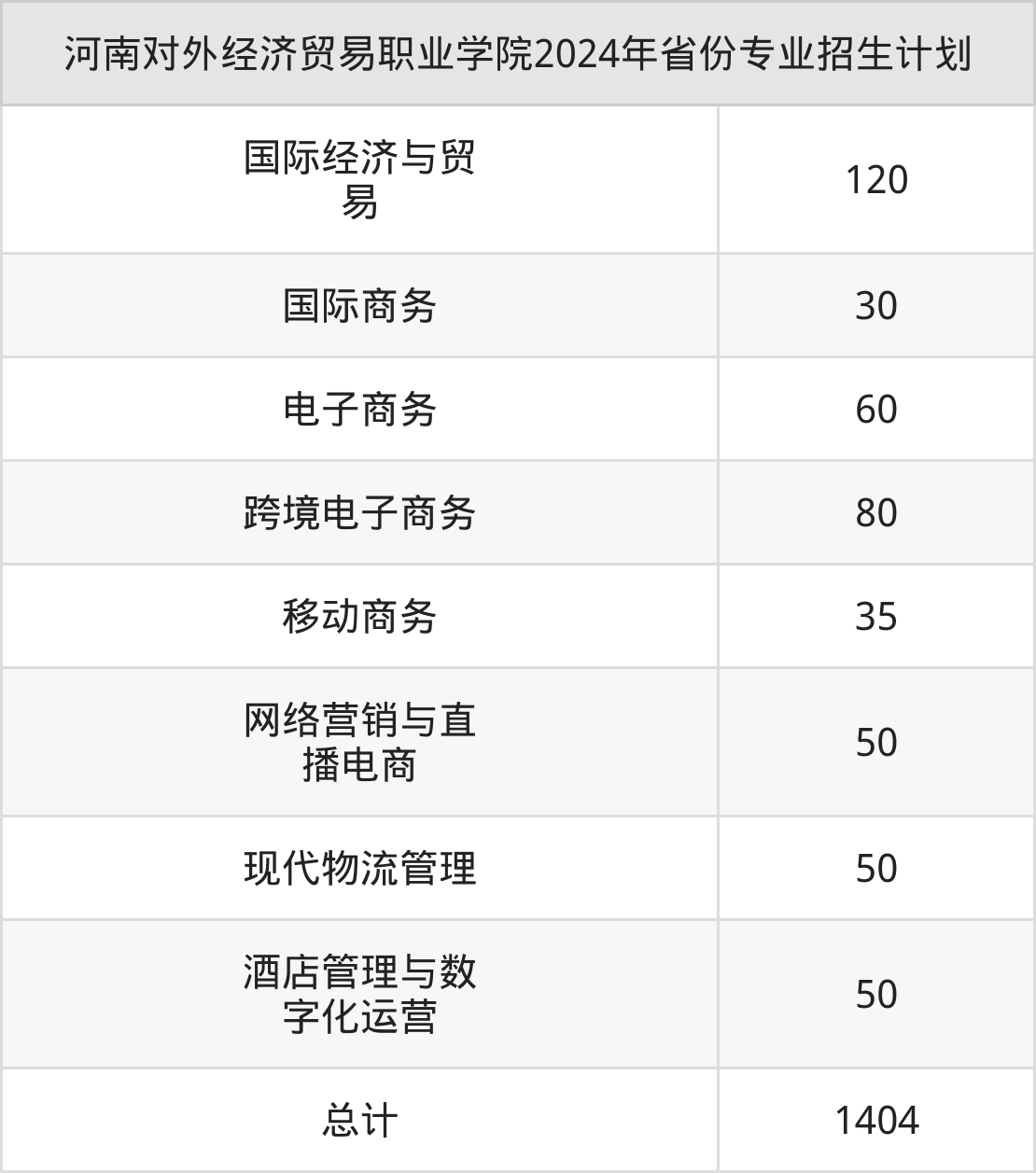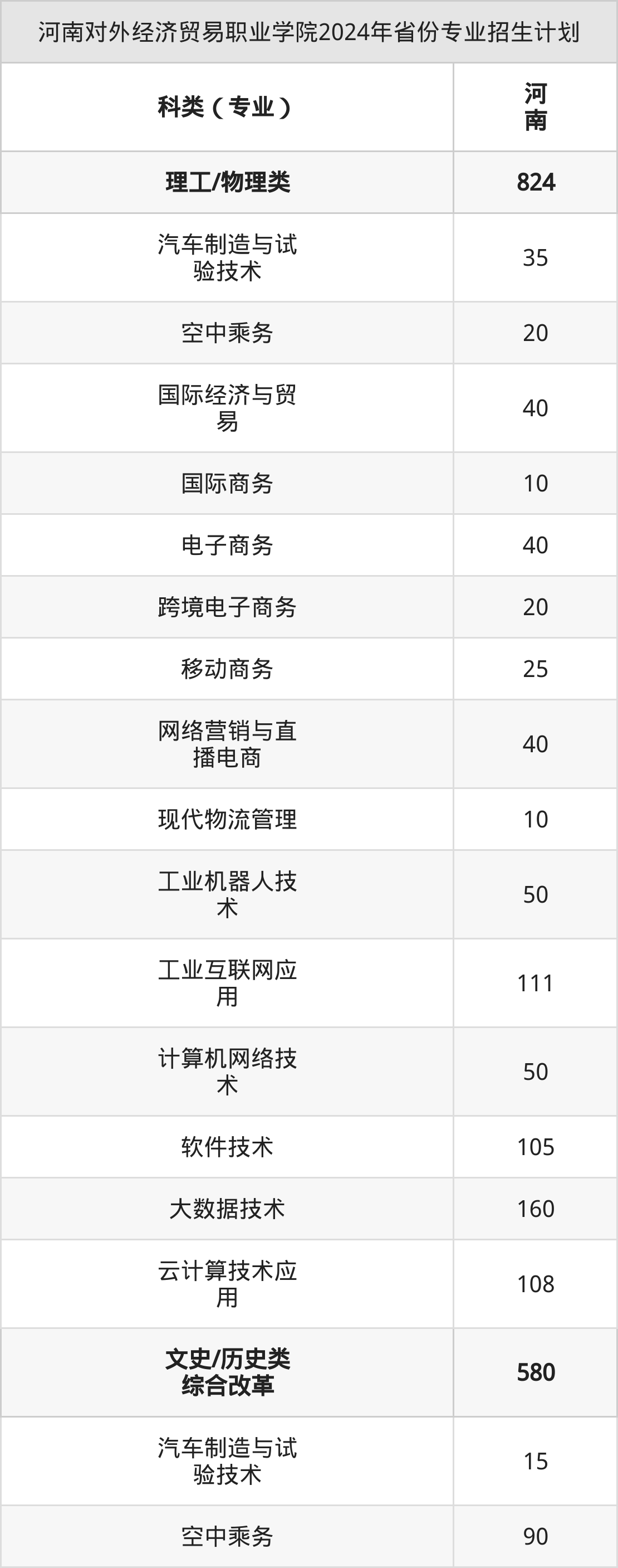 2025年河南对外经济贸易职业学院专科招生计划待公布,下面附上2024年数据,暂供参考: