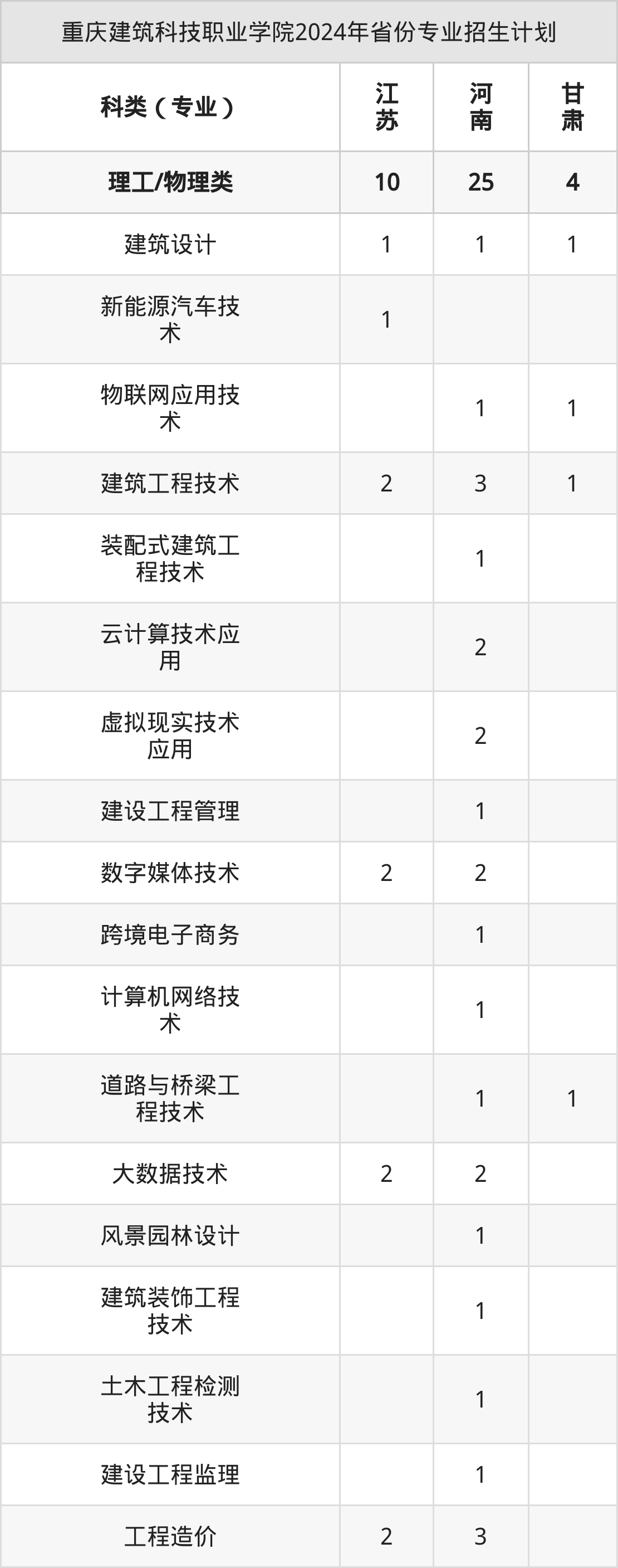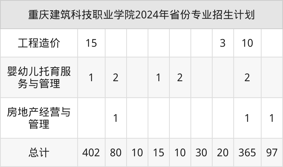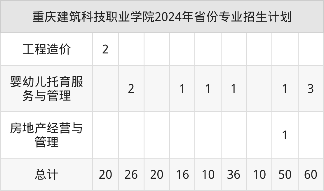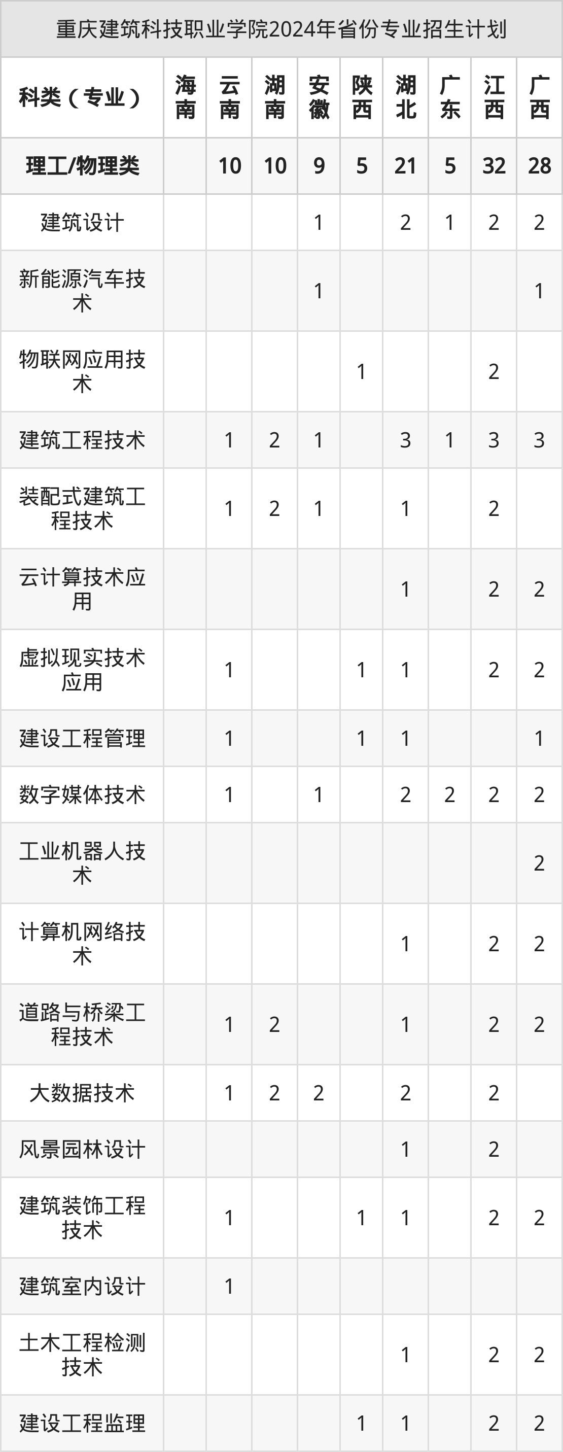 2025年重庆建筑科技职业学院专科招生计划待公布,下面附上2024年数据,暂供参考: