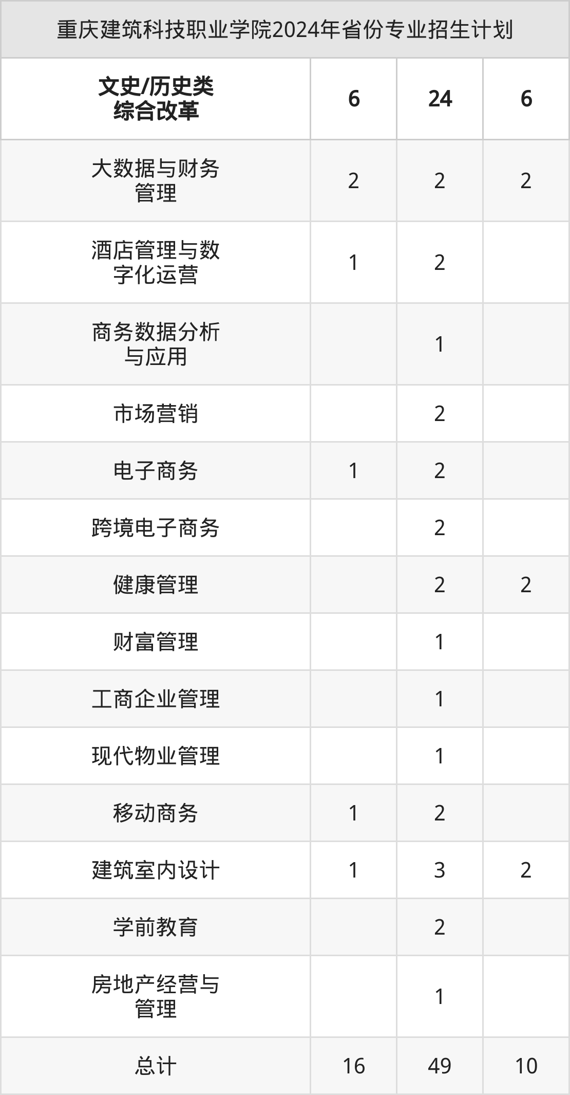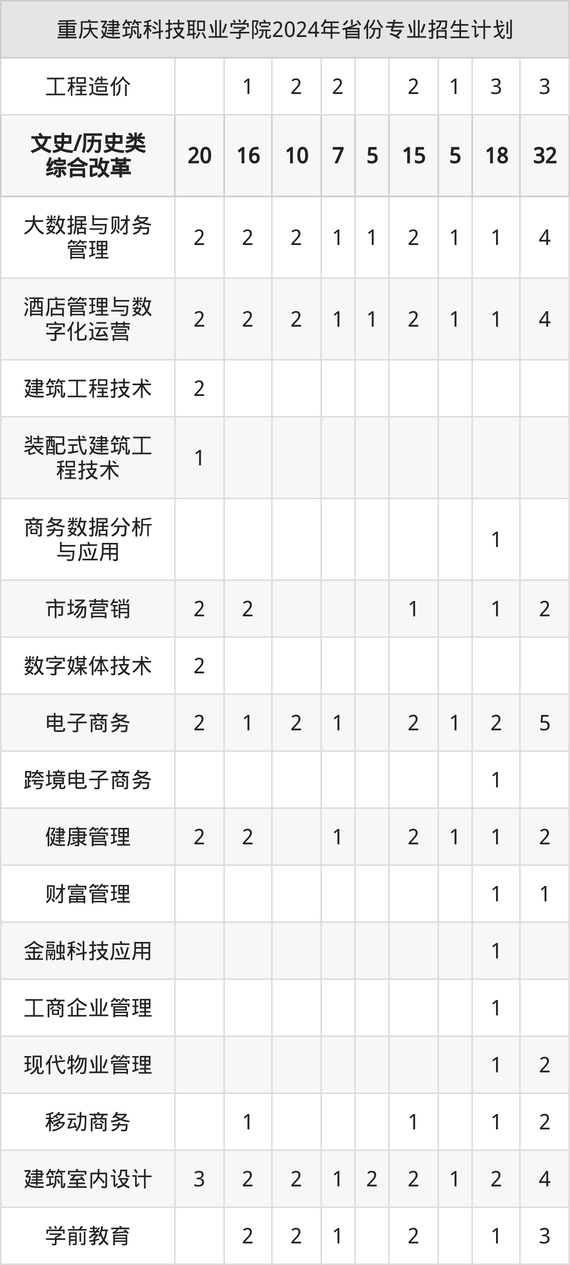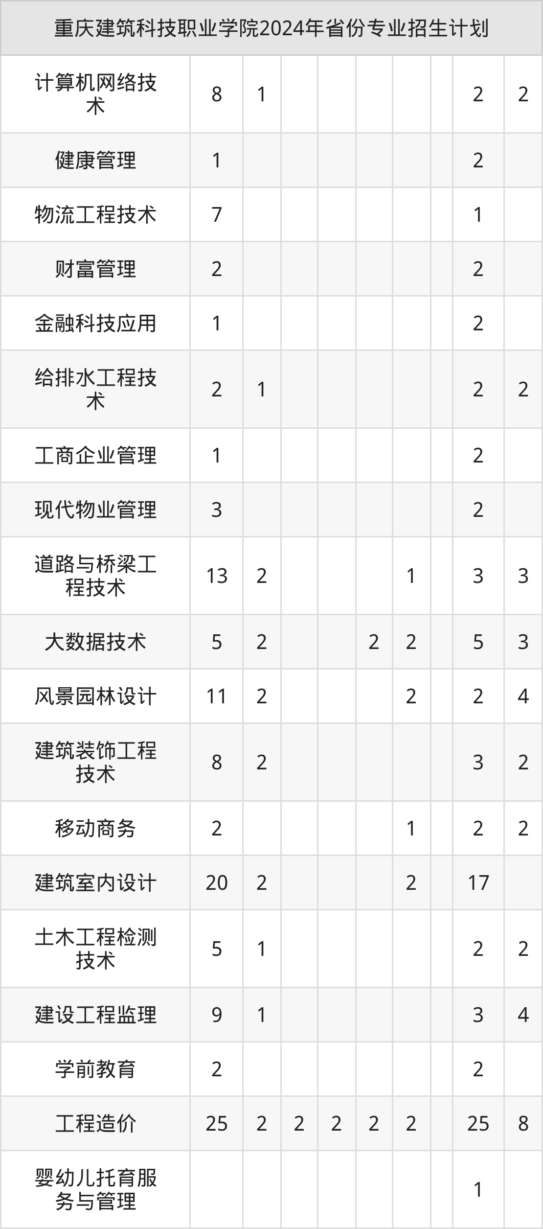 2025年重庆建筑科技职业学院专科招生计划待公布,下面附上2024年数据,暂供参考: