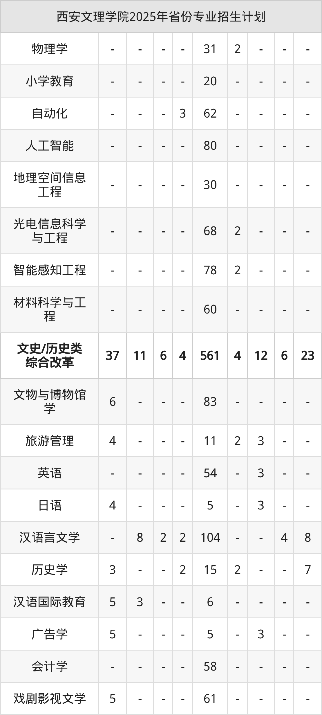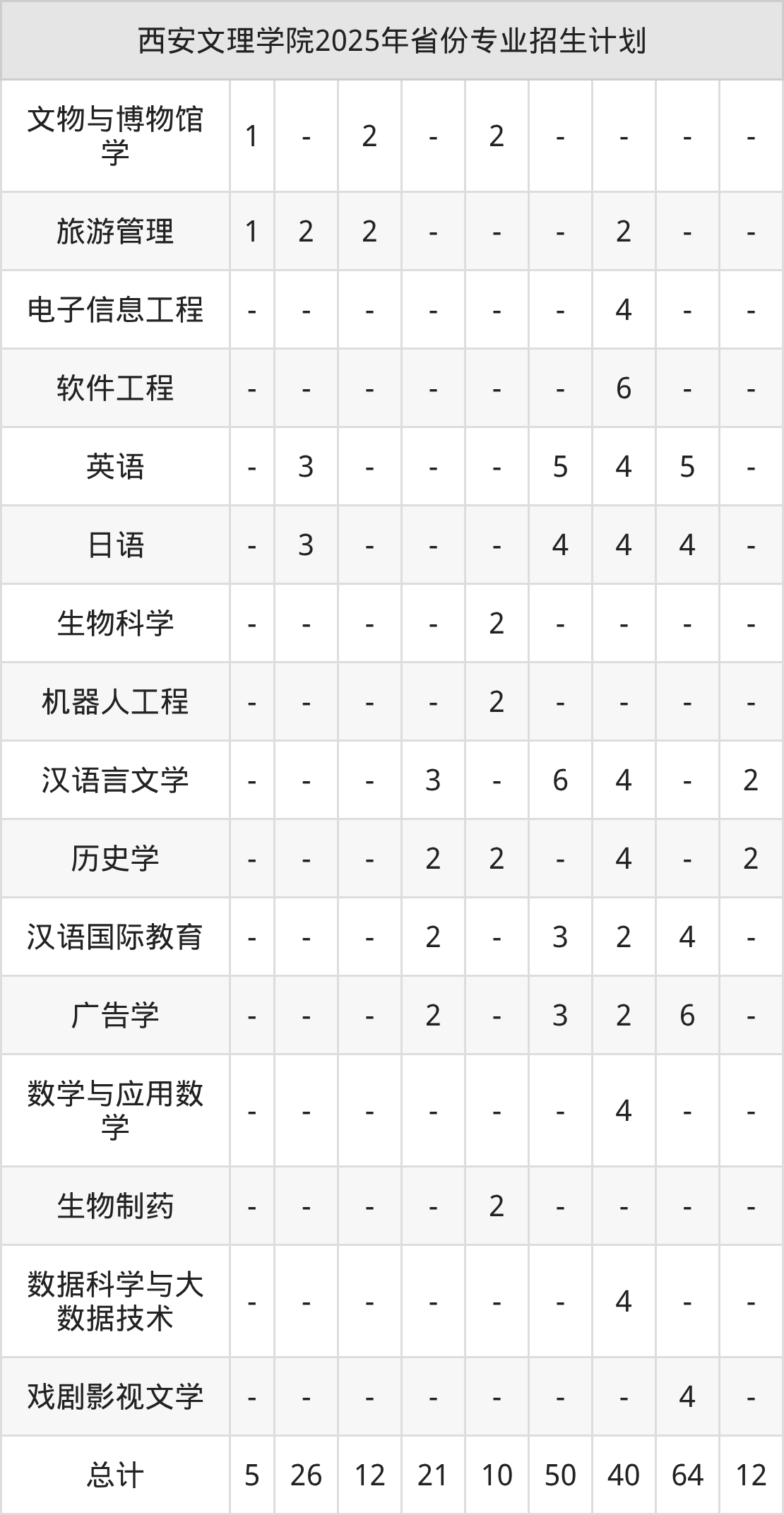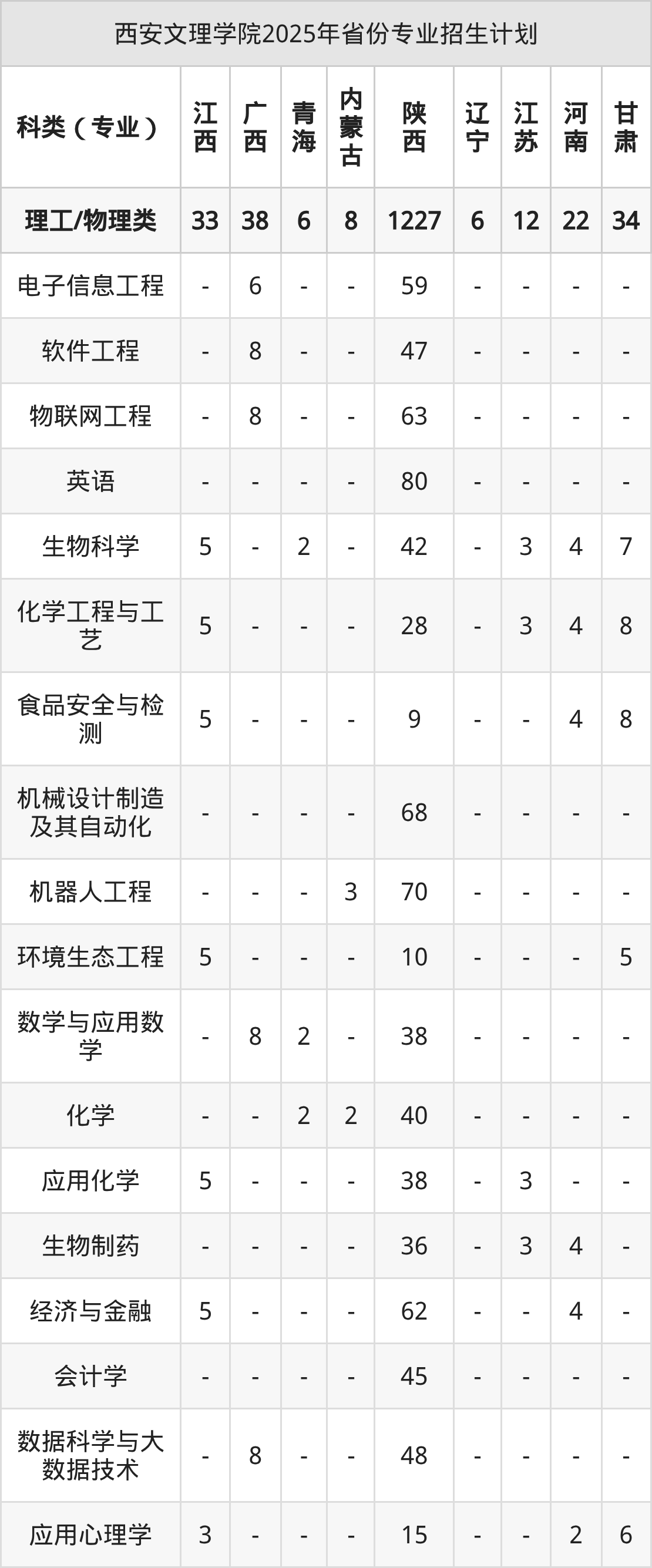 2026年西安文理学院本科招生计划待公布,下面附上2025年数据,暂供参考: