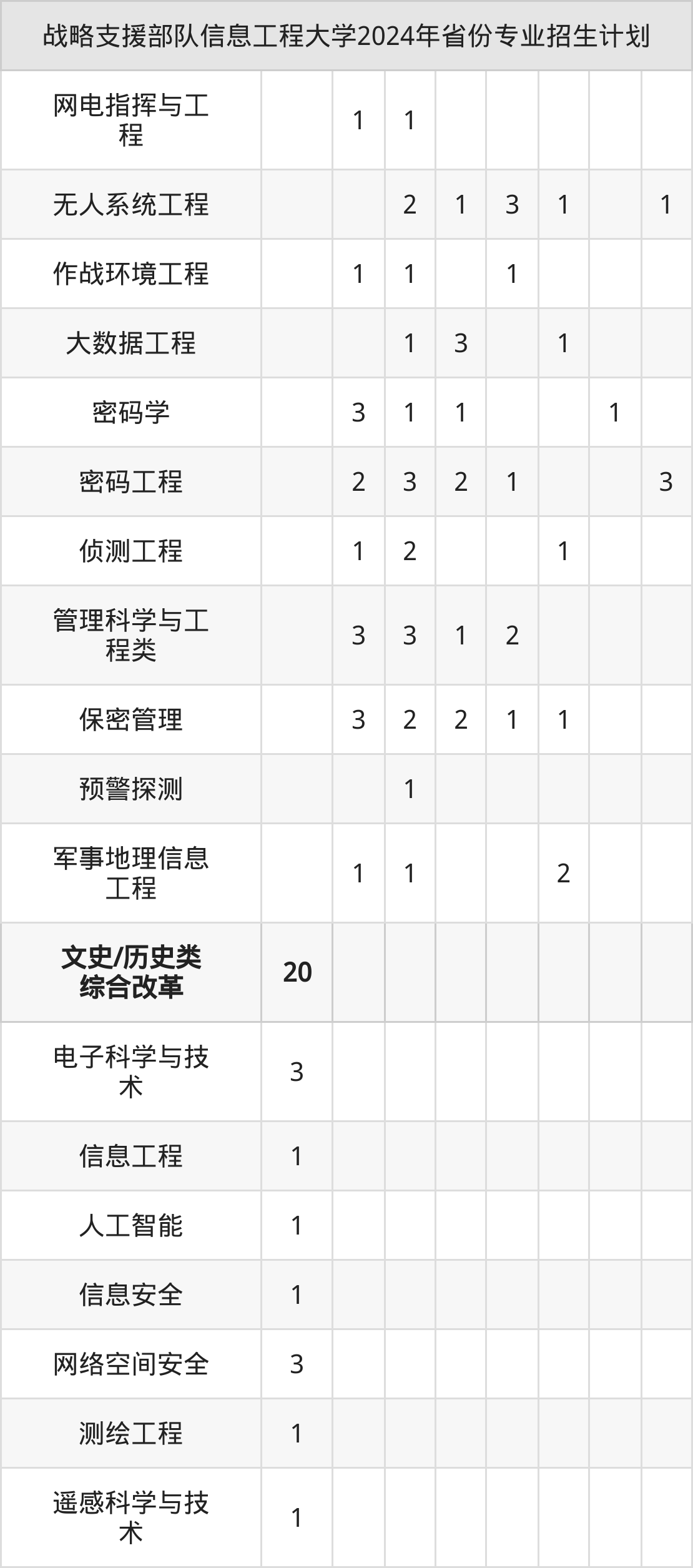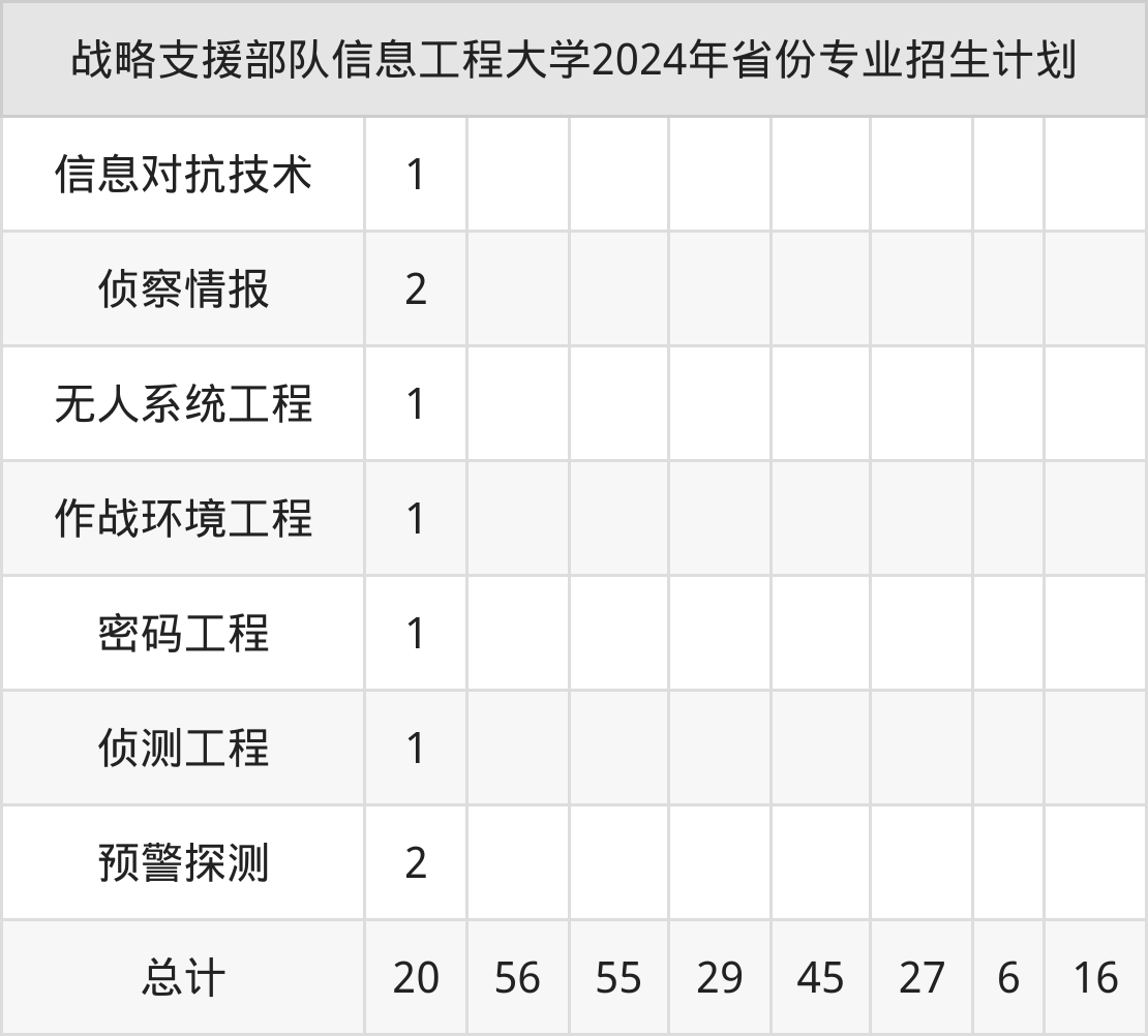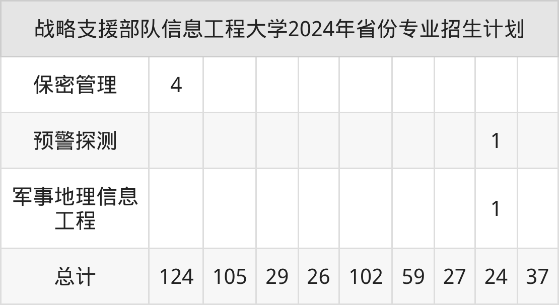 2025年战略支援部队信息工程大学本科招生计划待公布,下面附上2024年数据,暂供参考: