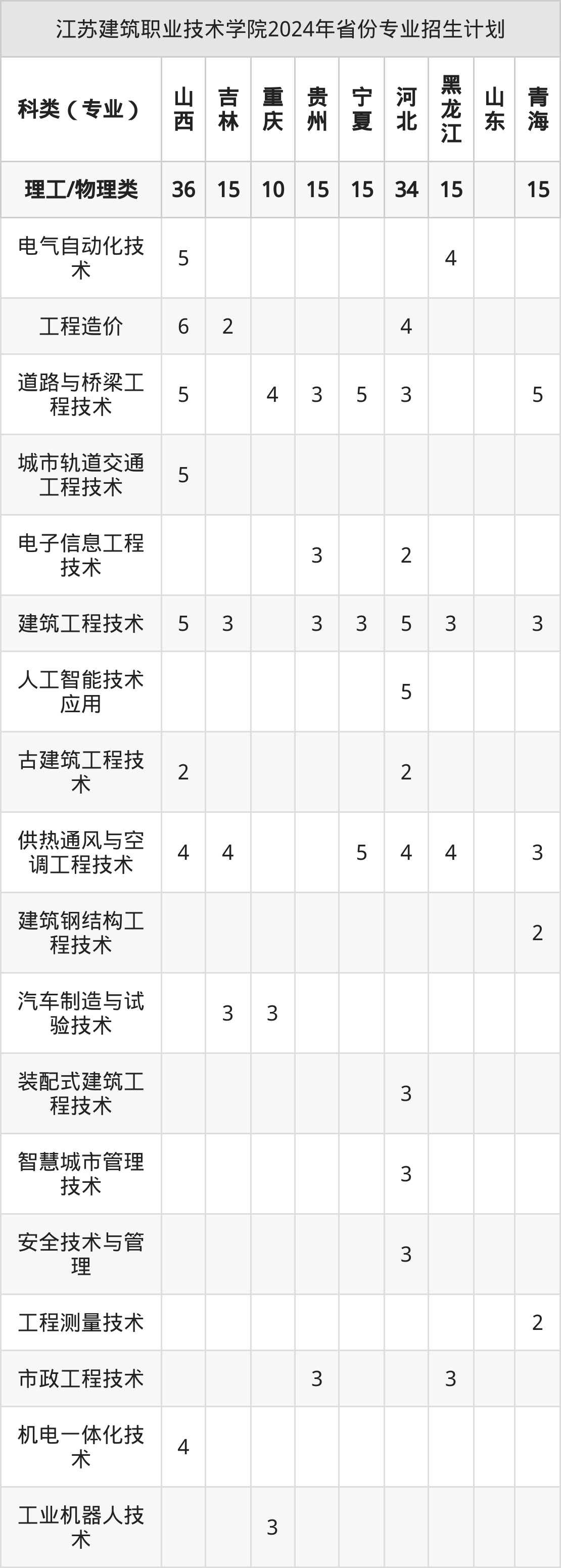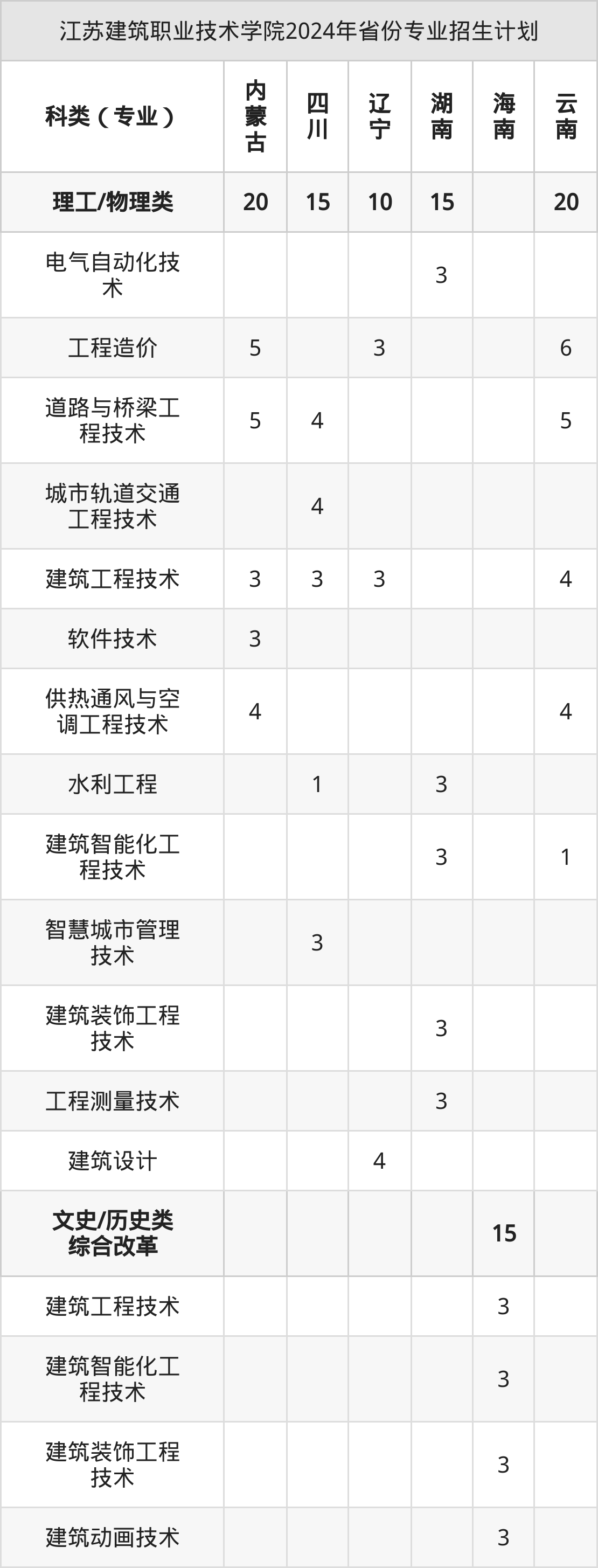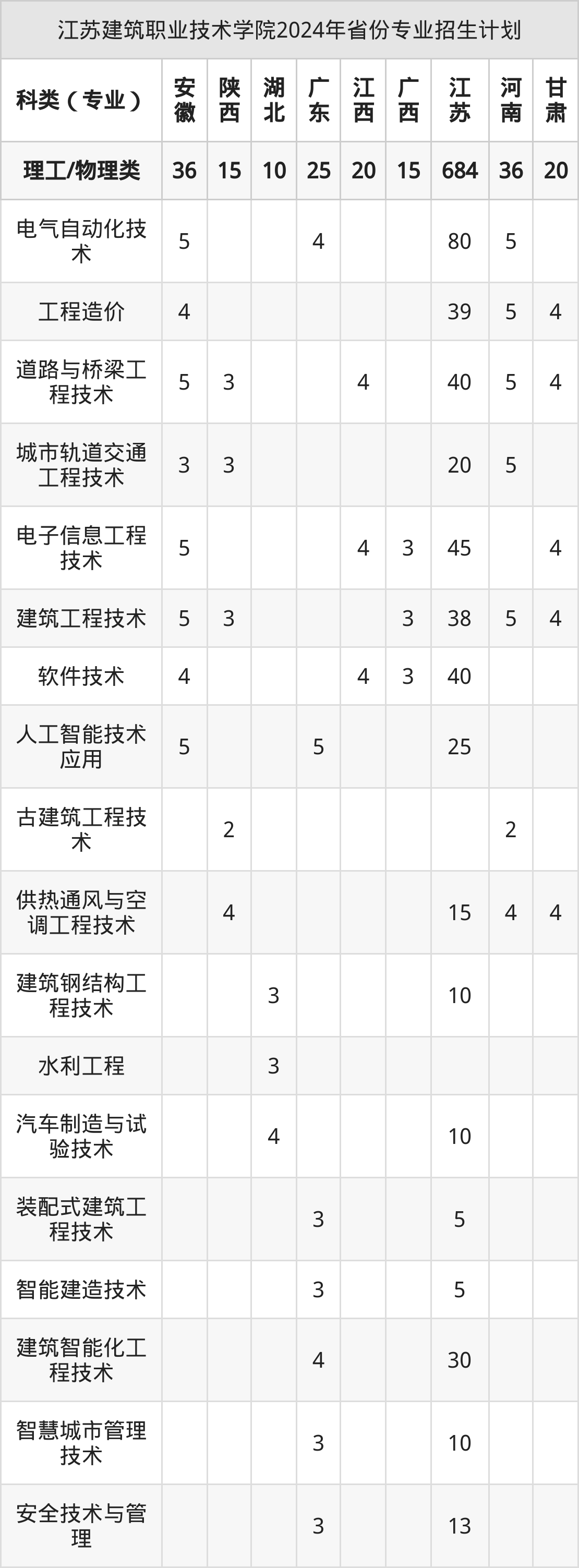 2025年江苏建筑职业技术学院专科招生计划待公布,下面附上2024年数据,暂供参考: