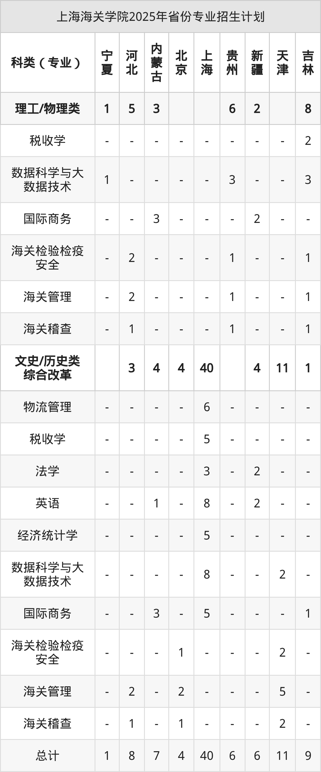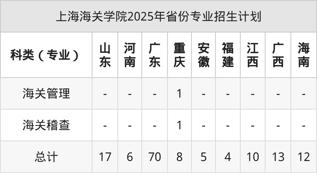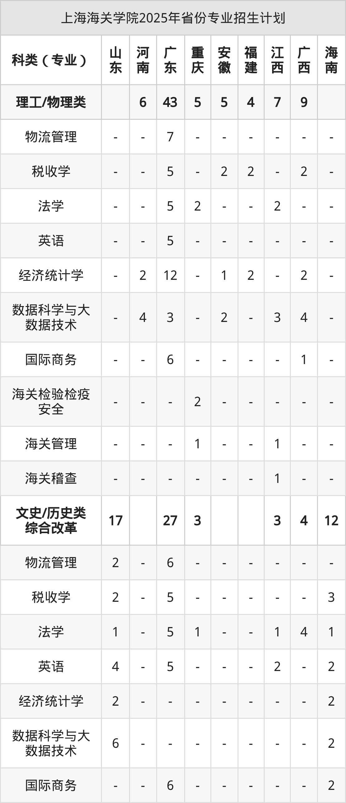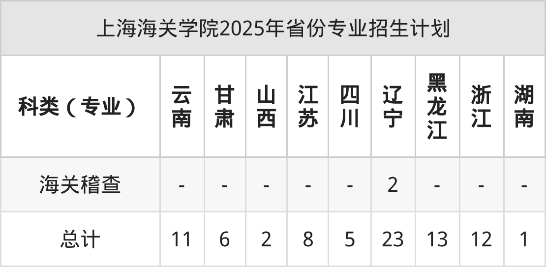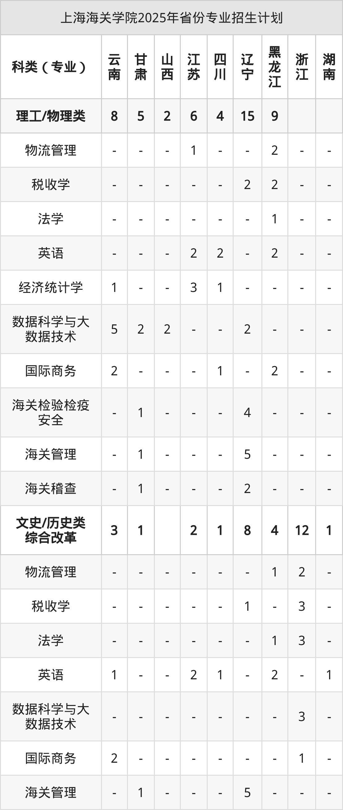 2026年上海海关学院本科招生计划待公布,下面附上2025年数据,暂供参考: