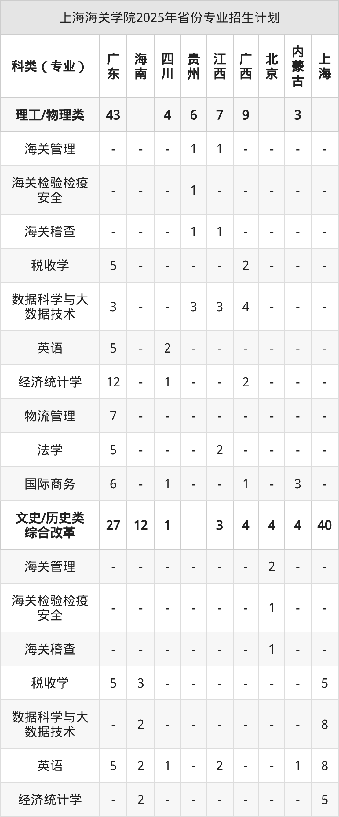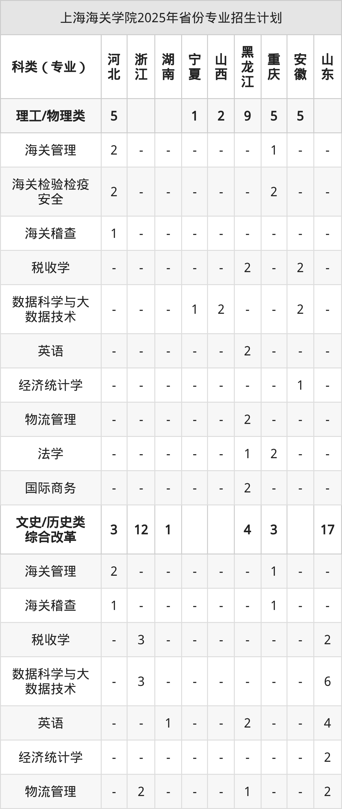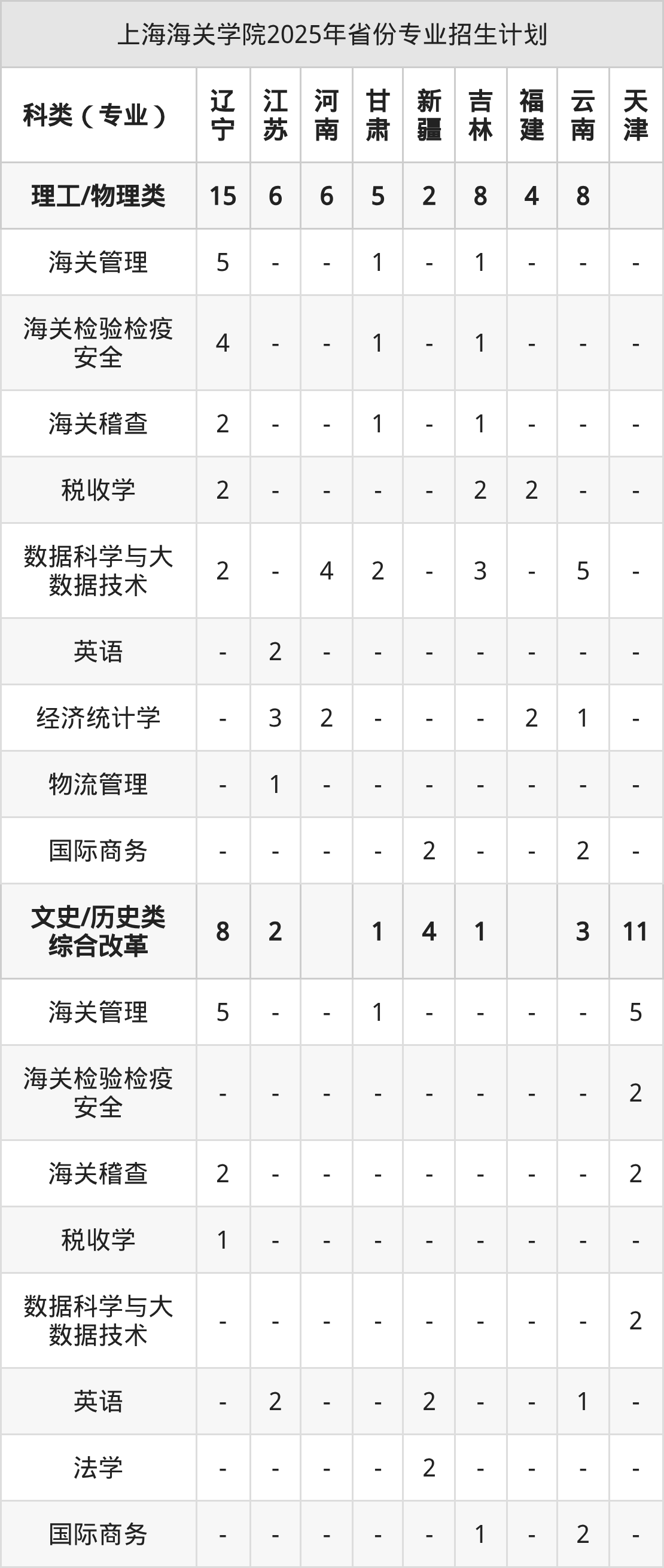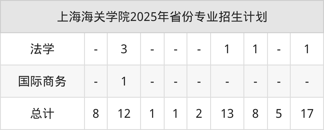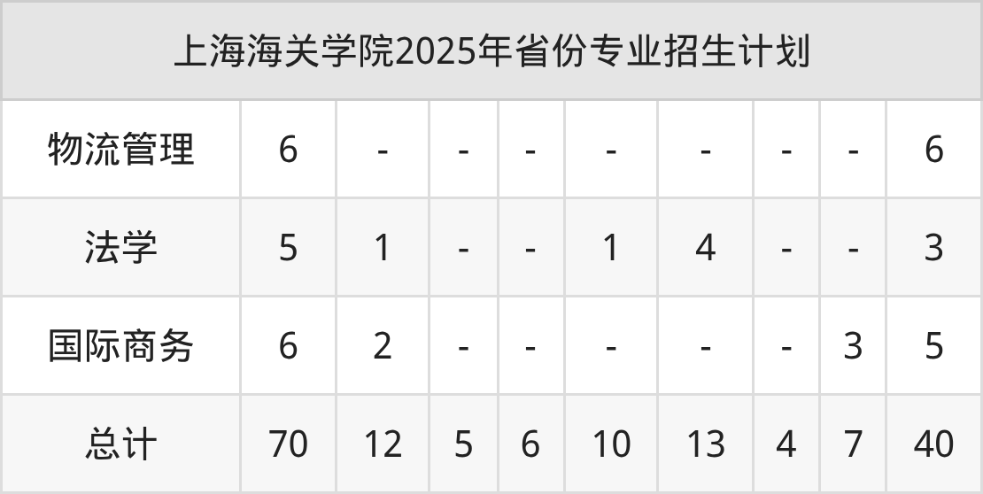 2026年上海海关学院本科招生计划待公布,下面附上2025年数据,暂供参考: