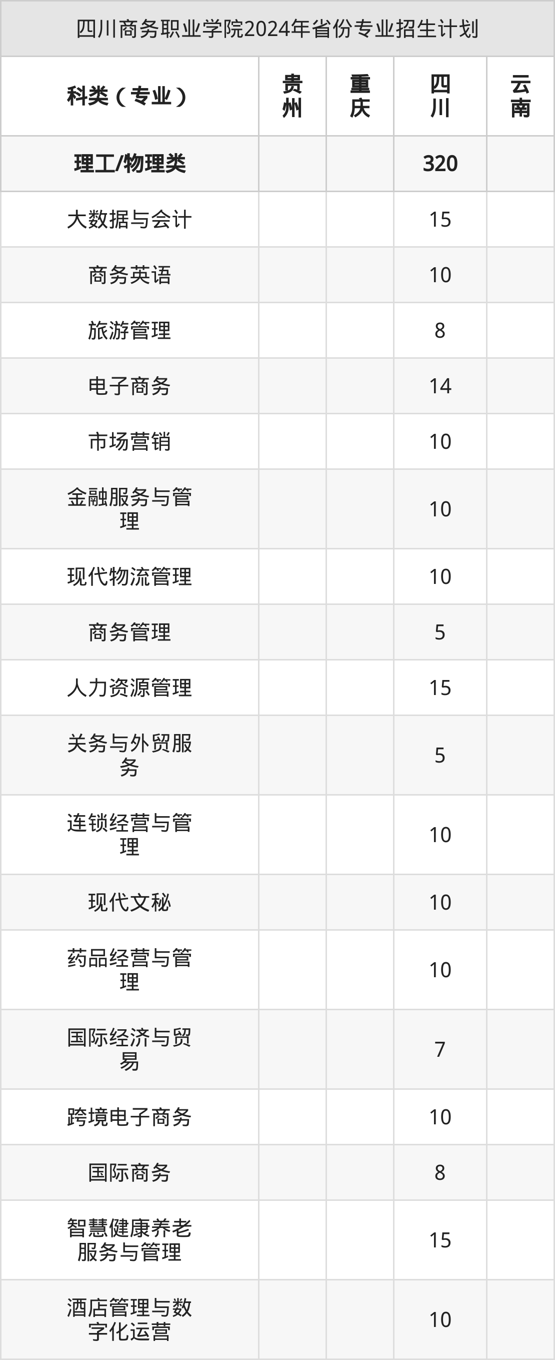 2025年四川商务职业学院专科招生计划待公布,下面附上2024年数据,暂供参考:
