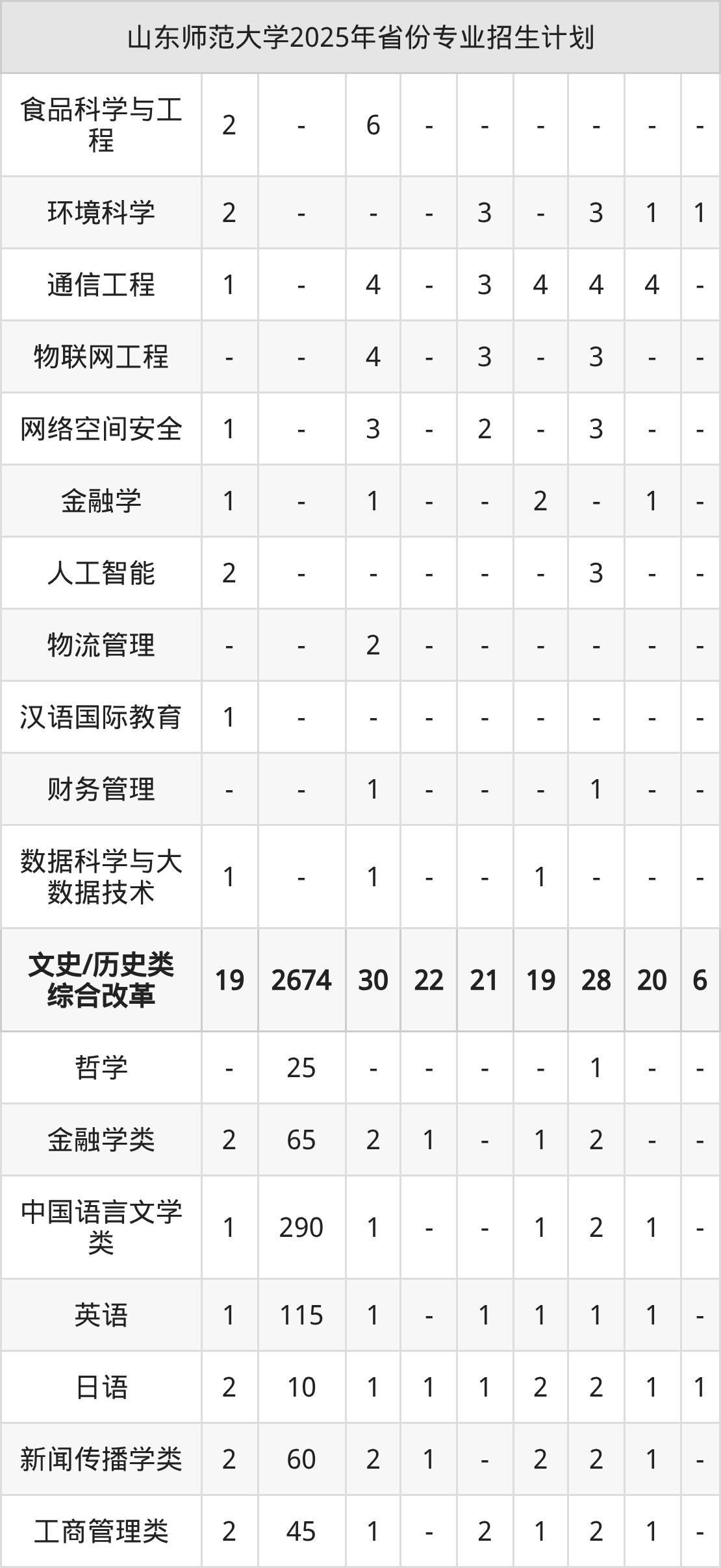 | 山东师范大学2025年本科最低分汇总 | ||||