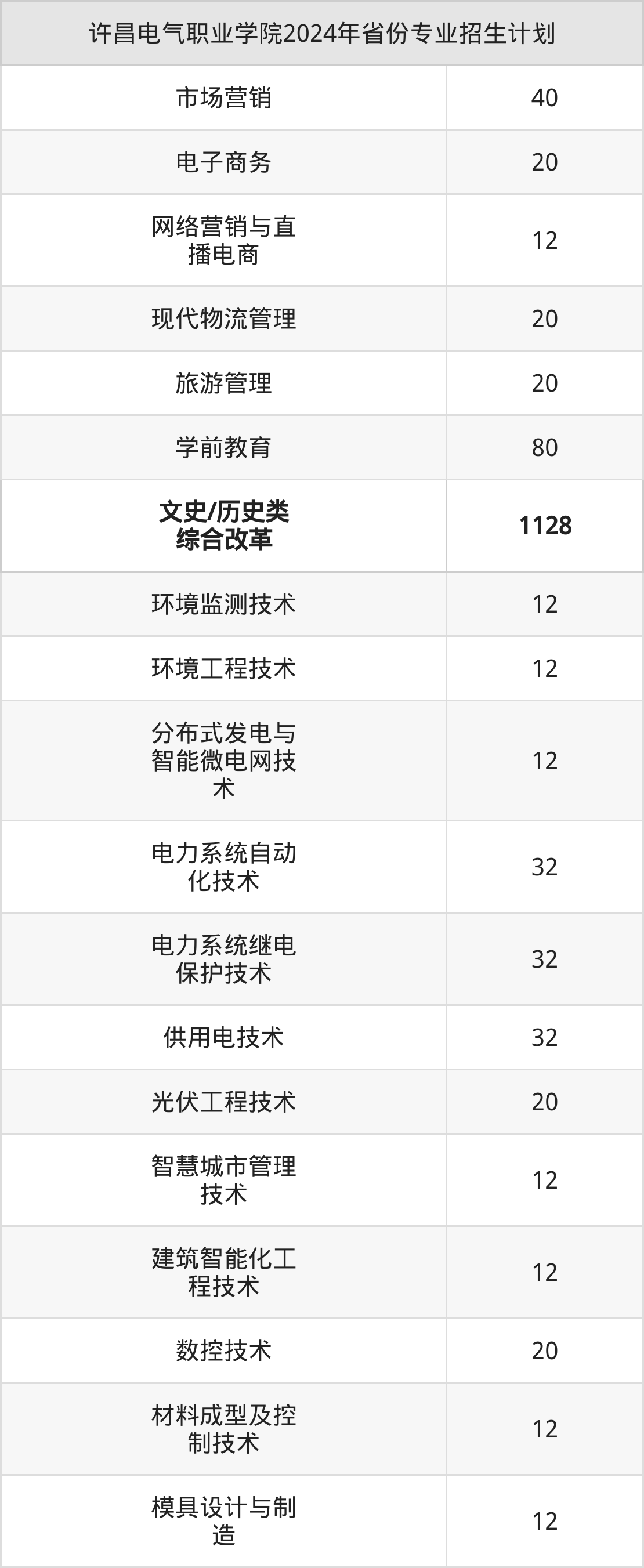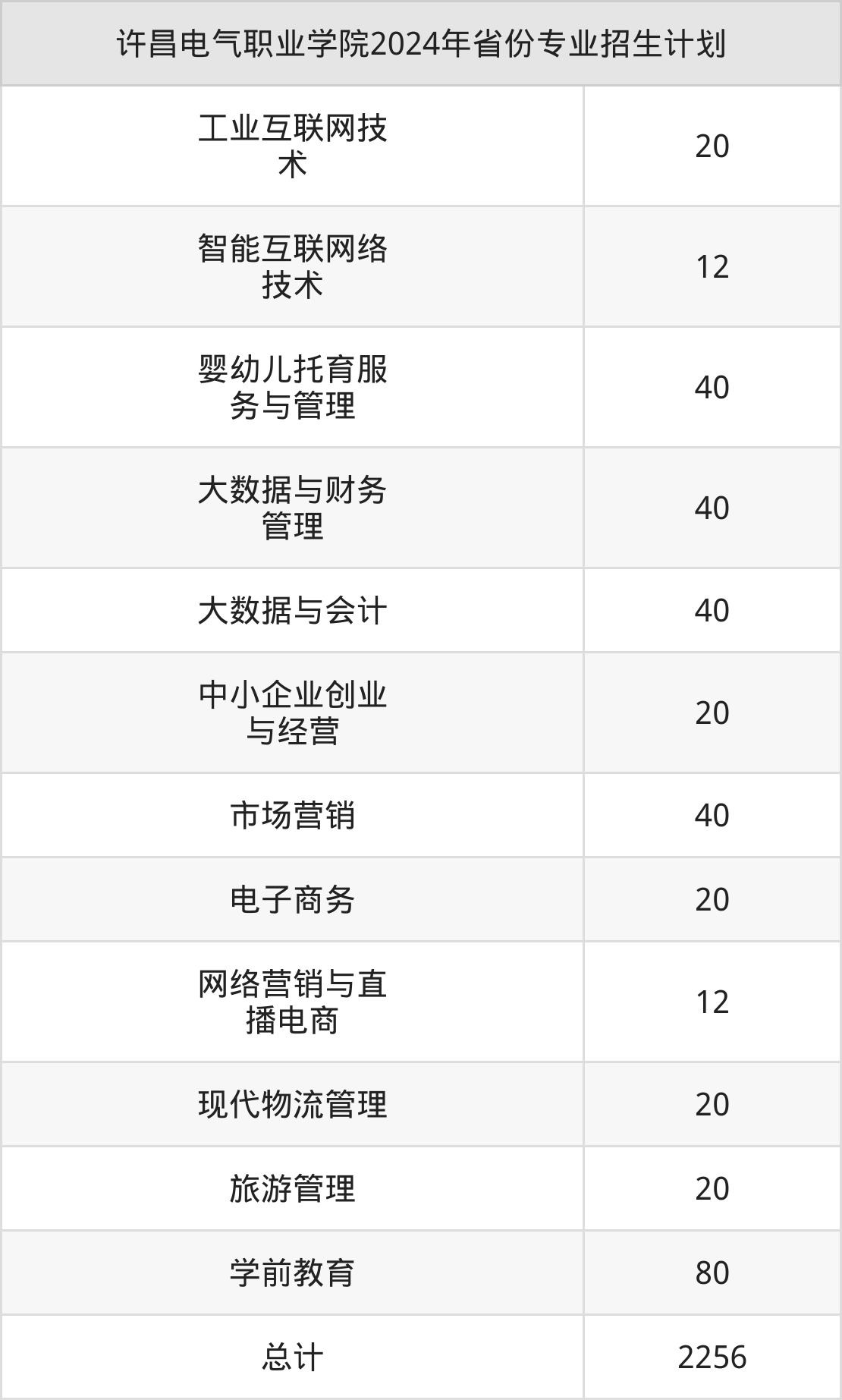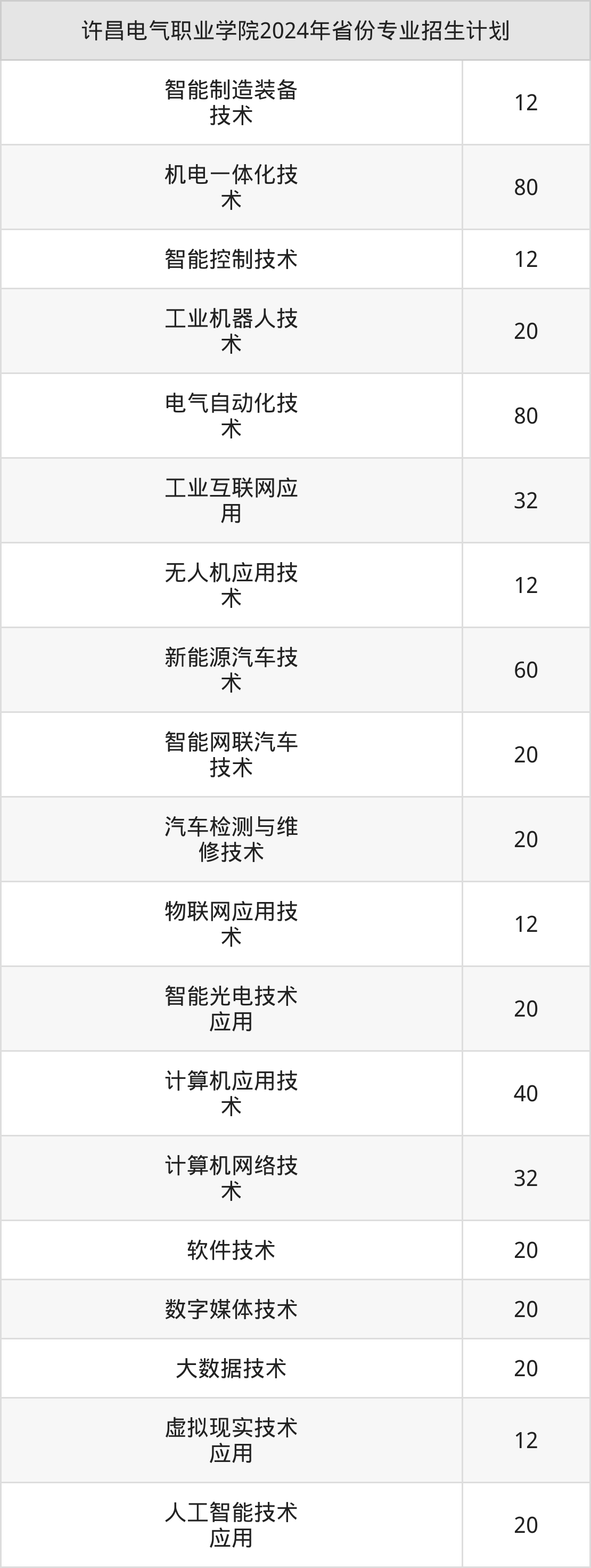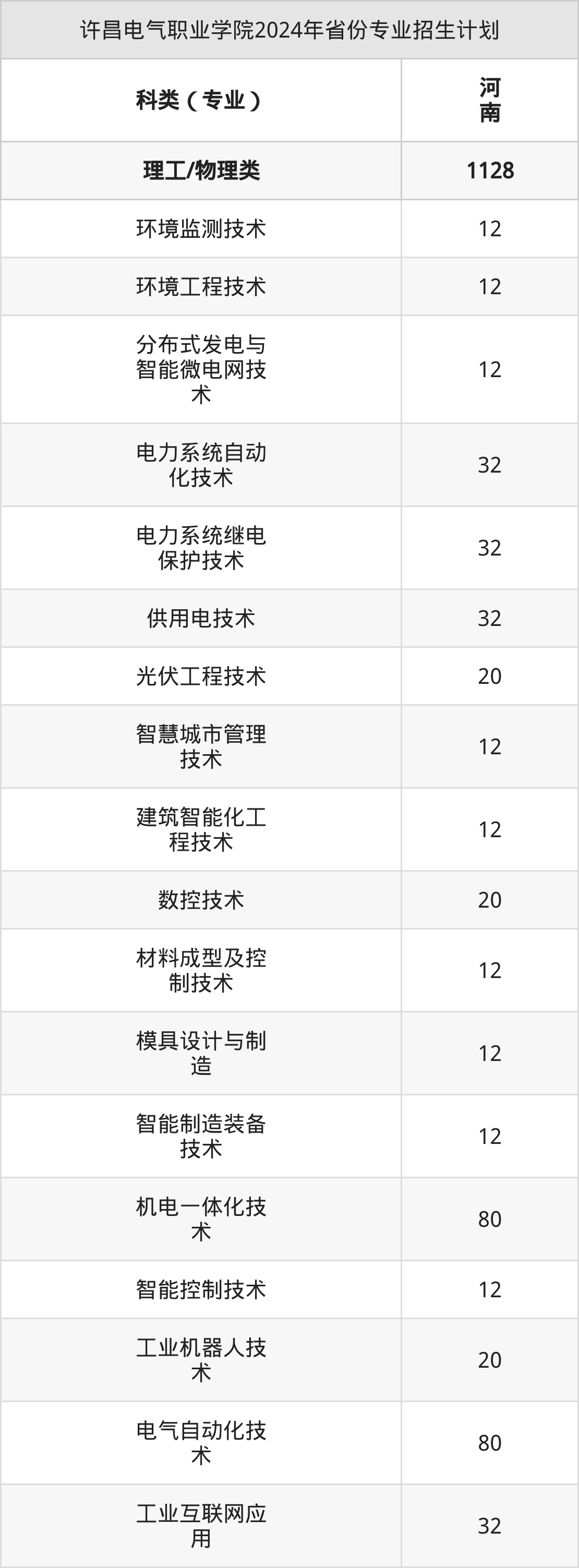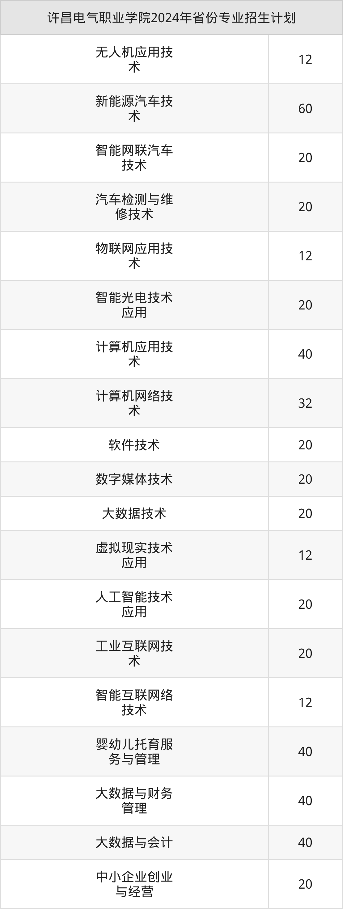 2025年许昌电气职业学院专科招生计划待公布,下面附上2024年数据,暂供参考: