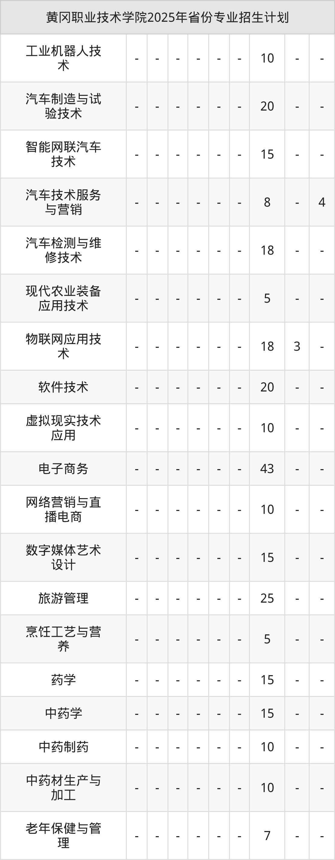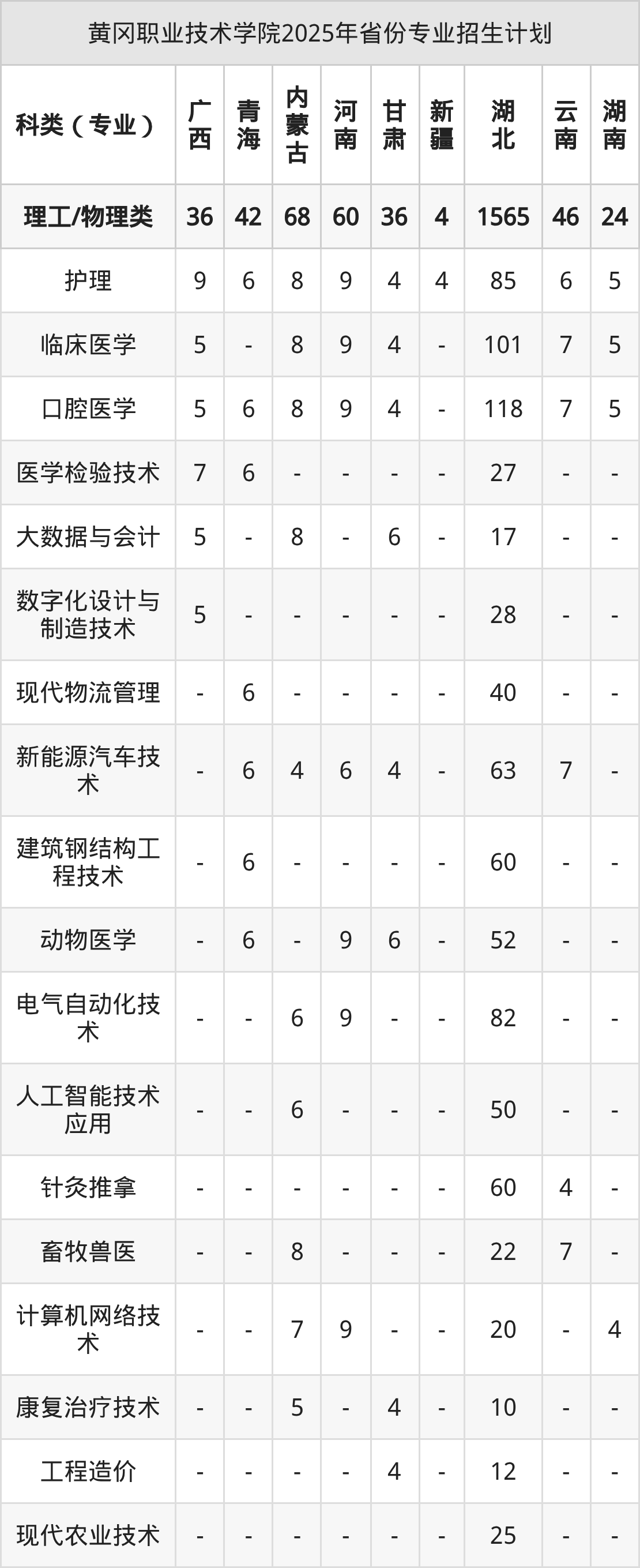 2026年黄冈职业技术学院专科招生计划待公布,下面附上2025年数据,暂供参考: