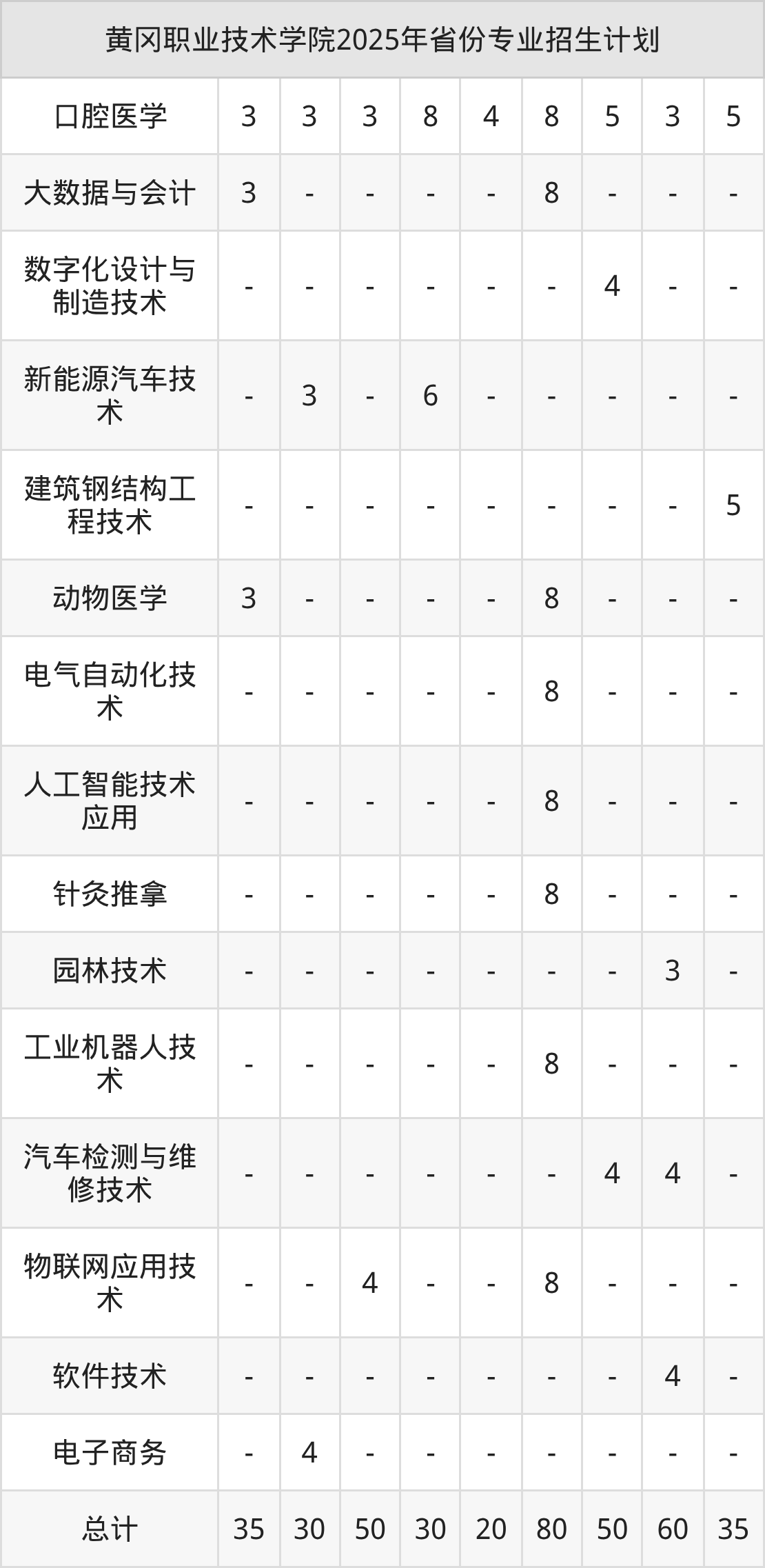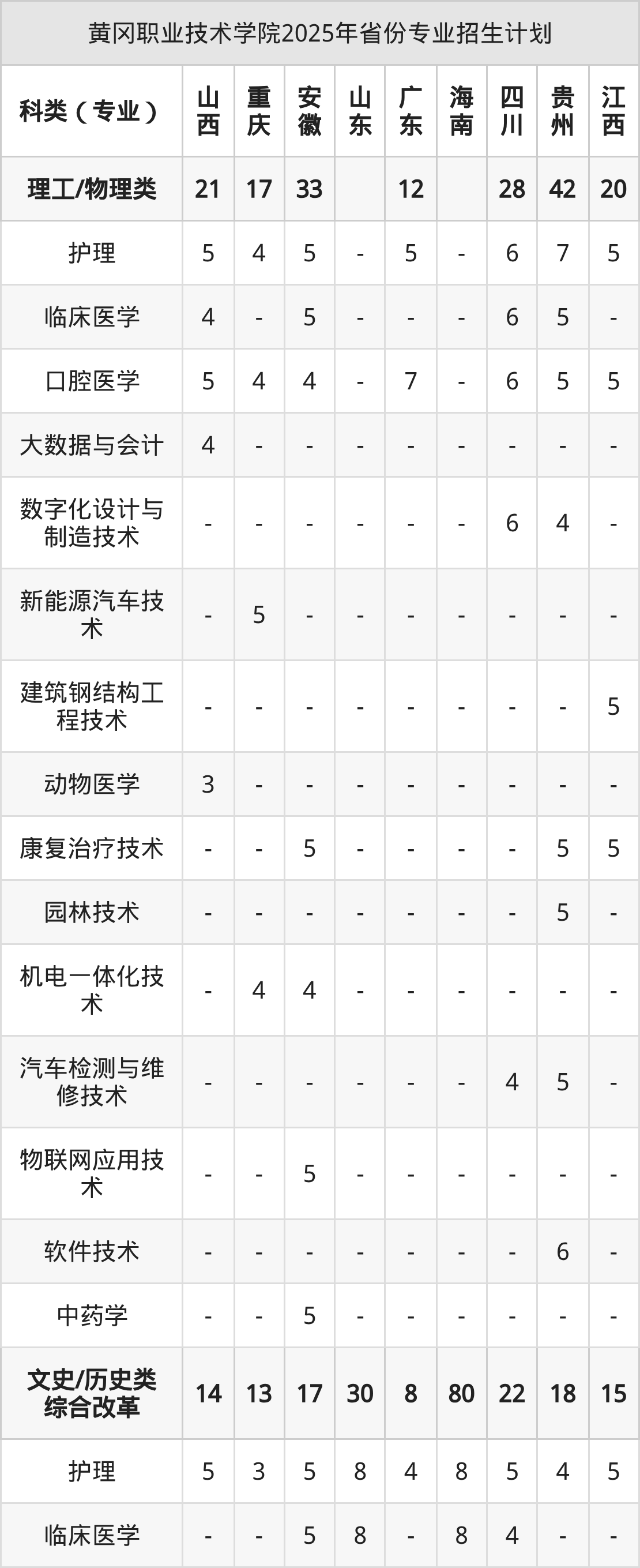 而各省份的招生计划数为江西35人,湖北2330人,湖南40人,山东30人,海南80人等。