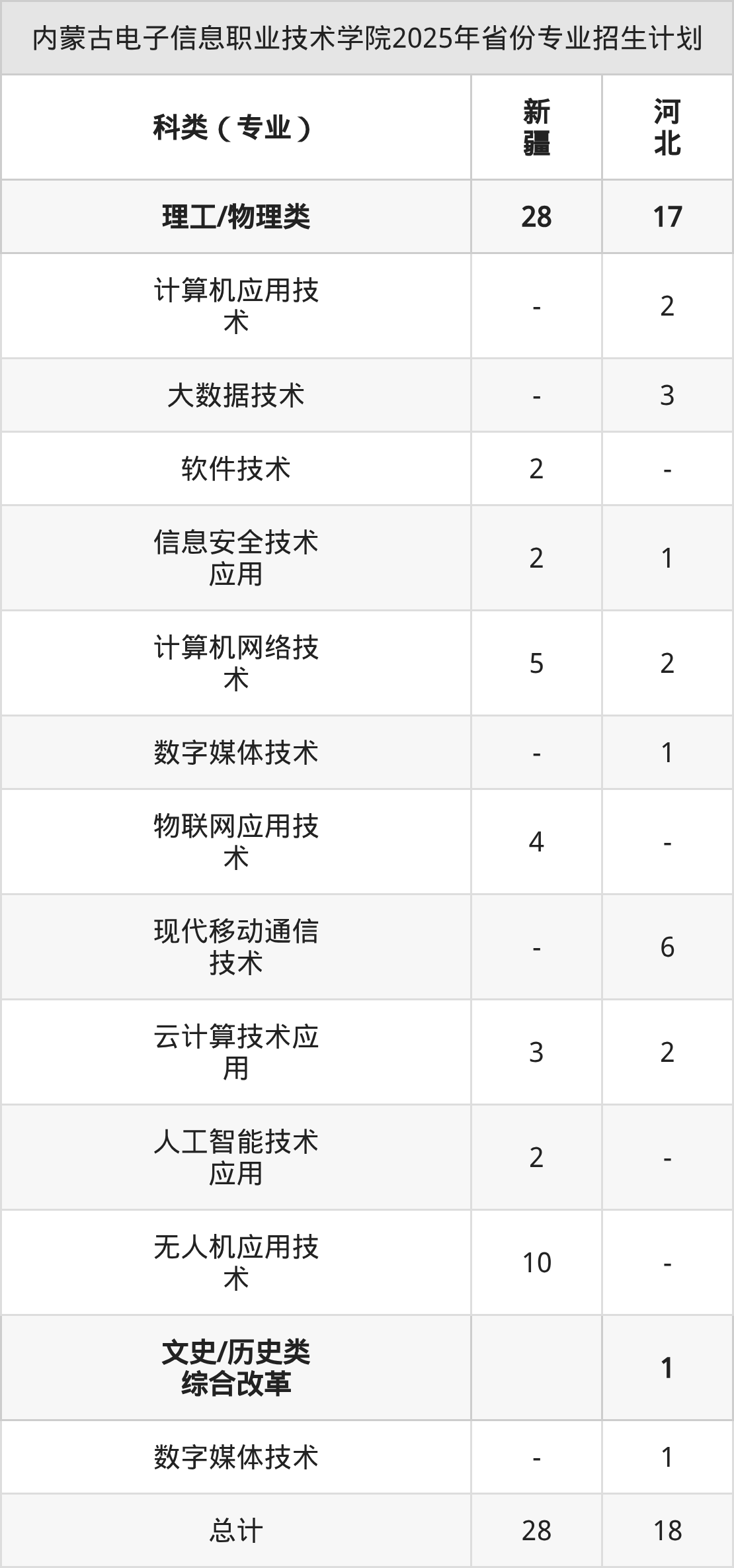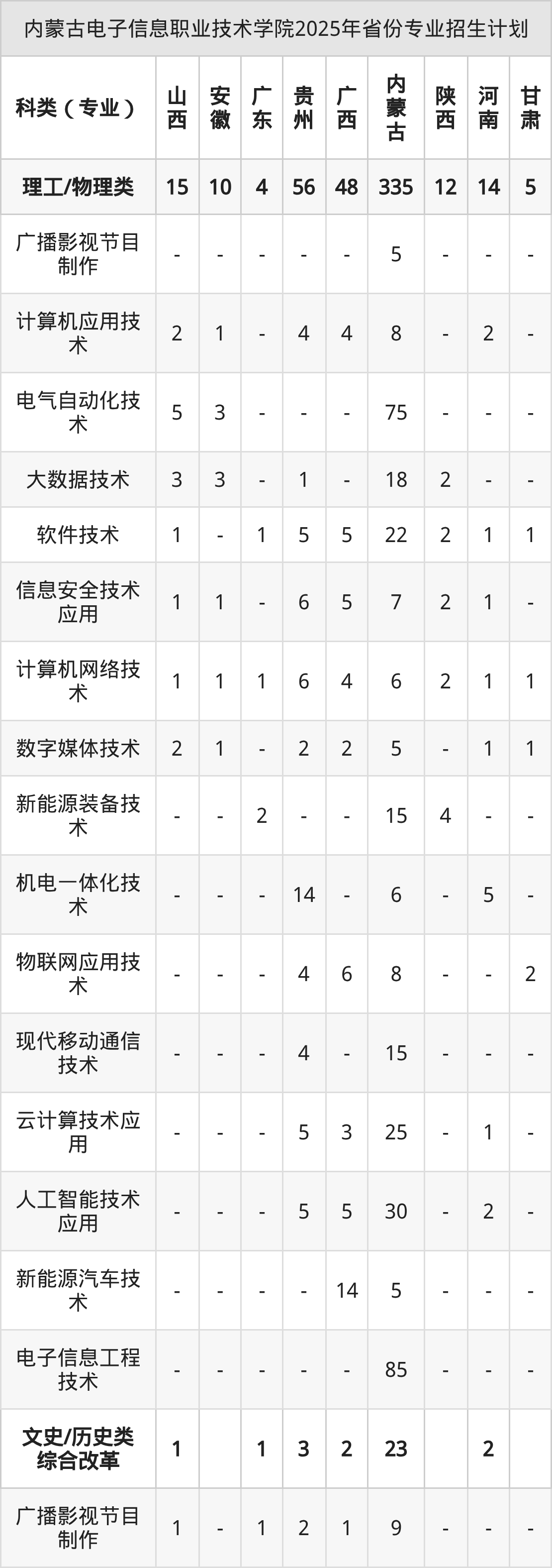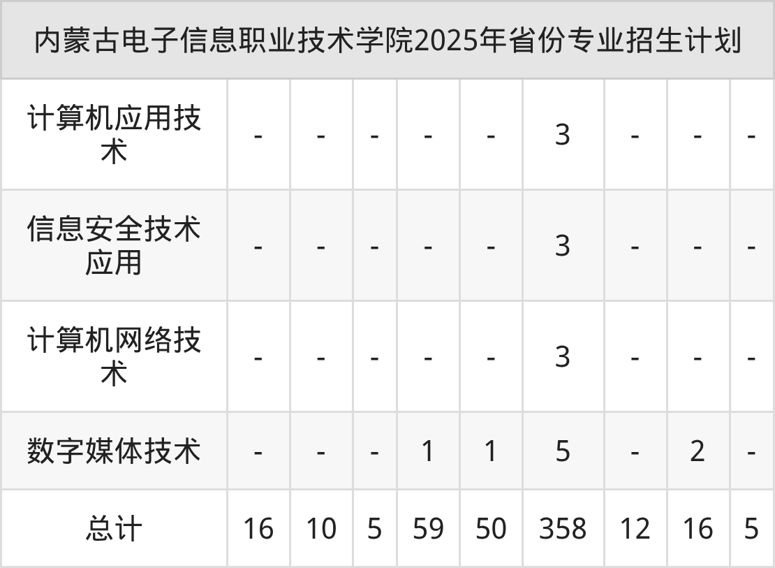 2026年内蒙古电子信息职业技术学院专科招生计划待公布,下面附上2025年数据,暂供参考: