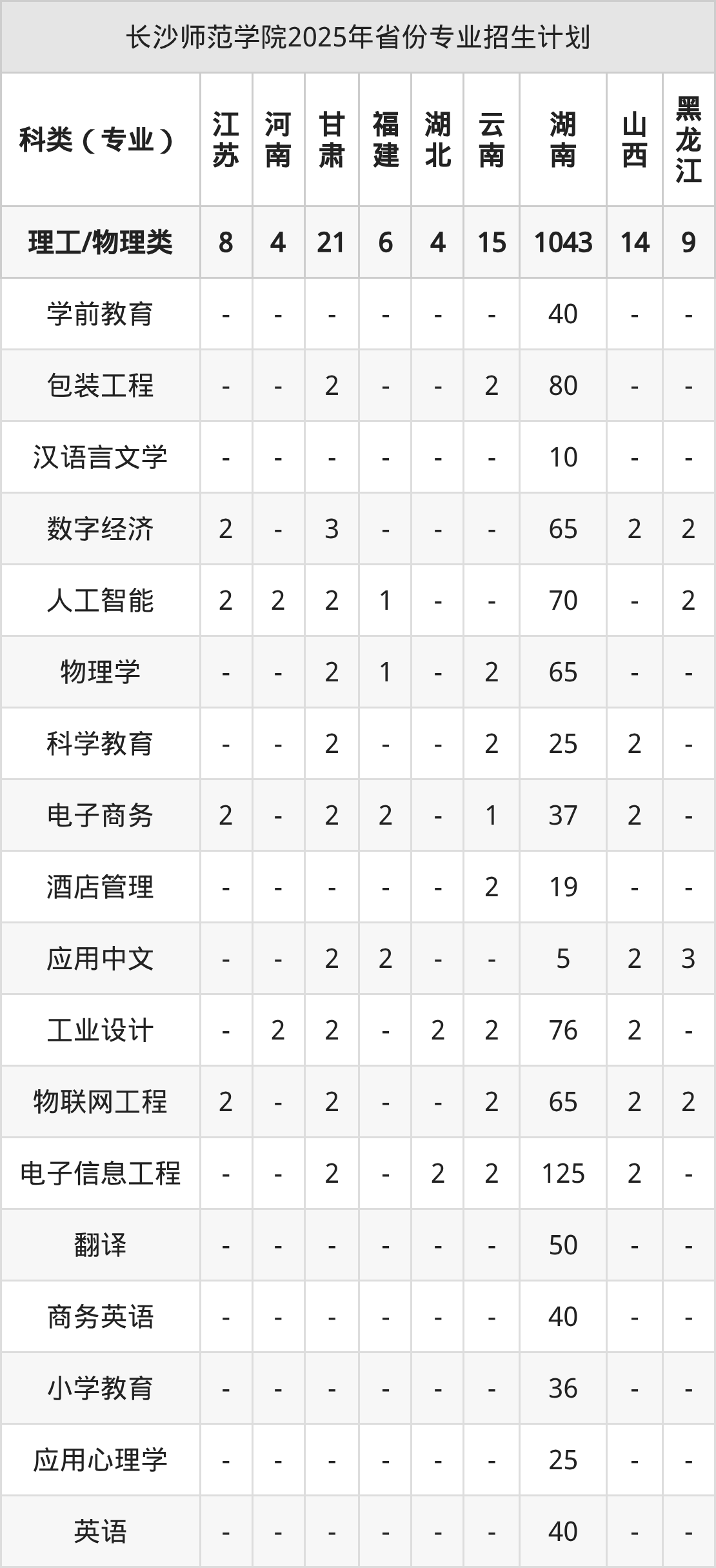 2026年长沙师范学院本科招生计划待公布,下面附上2025年数据,暂供参考: