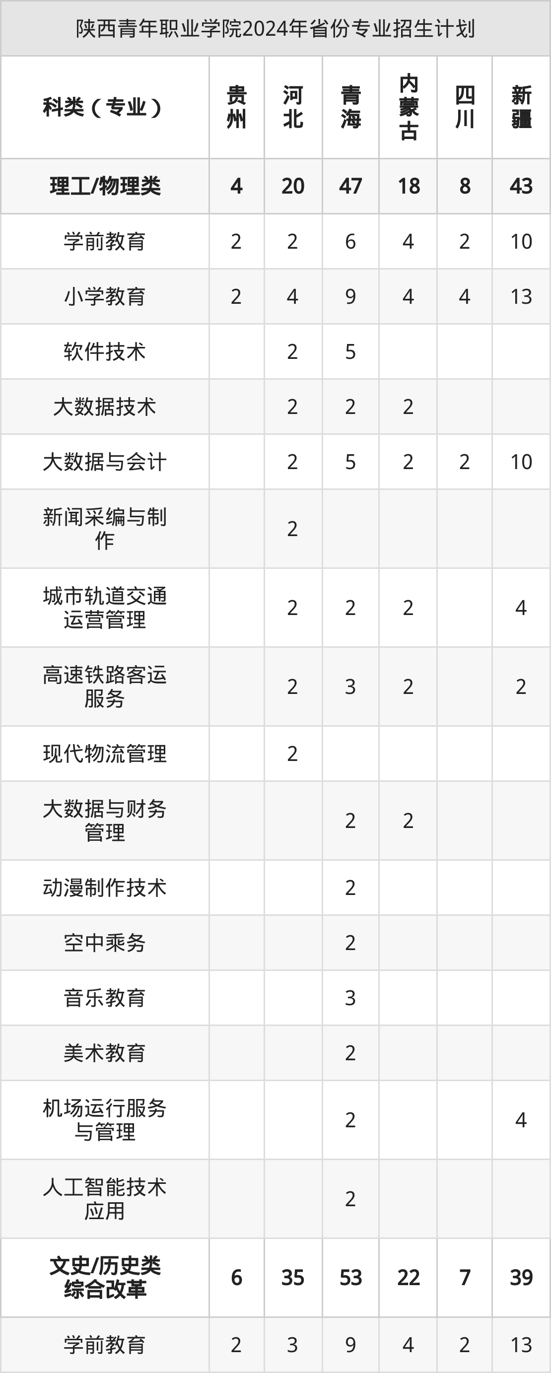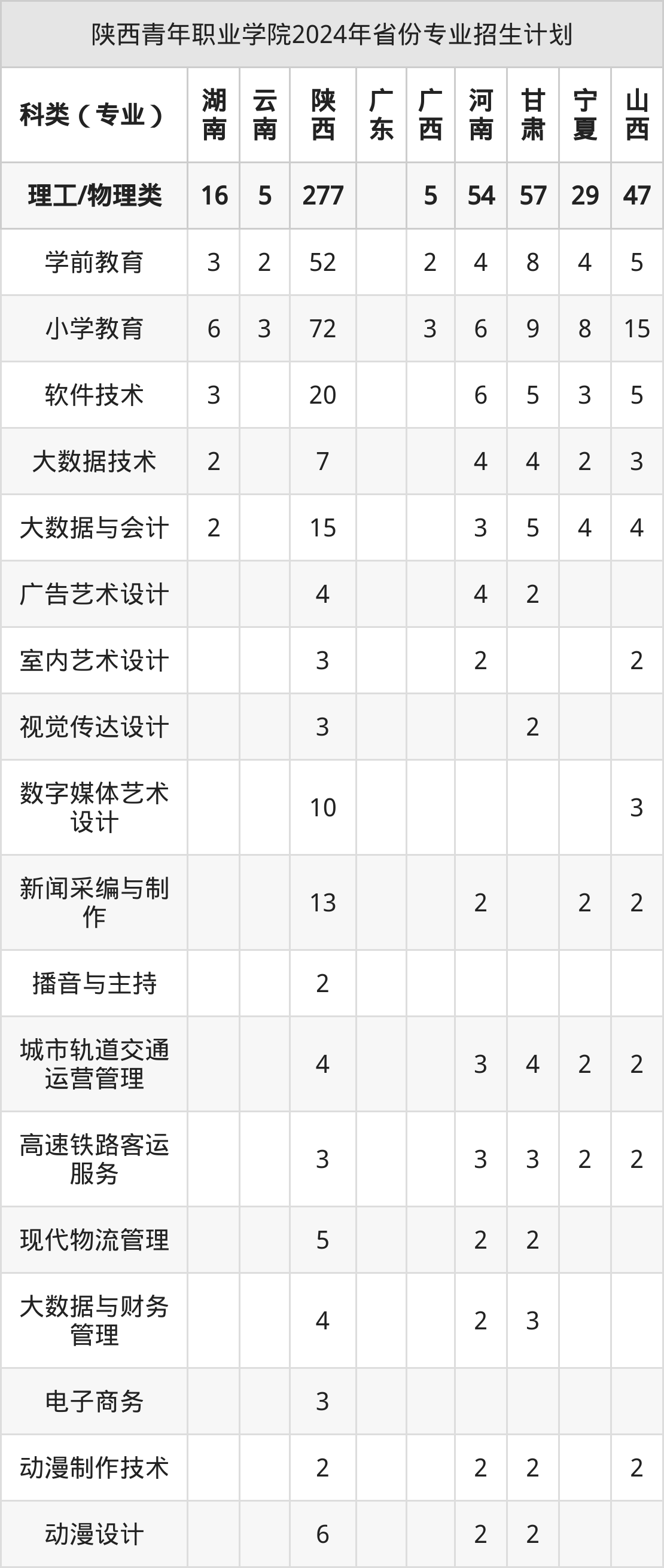 2025年陕西青年职业学院专科招生计划待公布,下面附上2024年数据,暂供参考:
