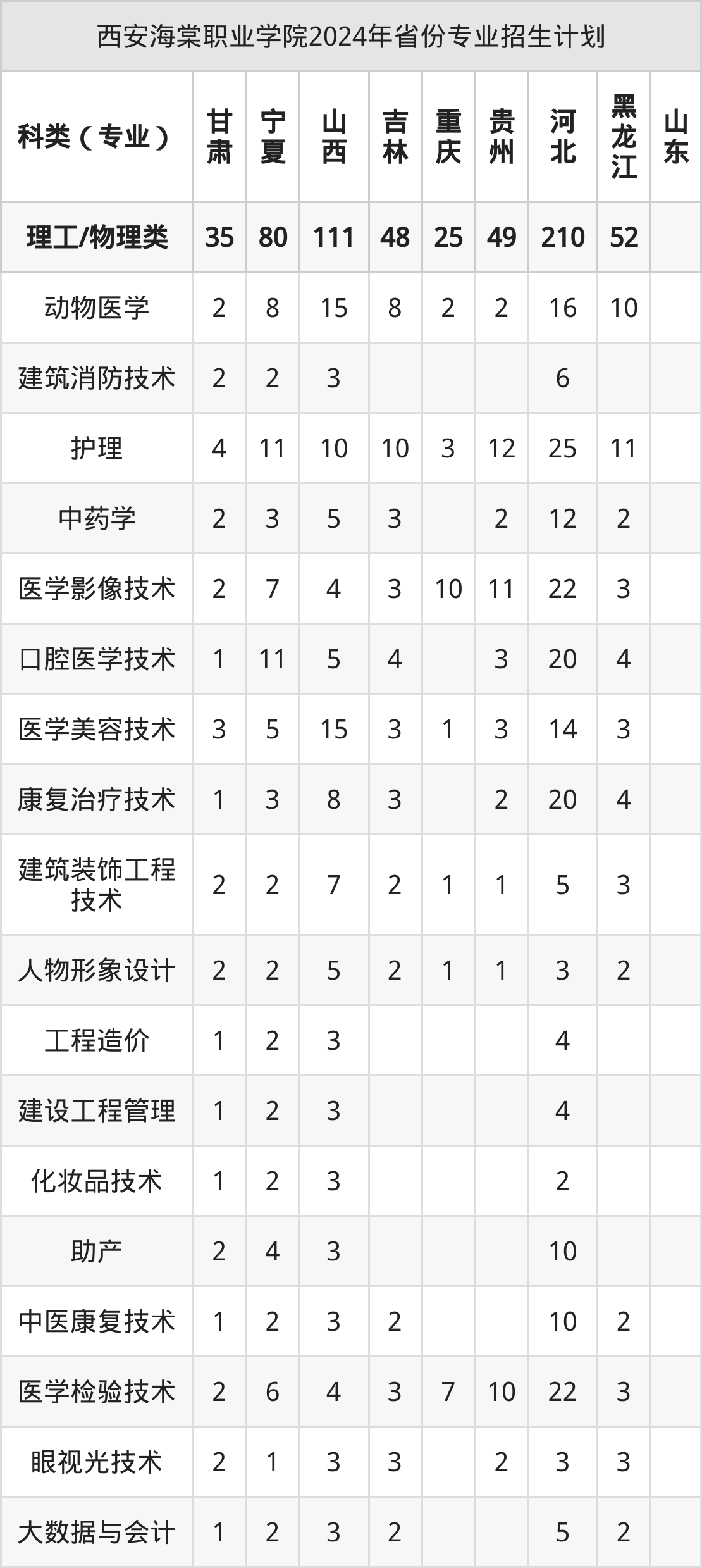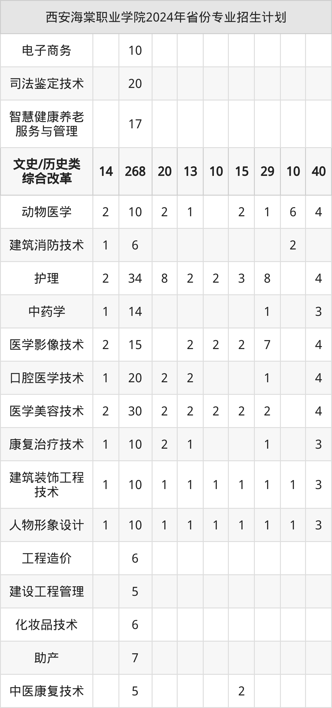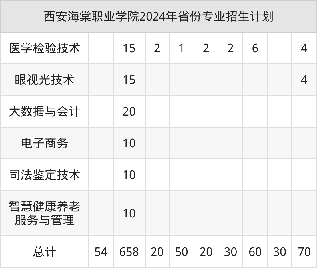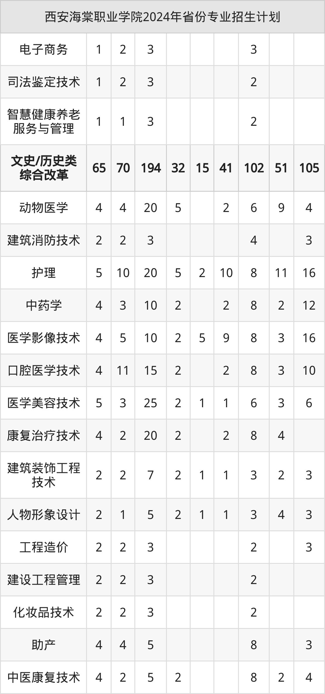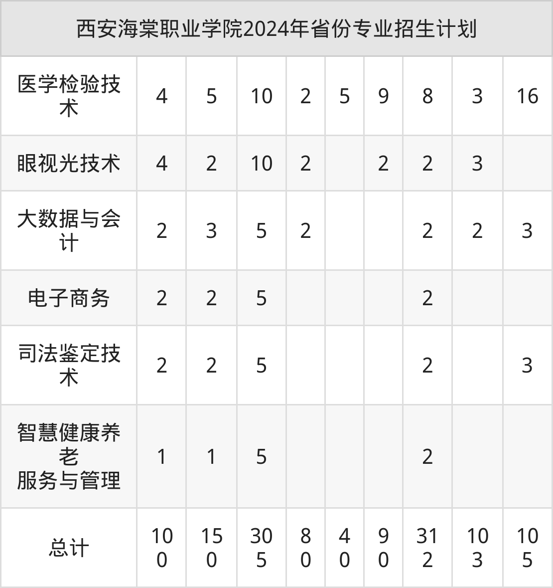 2025年西安海棠职业学院专科招生计划待公布,下面附上2024年数据,暂供参考: