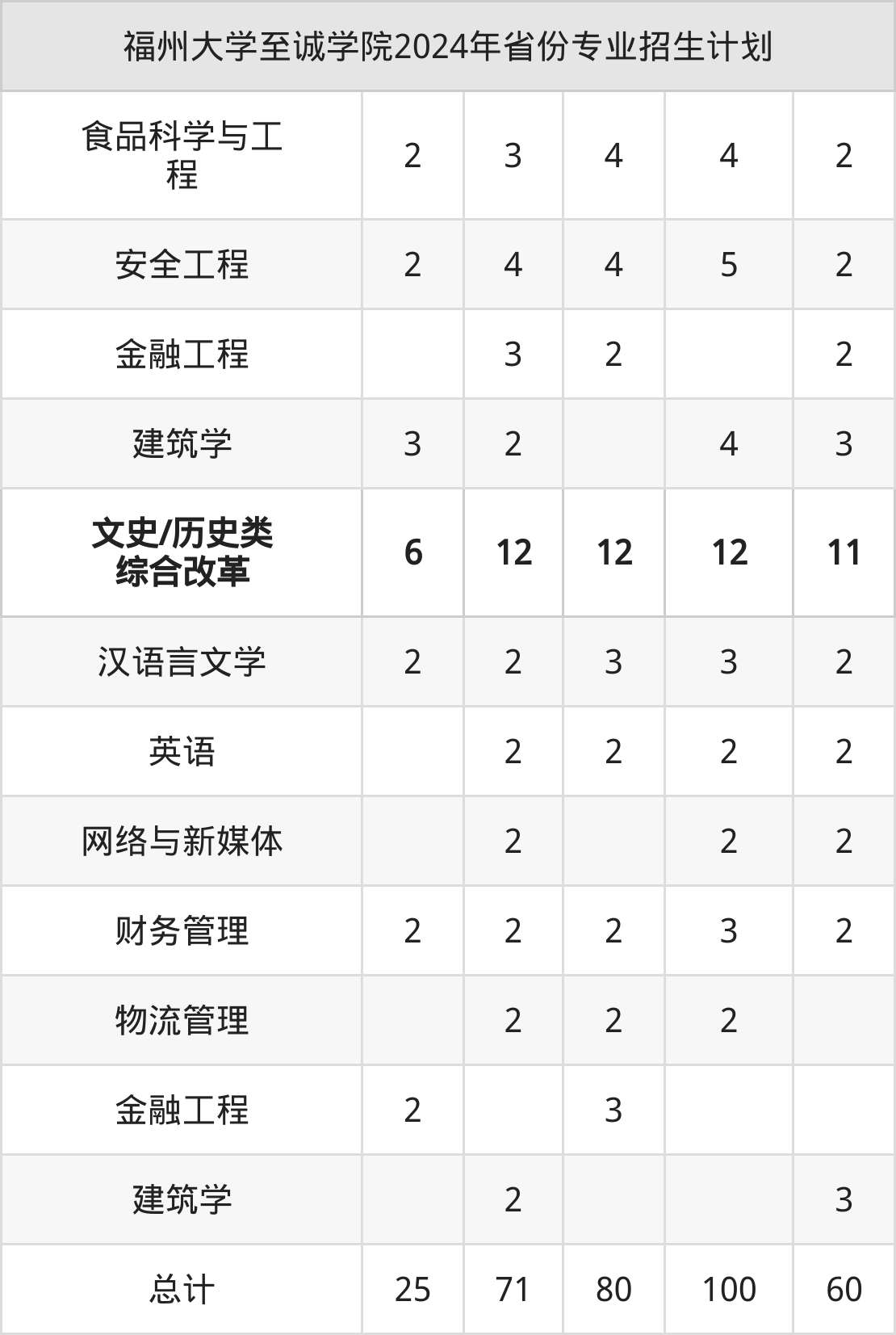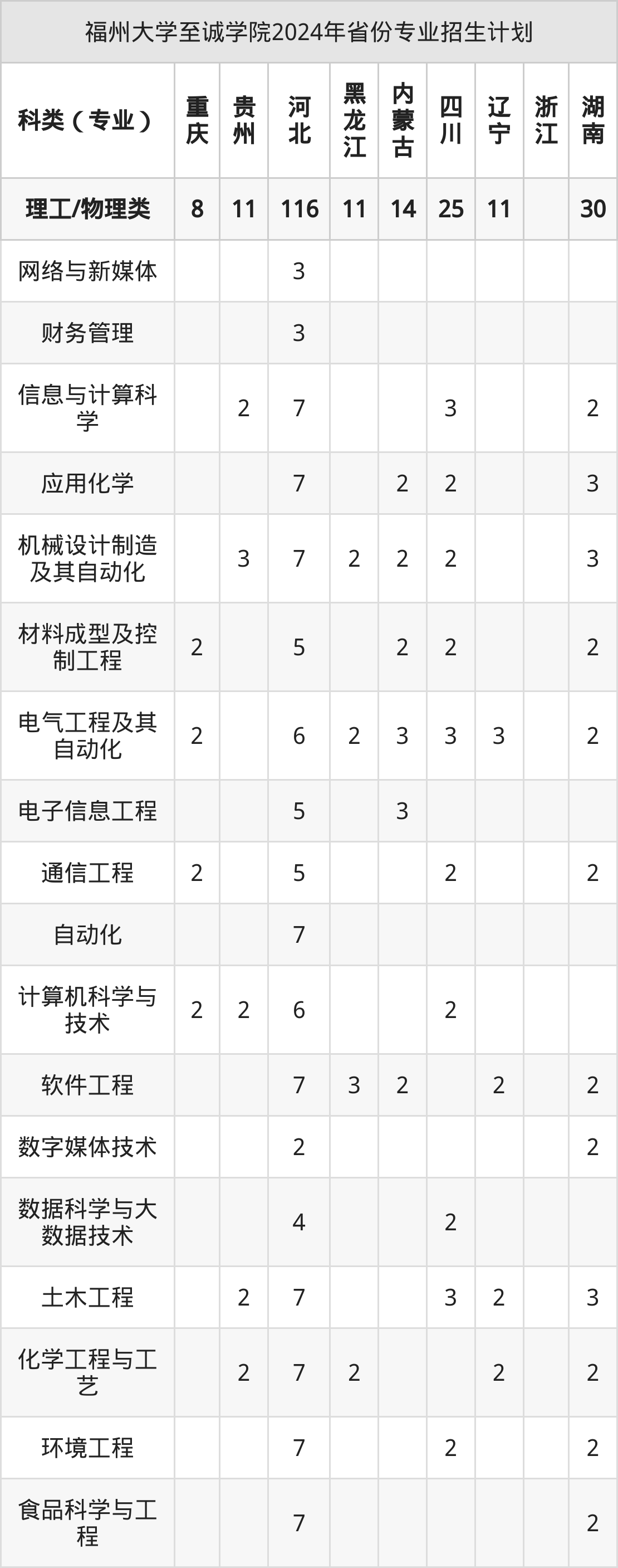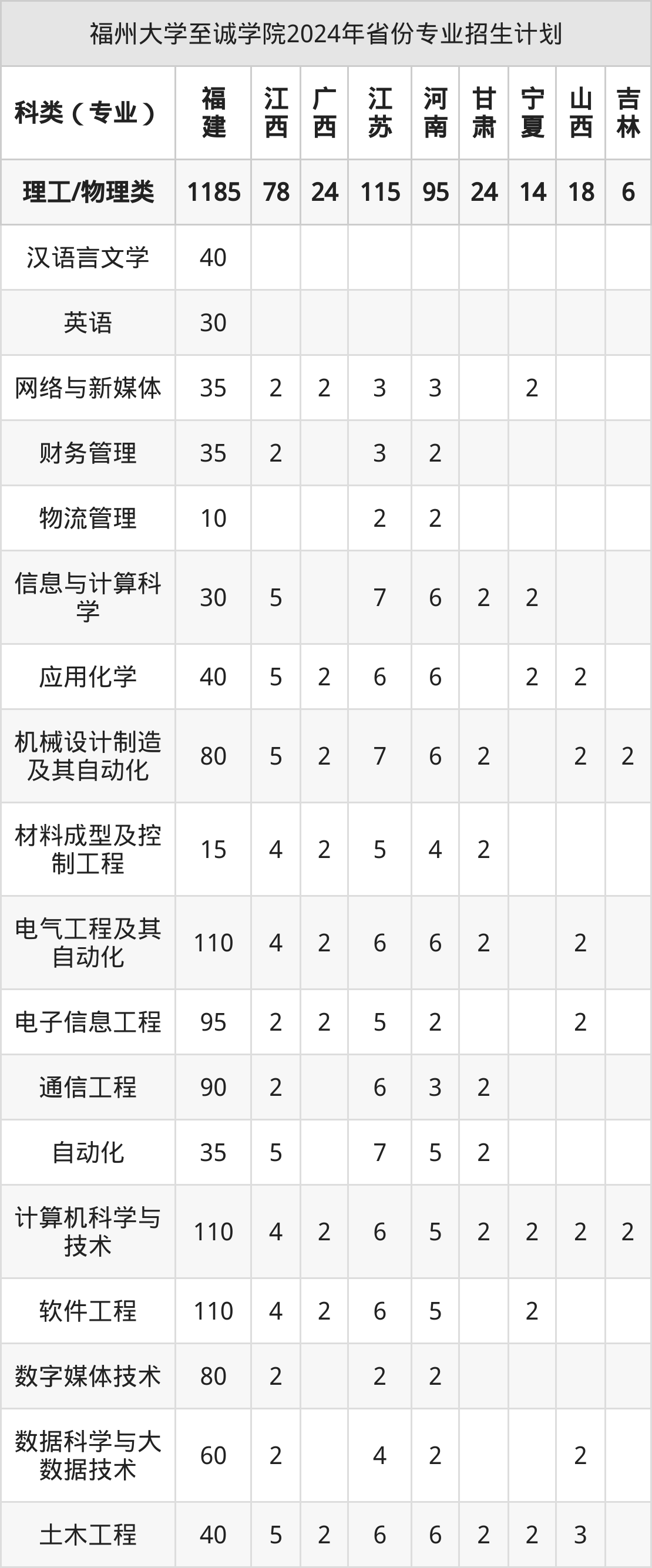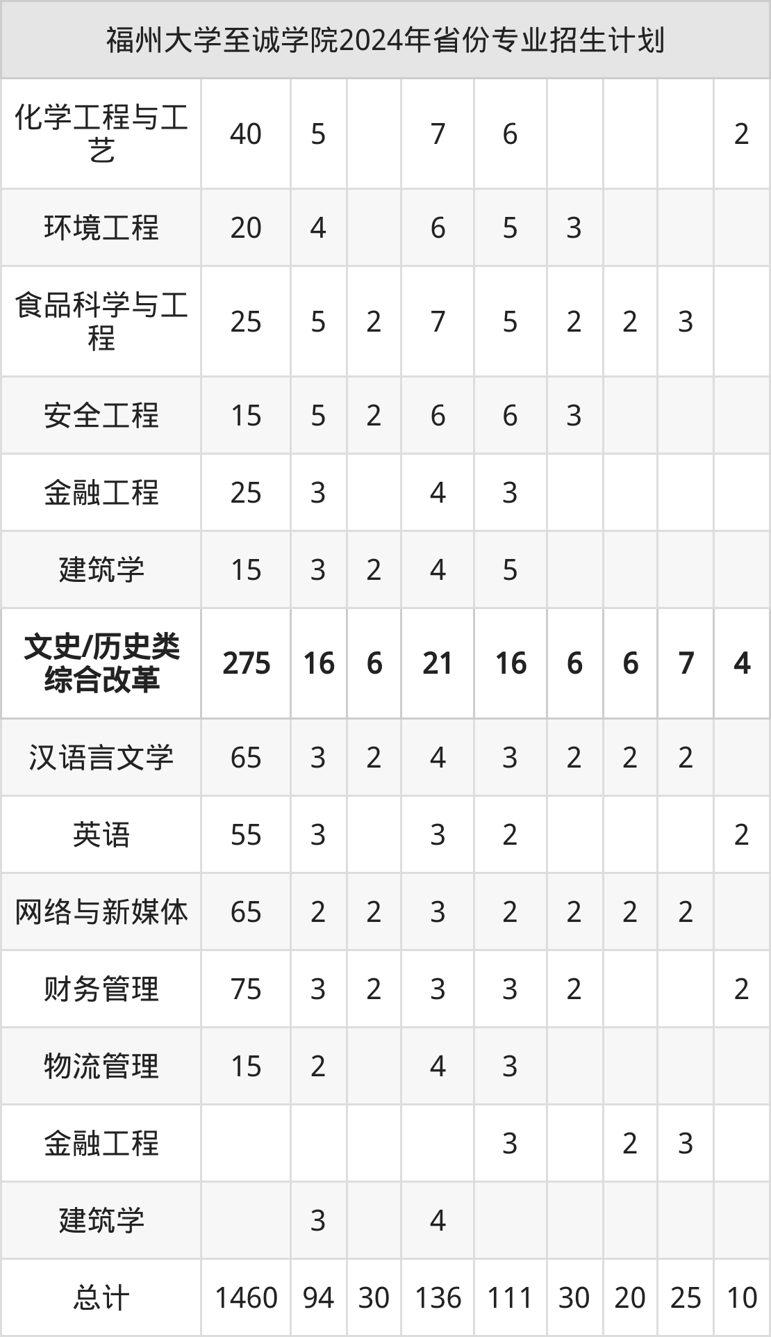 2025年福州大学至诚学院本科招生计划待公布,下面附上2024年数据,暂供参考: