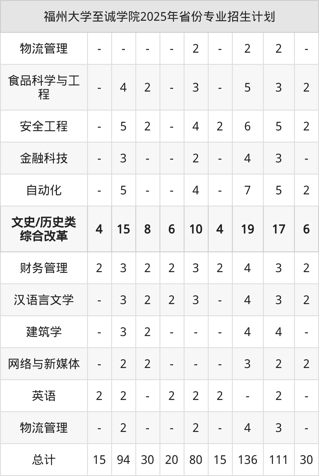 而各省份的招生计划数为辽宁15人,河南111人,甘肃30人,吉林10人,宁夏20人等。